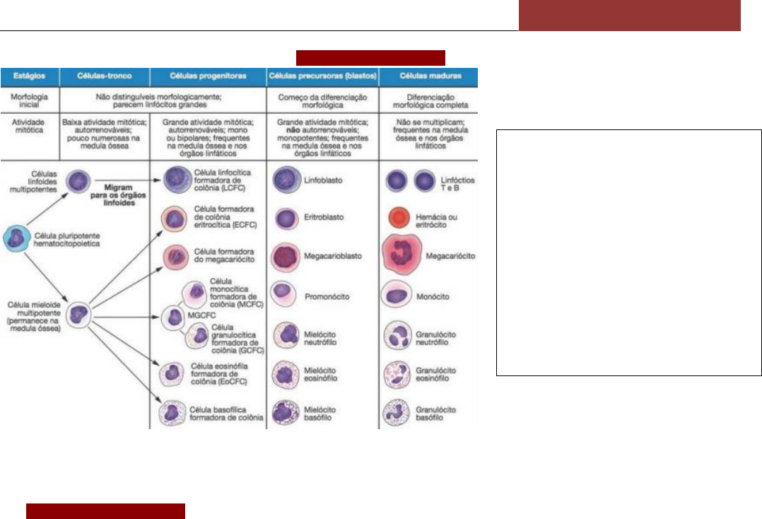 [GABRIELA BARBOSA] Turma 74 –Medicina Unimontes PROBLEMA 04 – LEUCEMIAS - Grupo de doenças caracterizadas pelo acúmulo de leucócitos malignos na medula óssea e no sangue periférico; - Os leucócitos anormais causam sintomas por insuficiência da medula óssea (anemia, neutropenia e trombocitopenia) e por infiltração de órgãos (fígado, baço, linfonodos, meninges, cérebro, pele ou testículos); - Classificações: agudas linfoides, agudas mieloides, crônicas linfoides e crônicas mieloides; LEUCEMIAS AGUDAS (LA) - Doenças agressivas, com transformação maligna nas células-tronco da hematopoese ou em progenitores primitivos; - O dano genético nas leucemias agudas envolve vários passos bioquímicos básicos, de modo a causar: (1) aumento da velocidade de produção; (2) diminuição da apoptose; (3) bloqueio na diferenciação celular – a união dessas alterações causa um acúmulo de células hematopoéticas primitivas, os blastos ou células blásticas, e consequente substituição das células saudáveis da medula por células cancerosas; - Podem ser: (primárias) surgem em paciente sem doença hematológica prévia e sem uso de quimioterápicos leucemogênicos; (secundárias) surge em paciente com doenças hematológicas pré-leucêmicas (como síndromes mielodisplásicas ou síndromes mieloproliferativas) ou que realizaram uso prévio de quimioterápicos; - Caso não forem tratadas são rapidamente fatais, porém com os tratamentos modernos a maioria dos pacientes jovens conseguem a cura da doença; 1. FISIOPATOGENIA - Célula progenitora mieloide ou linfoide sofre mutações genéticas que a impede de prosseguir a diferenciação hematopoiética; - Os blastos leucêmicos infiltram a medula óssea, ocupando de 20 a 80/100% do seu total de células nucleadas; - A expansão do clone neoplásico ocupa o espaço necessário à produção de células hematológicas normais, de modo a suprimir a hematopoiese normal, gerando pancitopenia (anemia, leucopenia e plaquetopenia); - Os blastos anormais secretam fatores inibitórios e indutores de fibrose, tornando a disfunção medular mais grave; - Os blastos anormais podem ser lançados no sangue, gerando leucocitose, apesar de não exercerem a função fisiológica de dessa do organismo, pois não amadurecem; - Leucemia Aleucêmica – diagnóstico quando a neoplasia se restringe à medula; - Na corrente sanguínea os blastos podem se infiltrar em órgãos, como linfonodos, baço, fígado, gengiva, órbita, SNC, meninges, testículos e pele- a infiltração tecidual maciça pode levar à falência orgânica; 2. FATORES DE RISCO - Radiação ionizante - geralmente doses altas em indivíduos jovens, como na radioterapia para tumores sólidos (LLA); - Exposição a benzeno e derivados do petróleo, pesticidas e herbicidas - LMA; - Agentes alquilantes - LMA, sendo que a leucemia se apresenta 4- 6 anos após a exposição à droga e é quase sempre precedida por uma síndrome mielodisplásica; - Inibidores da topoisomerase II - LMA, sendo que a leucemia se apresenta precocemente (1-2 anos após a exposição à droga) e não se associa à síndrome mielodisplásica; - Distúrbios hereditários que levam à instabilidade cromossomial (anemia de Fanconi, síndrome de Bloom, ataxia-telangiectasia, síndrome de Kostman ou neutropenia congênita) - LMA; - Anomalias citogenéticas congênitas, como a síndrome de Down (trissomia do 21), síndrome de Patau (trissomia do 13) e síndrome de Klinefelter (XXY); Hematopoese - A célula-tronco hematopoiética pluripotente diferencia-se em células progenitoras multipotentes de linhagem mieloide e linhagem linfoide; - Células Progenitoras Mieloides – diferencia-se em células precursoras mieloides (blastos) que se diferenciam entre a linhagem eritroide- megacariocítica (forma hemácias e plaquetas) e a linhagem granulocítica-monocítica (forma granulócitos, ou seja, neutrófilos, eosinófilos, basófilos e monócitos); - Células Progenitoras Linfoides – diferencia-se nas células precursoras linfoides (blastos), que se diferencia em linfócitos B na medula óssea e em linfócitos T no timo; [GABRIELA BARBOSA] Turma 74 –Medicina Unimontes 3. DIAGNÓSTICO - Definida pela porcentagem de blastos maior ou igual a 20% no sangue periférico (SP) e na medula óssea (MO) ou porcentagem de blastos < 20% com presença de anormalidades genético-moleculares especificamente associadas à leucemia; - As análises citogenética e molecular são essenciais, sendo realizadas preferencialmente em células da medula óssea – o sangue pode ser utilizado quando houver elevada contagem de blastos; - Formas de analisar os blastos: exame ao microscópico (morfologia), imunofenotipagem (citometria em fluxo), análise citogenética e análise molecular – define a origem mieloide ou linfoide dos blastos e os localiza no estágio de diferenciação celular; **pode-se empregar anticorpos especiais para o diagnóstico de subtipos raros, como o indiferenciado, eritroide e megacariocítico** 4. CLASSIFICAÇÕES - São classificadas de acordo com o aspecto citomorfológico, citoquímico, imunofenotípico, citogenético e genético-molecular, que em conjunto permitem a estratificação prognóstica, asseguram a escolha da terapia mais adequada e auxiliam na monitoração após o tratamento; **até 1970 eram divididas em leucemias linfoides, não linfoides e monocíticas; em 1976 a classificação FAB baseava-se na morfologia dos blastos e nas reações enzimático-citoquímicas, até que em 1900 surgiu uma classificação da OMS (atualizada em 2008) que estratifica e define as leucemias conforme a combinação da morfologia, imunofenótipo, aspectos genético-moleculares e síndromes clínicas** - Leucemias Linfoblásticas Agudas (LLA) – neoplasia da linhagem B ou T, com a mesma origem biológica dos linfomas linfoblásticos – usa-se o termo leucemia quando ocorre o envolvimento maciço do sangue perifér