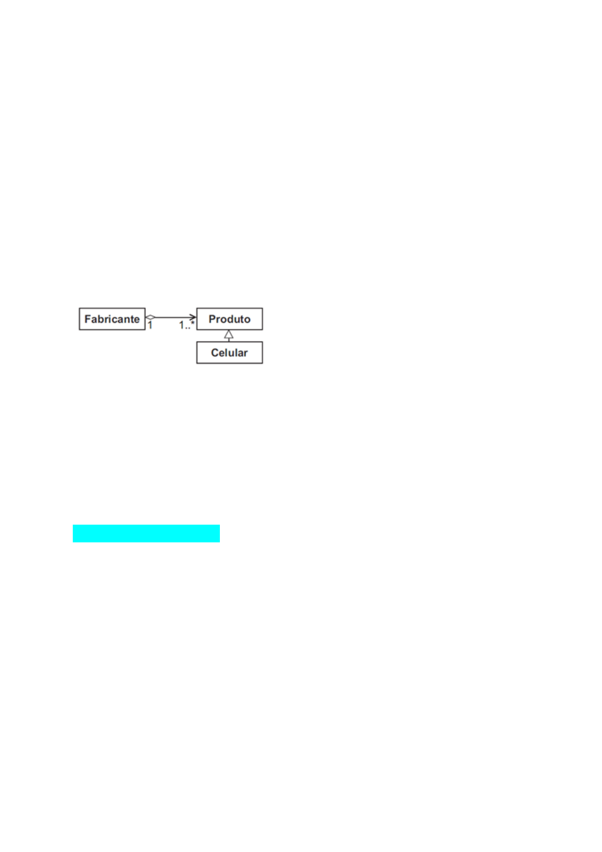 Design de Software Diagrama de Classe 1- Observe o seguinte diagrama de classes Considerando que na relação entre o Fabricante e Produto podemos dizer que o Produto é parte do Fabricante, mas que a exclusão de Produto não acarretará na exclusão de Fabricante, marque a alternativa que indica este tipo de representação. RESPOSTA: Agregação 2- Observe o diagrama de classes abaixo: https://aulas.descomplica.com.br/graduacao/ciencia-da-computacao/turma/design-de-software-3curs/aula/diagrama-de-classe-zv1iz Fonte: autoral. Marque a alternativa que define a representação entre PRODUTO e CELULAR. RESPOSTA: Generalização 3- A imagem abaixo representa: RESPOSTA: Composição entre um objeto “Venda” e um objeto “Item de Venda” 4- A figura abaixo ilustra um tipo de associação entre uma classe Livro e uma classe Livro_tecnico, escolhida para representar o tipo de ligação entre as classes, em um determinado sistema. RESPOSTA: Incorreta, pois deveria ter sido representada uma generalização 5- A figura abaixo mostra um diagrama de classes UML desenvolvido para um projeto em que ainda não se sabe em que linguagem será realizada a implementação Analisando as relações e multiplicidades apresentadas marque a alternativa correta. RESPOSTA: Há um erro na cardinalidade da associação entre ClasseA e ClasseB, pois se trata de uma composição e, como tal, um objeto da ClasseB só pode estar associado a um objeto da ClasseA 6- O diagrama de classe proposto na UML (Unified Modeling Language) apresenta o conjunto de objetos através das Classes e, para estabelecer a relação entre os objetos das classe são propostos vários tipos de associação, cada um com um significado próprio. Marque a alternativa que define o tipo de associação correto em relação a seu significado. RESPOSTA: Em uma associação entre duas classes, a própria associação pode ter atributos. Nesse caso, usa-se a classe de associação