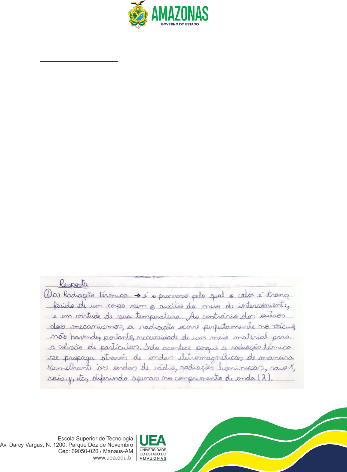 LISTA DE EXERCÍCIOS E4 (Valor: 10) TÓPICO 3: RADIAÇÃO ALUNO:______________________________________MATRÍCULA:____________ 01) (2,0) a) Radiação térmica, b) Defina transferência de calor por Radiação. 02) (2,5) Defina corpo negro e corpo cinzento na radiação térmica. 03) (2,5) Explique a lei de Stefan-Boltzmann e o fator forma. 04) (3,0) Resolva Uma tubulação atravessa uma grande sala conduzindo água a 95 °C, com coeficiente de película 20 kcal/h.m2 . °C. O tubo, de diâmetro externo 4” e resistência térmica desprezível, está isolado com lã de rocha (k = 0,035 kcal/h.m. °C) de 2” de espessura. Sabendo-se que a temperatura da face externa do isolamento do tubo é 22 °C, determinar: a) o fluxo de calor transferido através da tubulação; b) a emissividade da superfície do isolamento, sabendo-se que a metade do fluxo de calor transferido da tubulação para o ambiente se dá por radiação e que a temperatura da face interna das paredes da sala é 5 °C.
