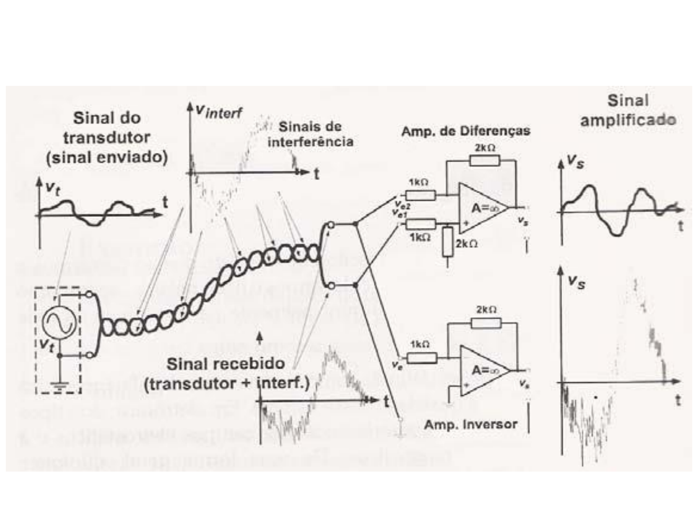 1 Capitulo 3 - Amplificador Operacional Capítulo 3 – Amplificadores Operacionais 2 3.1 – Conceito amplificador CC multiestágio, com entrada diferencial operações matemáticas como soma, integrações, etc 3.2 – Principais Características a) Resistência de entrada infinita; b) Resistência de saída nula; c) Ganho de tensão infinito; d) Resposta de freqüência infinita; e) Insensibilidade à temperatura. Capítulo 3 – Amplificadores Operacionais 3 3.3 - APLICAÇÕES PARA O AMPLIFICADOR OPERACIONAL • Amplificadores lineares; • Amplificadores não lineares; • Comparadores; • Filtros (passa baixa,passa alta, passa banda e rejeita banda); • Aplicações logarítmicas (multiplicadores, divisores); • Multivibradores; • Osciladores; • Reguladores (tensão, corrente; precisão, etc...); • Sample-hold. Capítulo 3 – Amplificadores Operacionais 4 3.4 – Modelo Elétrico Capítulo 3 – Amplificadores Operacionais 5 3.5 – Circuito Interno Componente eletrônico compacto construído da junção de resistores, capacitores e transistores. Capítulo 3 – Amplificadores Operacionais 6 3.6 – Representação Simbólica V+ – Entrada não Inversora V- – Entrada Inversora VO – Tensão de Saída Capítulo 3 – Amplificadores Operacionais 7 3.7 - CARACTERÍSTICAS DE UM AOP IDEAL 1) Só amplifica a diferença dos sinais de entrada, nunca amplifica o sinal comum às duas entradas. 2) Não consome e nem fornece corrente através de suas entradas, impedância de entradas é infinita; Capítulo 3 – Amplificadores Operacionais 8 3.7 - CARACTERÍSTICAS DE UM AOP IDEAL 3) impedância de saída nula (RO = 0). 4) ganho A = infinito, real e positivo. 5) ganho A constante que independe do valor da freqüência dos sinais de entrada 6) insensibilidade a temperatura. Capítulo 3 – Amplificadores Operacionais 9 3.9 - ALIMENTAÇÃO DO AMP OP Fonte simétrica ou duas fontes. Capítulo 3 – Amplificadores Operacionais 10 3.10 - MÉTODOS DE POLARIZAÇÃO DO AMPLIFICADOR - Sem Realimentação; - Realimentação Positiva; - Realimentação Negativa; Sem Realimentação Malha aberta, Não tem controle sobre o ganho; Empregado em circuitos comparadores. Capítulo 3 – Amplificadores Operacionais 11 Realimentação positiva - malha fechada. - ganho do operacional é obtido pelo projetista. - apresenta instabilidade ao circuito. - usado em circuitos osciladores. - não trabalha como amplificador de sinais, pois sua resposta não é linear. Capítulo 3 – Amplificadores Operacionais 12 Realimentação Negativa -saída é reaplicada à entrada inversora - várias aplicações: - Amplificador Inversor; - Amplificador Não Inversor; - Amplificador Somador; - Amplificador Diferencial; - Diferenciador; - Integrador; - Filtros Ativos, etc. Capítulo 3 – Amplificadores Operacionais 13 Realimentação Negativa Capítulo 3 – Amplificadores Operacionais 14 3.12 – Circuito Geral Capítulo 3 – Amplificadores Operacionais 15 3.12 – Circuito Geral Capítulo 3 – Amplificadores Operacionais 16 3.12 – Circuito Geral Capítulo 3 – Amplificadores Operacionais 17 3.12 – Circuito Geral Capítulo 3 – Amplificadores Operacionais 18 3.12 – Circuito Geral Capítulo 3 – Amplificadores Operacionais 19 3.12 – Circuito Geral Capítulo 3 – Amplificadores Operacionais 20 3.12 – Circuito Geral Capítulo 3 – Amplificadores Operacionais 21 3.12 – Circuito Geral Capítulo 3 – Amplificadores Operacionais 22 Daí, obtém-se, a Equação Geral de Funcionamento do AO 3.12 – Circuito Geral Capítulo 3 – Amplificadores Operacionais 23 3.13 – Amplificador Inversor Capítulo 3 – Amplificadores Operacionais 24 3.13 – Amplificador Inversor Capítulo 3 – Amplificadores Operacionais 25 3.14 – Amplificador não inversor Capítulo 3 – Amplificadores Operacionais 26 3.14 – Amplificador não inversor Capítulo 3 – Amplificadores Operacionais 27 3.15 – Amplificador não inversor Capítulo 3 – Amplificadores Operacionais 28 3.15 – Amplificador não inversor Capítulo 3 – Amplificadores Operacionais 29 3.16 – Amplificador diferencial Capítulo 3 – Amplificadores Operacionais 30 3.16 – Amplificador diferencial Capítulo 3 – Amplificadores Operacionais 31 3.17 – Amplificador somador Capítulo 3 – Amplificadores Operacionais 32 3.18 – Seguidor de Tensão (buffer) Capítulo 3 – Amplificadores Operacionais 33 3.18 – Seguidor de Tensão (buffer) Capítulo 3 – Amplificadores Operacionais 34 3.19 – Conversor Tensão Corrente Capítulo 3 – Amplificadores Operacionais 35 3.20 – Conversor Corrente/Tensão Capítulo 3 – Amplificadores Operacionais 36 3.21 – Integrador Capítulo 3 – Amplificadores Operacionais 37 3.22 – Amp Op real •Impedância de entrada e impedância de saída • Ganho finito e tensões de saturação • Erros de polarização: tensão e desvio (offset) e • correntes de polarização • Taxa de inflexão • Resposta em frequência • Produto ganho largura de banda • Distorção harmônica • Ruído Capítulo 3 – Amplificadores Operacionais 38 3.11 – Amp Op 741 Capítulo 3 – Amplificadores Operacionais 39 3.23 – Pinagem CI típico Capítulo 3 – Amplificadores Operacionais 40 3.24 – Código de Fabricantes Capítulo 3 – Amplificadores Operacionais 41 3.25 – Ajuste de Offset Capítulo 3 – Amplificadores Operacionais 42 3.26 – Saturação Capítulo 3 – Amplificadores Operacionais 43 3.27 – Tipos de Encapsulamento Ganho x Largura de Banda • AmpOp real o ganho diminui com o aumento da frequencia do sinal; • Avd: ganho DC de tensão diferencial • Ganho unitário: f1 • fc: frequencia de corte – 0,707 Avd • B1: largura de banda de ganho unitário; f1= Avd fc Ganho x Largura de Banda f1= Avd fc Exemplo: Determine freqüência de corte se B1 = 1 MHz e Avd =200 V/mV. fc = f1 / Avd fc = 1*10 6 / 200*103= 5 Hz FIGURE 13-30 741 op-amp specifications. FIGURE 13-30 741 op-amp specifications. FIGURE 13-3