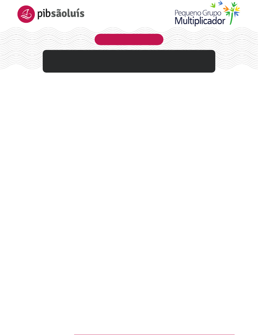 Nº 04/23 22 a 28 de janeiro de 2023 Quebra-gelo (5 min) Cada participante deverá compartilhar uma palavra que defina generosidade. Ao final, refletirão sobre a seguinte pergunta: “Você é uma pessoa generosa?” Tempo de Orar (5 min) Orar pelo encontro, pelas pessoas presentes e pelo compartilhamento da Palavra. Tempo de Cantar Utilize o hino de sua preferência. Leitura Bíblica Provérbios 11:24-28 Tempo de Compartilhar a Palavra Um lugar popular para se visitar em Israel é o Mar Morto. Ele tem esse nome porque nada pode viver em uma água tão salgada. Isso acontece porque o rio Jordão despeja suas águas no Mar Morto, mas o Mar não tem nenhuma saída de água. O resultado é que a água sai dele apenas por evaporação, deixando um depósito de sal, e assim a água fica salgada demais para sustentar a vida. Alguém disse que ele morreu de mesquinharia: recebe água, mas não compartilha água, tem entrada, mas não tem saída. O sábio de Provérbios aplicou esse mesmo princípio a nós. Uma tradução de provérbios 11:25 é: “A alma generosa prosperará, e quem dá a beber será saciado.” Aparentemente não faz sentido. Como é possível alguém ficar saciado dando água a outro? Uma Igreja para a Cidade! 01 ROTEIROPGM ACUMULADORES DE ÁGUA Nosso instinto é guardar o que temos para nós, acumulando o suficiente para não passar necessidade, pensando que a generosidade é só para quem tem sobrando. Isso se aplica não apenas aos bens, mas ao tempo, energia e até ao amor. O paradoxo é a lição do Mar Morto. Os acumuladores são, no final das contas, perdedores. Generosidade e altruísmo produzem uma vida abundante de alegria e rica recompensa. Certamente isso desafia nossa própria inclinação de pensar em nossas necessidades em primeiro lugar. Será que esconderemos dos nossos olhos as oportunidades da generosidade em todos os seus aspectos? Reflexão 1. O que torna uma pessoa genuinamente generosa? 2. O que impede uma pessoa de ser generosa? 3. Que medidas você precisa tomar para não se tornar um acumulador? Orando uns pelos outros (10 min) Em trios, compartilhar as necessidades de oração e interceder uns pelos outros. Tempo de Multiplicar (5 min) Orar pelas pessoas do seu Cartão Alvo de Oração. Tempo da Igreja (5 min) Acompanhe na próxima página nossa agenda. Você também encontra em nossas redes sociais e nosso site. Uma Igreja para a Cidade! 02