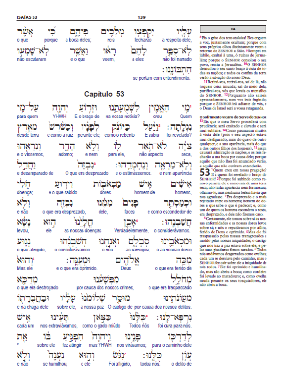 217 Antigo Testamento Interlinear Hebraico-Português: Profetas Posteriores (volume 3) Breve Apresentação e Descrição Edson de Faria Francisco Figura 1: Página do Antigo Testamento Interlinear Hebraico-Português, vol. 3: Profetas Posteriores, Isaías 52.15a-53.7a, p. 139. 218 Antigo Testamento Interlinear Hebraico-Português: Profetas Posteriores (volume 3) Breve Apresentação e Descrição: Edson de Faria FrAncIsco RESUMO Breve apresentação e descrição do Antigo Testamento Interlinear Hebraico-Português: Profetas Posteriores (volume 3), publicado pela Sociedade Bíblica do Brasil. ABSTRACT Short presentation and description of the Antigo Testamento Interlinear Hebraico-Português: Profetas Posteriores (volume 3) [Old Testament Interlinear Hebrew-Portuguese: Latter Prophets (volume 3)], published by Brazilian Bible Society. RESUMEN Breve presentación y descripción del Antigo Testamento Interlinear Hebraico-Português, vol. 3: Profetas Posteriores, publicado por la Sociedad Bíblica de Brasil. Em novembro de 2017, foi publicada, pela Sociedade Bíblica do Brasil (SBB), a obra Antigo Testamento Interlinear Hebraico-Português (ATI): Profetas Posteriores (volume 3). Como os dois primeiros volumes, a nova publicação é uma edição interlinear, apresentando tradução literal do texto original hebraico e aramaico da Bíblia Hebraica (Antigo Testamento) para o portu- guês. Tal característica é um dos principais e mais importantes destaques da referida edição publicada pela SBB. O projeto tem o apoio da Universidade Metodista de São Paulo (UMESP), sendo desenvolvido pelo professor Edson de Faria Francisco. Portanto, a nova edição pode ser considerada mais uma importante contribuição da UMESP, por meio da Faculdade de Teologia da Igreja Metodista (FaTeo), para todas as sociedades que são falantes da língua portuguesa. No ATI, procurou-se traduzir, literalmente, cada palavra e cada expres- são da Bíblia Hebraica para o português, seguindo o seu sentido original. Cada palavra ou expressão em português segue passo-a-passo cada palavra e expressão do texto original hebraico, da direita para a esquerda. Na primeira linha, consta o texto hebraico e, na linha logo abaixo, consta a tradução literal em português (cf. Figura 1). Como nos dois primeiros volumes, que são dedicados ao Pentateuco (Sociedade Bíblica do Brasil – SBB, 2012) e aos Profetas Anteriores (SBB, 2014), no ATI são apresentados, além do texto original da Bíblia Hebraica e uma tradução literal correspondente em português, a A Bíblia Sagrada - Versão Revista e Atualizada (RA), tradução de João Ferreira de Almeida (SBB, 1993) e a Bíblia Sagrada - Nova Tradução na Linguagem de Hoje (NTLH) (SBB, 2000). No ATI, adotou-se o mesmo projeto editorial adotado no Novo Testamento Interlinear Grego-Português (2004), também publicado pela SBB. O terceiro tomo do ATI, que segue a sequência do cânon judaico, tendo por base a Biblia Hebraica Stuttgartensia (BHS) (Deutsche Bibelgesellschaft, 1997), abrange os seguintes escritos bíblicos: Isaías, Jeremias, Ezequiel e os Doze (Oseias, Joel, Amós, Abdias, Jonas, Miqueias, Naum, Habacuque, Revista Caminhando v. 23, n. 1, p. 217-224, jan./jun. 2018 219 Sofonias, Ageu, Zacarias e Malaquias). Este volume, assim como os dois primeiros, possui um capítulo intitulado “Dificuldades Textuais”, no qual são comentados os principais problemas de tradução encontrados ao longo do processo de elaboração do terceiro volume do ATI. Duas informações im- portantes sobre o tomo atual: 1. Após os três livros maiores de Isaías, Jeremias e Ezequiel, consta o livro dos Doze Profetas. A tradição judaica considera tal bloco de livros como um único livro. 2. Lamentações não consta após Jeremias e Daniel não consta após Ezequiel. Esses dois livros bíblicos aparecerão apenas no quarto volume do ATI, que conterá os Escritos: Salmos, Jó, Provérbios, Rute, Cântico dos Cânticos, Eclesiastes, Lamentações, Ester, Daniel, Esdras-Neemias, 1Crônicas e 2Crônicas. Determinados trechos e livros bíblicos foram muito difíceis de serem vertidos, requerendo profundo cuidado no processo de tradução. As princi- pais passagens e livros que apresentam alto grau de dificuldade de tradução são: Os 1.1-14.10 (o livro inteiro), Mq 1.1-7.20 (o livro inteiro), Hc 2.6-20 (os cinco ais contra os caldeus), Hc 3.1-19 (a oração de Habacuque) e Sf 1.1-3.20 (o livro inteiro). Tais textos apresentam diversos fenômenos linguís- ticos peculiares: palavras e expressões únicas (isto é, aquelas que aparecem uma única vez em todo o texto da Bíblia Hebraica), vocabulário de baixa utilização, utilização gramatical insólita, redação inusitada e possíveis situa- ções de corrupção textual, em que o texto não está bem conservado. O ATI traduz tais textos de acordo com a sua natureza gramatical, mesmo que em português a tradução soe, no geral, muito estranha e, às vezes, sem sentido algum. Contudo, a tradução de tais trechos que se encontra no ATI reflete, o mais próximo possível, o que se acha, realmente, no texto original hebrai- co. Além de tais trechos, outros também foram de tradução dificílima: Ez 1.1-28 (a visão da carruagem de YHWH), Ez 10.1-17 (a visão dos carvões ardentes de fogo e a visão das quatro rodas) e Ez 40.1-42.20 (a edificação do futuro templo de Jerusalém). Nos dois primeiros textos, constata-se que há uso gramatical inesperado, como troca ilógica de sufixos pronominais masculinos por femininos e vice-versa, troca de pronomes demonstrativos no plural por pronomes demonstrativos no singular, entre outras situações de ordem gramatical. No terceiro e último texto constam vários termos técnicos arquitetônicos de significação desconhecida, o que representou verdadeiro desafio de tradução. Os dicionários de hebraico bíblico, que foram utilizados na produção do ATI, não auxiliaram de maneira satisfatória n
