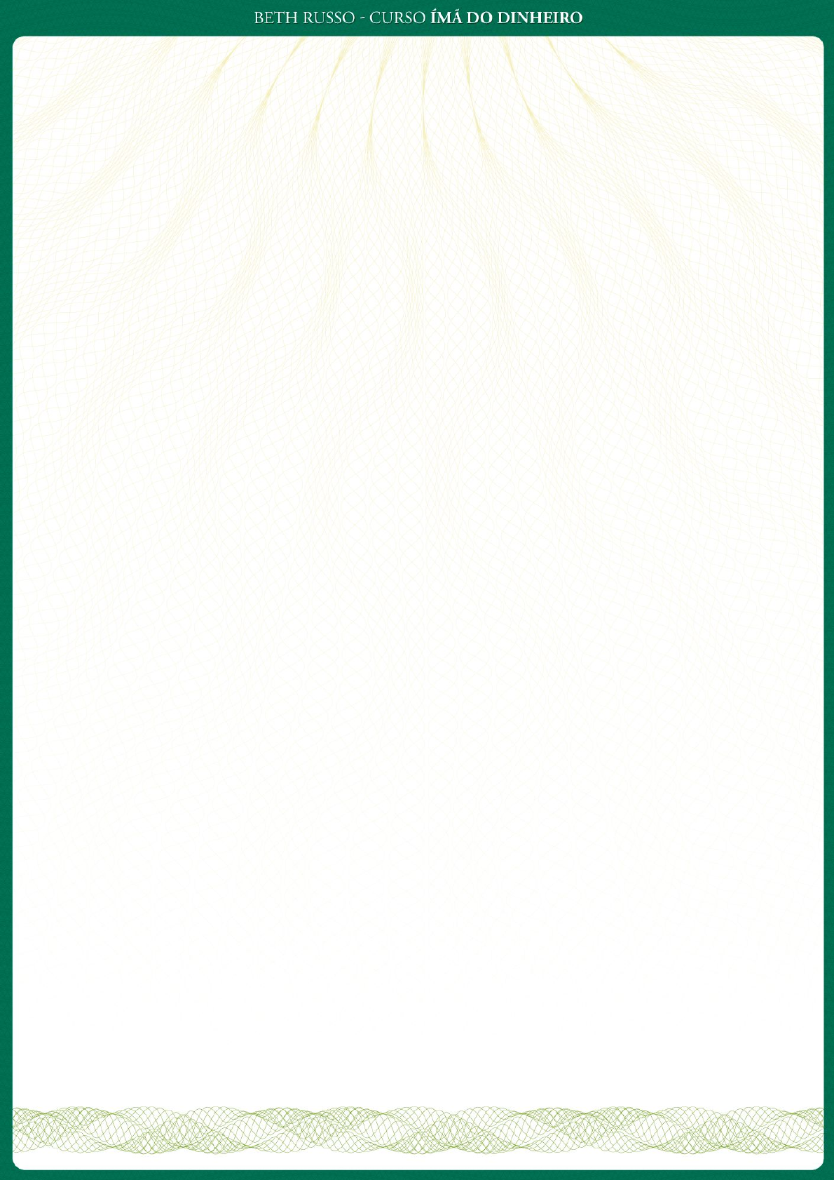 EU SOU a fonte de toda RIQUEZA, eu sou RICA(O) em ideias criativas, minha mente transborda de pensamentos novos, originais e inspiradores. O que tenho a oferecer é ÚNICO e o mundo deseja. Meu VALOR vai além de qualquer avaliação, aquilo que o mundo procura e deseja, estou pronta(o) para produzir e oferecer. Aquilo que o mundo precisa e deseja, eu RECONHEÇO, e REALIZO. A ABUNDÂNCIA da minha mente não tem obstáculos nem limites, nada pode impedir minha INSPIRADA CRIATIVIDADE. O SUPERABUNDANTE PODER DA ENERGIA DA VIDA de DEUS, supera qualquer obstáculo e transborda sobre o mundo, ABENÇOANDO e PROSPERANDO a todos e a tudo ATRAVÉS de MIM. Eu irradio BÊNÇÃOS, Eu irradio CRIATIVIDADE, Eu irradio PROSPERIDADE, Eu irradio SERVIÇO AMOROSO, Eu irradio BELEZA, ALEGRIA, PAZ, SABEDORIA e PODER! A humanidade me procura e me RECOMPENSA, eu sou AMADA(O) pelo mundo. Eu sou QUERIDA(O) onde quer que eu vá. Eu sou VALORIZADA(O) O que eu tenho a oferecer é INTENSAMENTE DESEJADO. O que eu tenho a oferecer traz RICA RECOMPENSA. Declaração de Abundância e Liberdade Financeira Através da minha visão, o MUNDO TODO é ABENÇOADO. Através do meu raciocínio claro e do meu firme propósito, maravilhosos novos valores ganham expressão. Minha FÉ é a FÉ dos IMBATÍVEIS. Meu PODER de REALIZAR é ILIMITADO. Eu, em minha SUPREMA FONTE DIVINA, sou toda a RIQUEZA, sou todo o PODER, sou toda a PRODUTIVIDADE. Eu tenho ESTOQUE INFINITO NO MEU ÍNTIMO e todas as minhas necessidades são SATISFEITAS INSTANTANEAMENTE. Eu DECLARO minha LIBERDADE FINANCEIRA, AGORA e para TODO o SEMPRE. ASSIM É. SINTO MUITO, Por favor, me PERDOA, Sou GRATA(O), EU TE AMO. EU SOU (fale em voz alta ou mentalize o seu nome completo) SINTO MUITO, Por favor, me PERDOA, Sou GRATA(O), EU TE AMO.