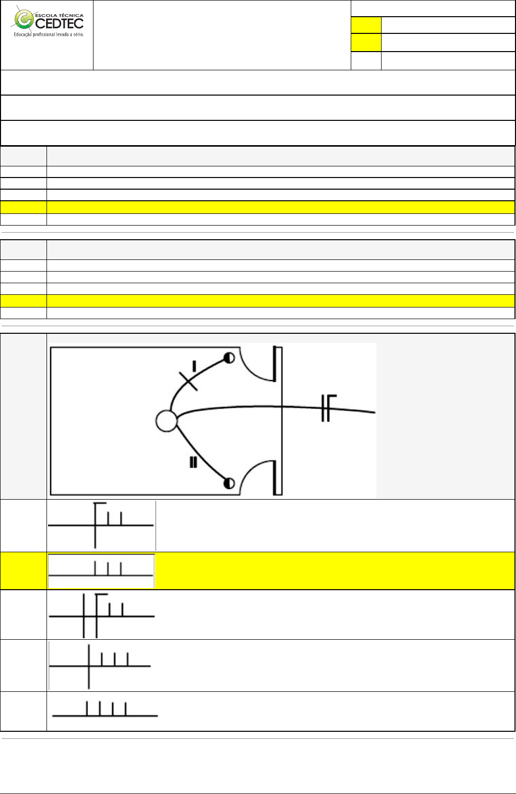 Pincel Atômico - 28/06/2021 19:29:41 1/7 MARCO AURELIO SODRE DE JESUS JUNIOR AVALIACAO ONLINE (AUTOMATICA EAD) Atividade finalizada em 27/06/2021 19:58:26 (tentativa: 1) LEGENDA Resposta correta na questão # Resposta correta - Questão Anulada X Resposta selecionada pelo Aluno Disciplina: INSTALAÇÕES ELÉTRICAS PREDIAIS [capítulos - Todos] - Avaliação com questões, com o peso total de 51,00 pontos Turma: Curso Técnico: Edificações - Grupo: EAD - FEVEREIRO/21 - EAD EDI [21244] Aluno(a): 91198994 - MARCO AURELIO SODRE DE JESUS JUNIOR - Respondeu 17 questões corretas, obtendo um total de 43,35 pontos como nota Questão 001 Os fios de cor azul claro são utilizados, em instalações elétricas residenciais, como fios: Condutores Terra De retorno X Neutros Auxiliares Questão 002 Sobre dimensionamento de condutores carregados de uma instalação elétrica e de acordo com a NBR 5410, a queda máxima de tensão percentual nos circuitos terminais deve ser: 8 2 10 X 4 3 Questão 003 O diagrama unifilar completo do eletroduto II é: X Pincel Atômico - 28/06/2021 19:29:41 2/7 Questão 004 Considere uma residência com as características abaixo. A potência ativa total dos pontos de tomada, iluminação e circuitos independentes é, em W: 8000 5400 14900 X 13700 12000 Questão 005 Nas figuras que ilustram os esquemas de aterramentos são observados alguns símbolos; analise-os. Os símbolos ilustrados anteriormente são conhecidos, respectivamente, por: A. condutor combinando as funções de neutro e de condutor de proteção (PEN); B. condutor de proteção (PE). A. condutor combinando as funções de neutro e de condutor de proteção (PEN); B. condutor de retorno A. condutor neutro (N); B. condutor de proteção (PEN). A. condutor de proteção (PE); B. condutor combinando as funções de neutro e de condutor de proteção (PEN). X A. condutor combinando as funções de neutro e de condutor de proteção (PEN); B. condutor neutro (N). Questão 006 A figura abaixo mostra o diagrama unifilar do quadro de carga de uma instalação elétrica residencial. A simbologia gráfica empregada é a usualmente adotada para instalações elétricas de baixa tensão. São indicados no diagrama o alimentador e sete circuitos da instalação. De acordo com o esquema da figura, julgue os itens que se seguem. I. O disjuntor geral da instalação é de 30 amperes. II. A seção de todos os condutores dos circuitos é igual a 10mm2. III. O diâmetro do eletroduto do alimentador é igual a 19 mm. Está correto o que se afirma em: I, apenas III, apenas. II e III. II, apenas. X I e III. Pincel Atômico - 28/06/2021 19:29:41 3/7 Questão 007 Sobre o circuito é correto afirmar que: Se as Lâmpadas forem diferentes a maior parcela do valor da tensão estará na lâmpada de menor potência. X Se as Lâmpadas forem diferentes a corrente elétrica será diferente em cada lâmpada. Se as Lâmpadas forem diferentes a maior parcela do valor da tensão estará na lâmpada de maior potência. Se as Lâmpadas forem iguais a tensão elétrica será diferente em cada lâmpada. Questão 008 Tipo de diagrama que representa todo o sistema elétrico, em seus detalhes com todos os condutores. Cada traço é um fio que será utilizado na ligação dos componentes: Diagrama multifilar Diagrama de comando Diagrama de sinalização X Diagrama unifilar Questão 009 A figura a seguir refere-se ao: Diagrama unifilar da instalação de interruptores intermediários. X Diagrama unifilar de interruptores paralelos. Diagrama multifilar de um interruptor paralelo. Diagrama unifilar da instalação de uma tomada trifásica. Questão 010 Sendo dado a simbologia padronizada abaixo, completar as ligações no esquema unifilar abaixo ao lado, comando com quatro lâmpadas de 60VA-220V, através de dois interruptor simples bipolares e uma tomada (2P+T+universal) ligada em 127 V. Pincel Atômico - 28/06/2021 19:29:41 4/7 Outro tipo de ligação X Questão 011 Sobre o circuito acima é correto afirmar que: As lâmpadas L1 e L2 ficam submetidas tensão de 6V. X As lâmpadas L1 ficam submetidas pela mesma tensão. A lâmpada L2 fica submetida a uma tensão de 12V. As lâmpadas L1 ficam submetidas a uma tensão de 12V. Questão 012 Com base nos critérios mínimos para a definição do número e da potência de pontos de tomadas apresentados pela ABNT NBR 5410/2008 – Instalações elétricas de baixa tensão, assinale a alternativa que expressa corretamente o número de pontos de tomadas necessários em um dormitório com 3m de largura e 4m de comprimento e suas respectivas potências. 2 tomadas, sendo 1 tomada de 600 VA e 1 tomada de 100 VA X 3 tomadas com 100 VA cada. 3 tomadas, sendo 1 tomada de 600 VA e 2 tomadas de 100 VA 3 tomadas com 200 VA cada. 2 tomadas com 100 VA cada. Questão 013 A tabela a seguir relaciona a área de seção transversal interna com o diâmetro nominal de cada eletroduto. Um circuito elétrico é alimentado por três cabos que, juntos, ocupam uma área de seção transversal 800 mm2 aproximadamente. Tendo em vista uma ocupação máxima de 40%, o menor diâmetro nominal de eletroduto para acomodar esses cabos é: Pincel Atômico - 28/06/2021 19:29:41 5/7 X 2” 3” 1” Para uma taxa de 40% de ocupação máxima nenhuma das seções acima é adequada sendo necessário uma seção de eletroduto superior a 3” 2 ½ “ Questão 014 Considere as afirmativas relacionadas ao dispositivo à corrente diferencial-residual (DR). 1. Em nenhum caso, o condutor neutro deverá ser interligado à terra à jusante de um dispositivo DR. 2. Quando existir um dispositivo DR instalado na proteção geral não poderá haver nenhum dispositivo DR instalado nas proteções individuais de circuitos terminais. 3. O DR não dispensa o aterramento das massas dos equipamentos. 4. Dispositivos DR de baixa sensibilidade oferecem apenas proteção contra contatos indiretos. 5. Em nenhum caso, o condutor neutro deverá ser interligado a terra a