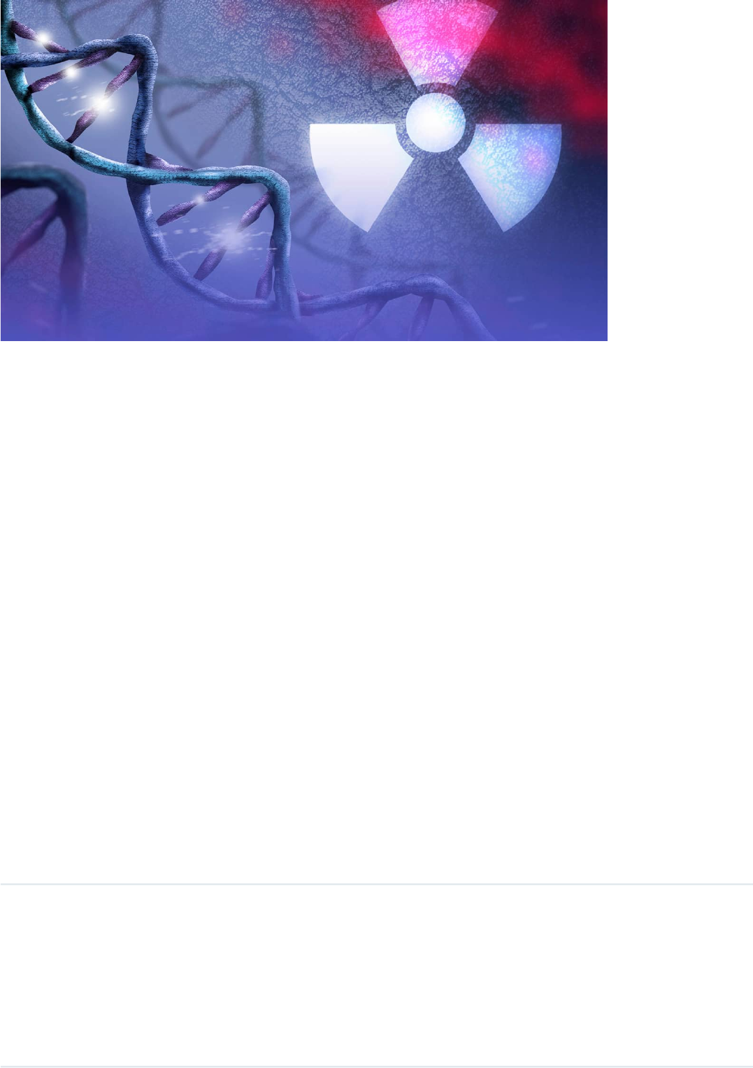 Efeitos biológicos Prof. Carlos Henrique Simões de Sousa Descrição Estudo dos efeitos das radiações ionizantes sobre a matéria biológica e os processos relacionados às mutações genéticas e à carcinogênese. Propósito Compreender os processos que envolvem as interações das radiações ionizantes com a matéria biológica é importante para os profissionais que trabalham em áreas com campos de radiação poderem aplicar com êxito os princípios de proteção radiológica. Objetivos Módulo 1 Efeitos das radiações ionizantes sobre a matéria biológica Descrever os efeitos das radiações ionizantes sobre a matéria biológica. Módulo 2 Efeitos das partículas no meio devido à transferência de energia Listar os efeitos das partículas no meio devido à transferência de energia. Módulo 3 Processos relacionados às mutações genéticas Reconhecer os processos relacionados às mutações genéticas. O corpo humano é formado por moléculas de água, proteínas, lipídios, DNA, RNA, glicose, entre outras. Essas moléculas são formadas por átomos de carbono, de hidrogênio, de oxigênio e de nitrogênio. As radiações ionizantes são assim chamadas por terem energia suficiente para arrancar elétrons de suas órbitas. Assim, quando um indivíduo é irradiado, os átomos absorvem a energia da radiação disparando uma série de eventos biológicos, físicos e químicos que podem afetar as células e disparar mutações que podem gerar lesões em curto e longo prazo. Neste conteúdo, você vai entender os processos físico-químicos da interação das radiações com a água, os mecanismos de interação com o material biológico, a influência da qualidade de radiação nessas interações e como a radiação transfere sua energia para o material biológico, gerando aberrações cromossômicas e mutações genéticas. Aproveite a viagem ao mundo atômico e molecular das interações das radiações com o material biológico. Bons estudos! Introdução 1 - Efeitos das radiações ionizantes sobre a matéria biológica Ao �nal deste módulo, você será capaz de descrever os efeitos das radiações ionizantes sobre a matéria biológica. Estrutura da matéria A matéria é constituída pelo arranjo de átomos de elementos químicos, e o resultado é a formação de moléculas. Macromoléculas podem apresentar centenas ou mesmo milhares de átomos. Para compor uma molécula, os átomos interagem de acordo com suas propriedades físicas e químicas. Átomo O átomo é constituído pelo núcleo onde estão os núcleons (prótons e nêutrons) e pela eletrosfera onde se encontram os elétrons. O número de elétrons que constitui a eletrosfera é determinado pelo número de prótons. Como você já deve saber, os prótons possuem carga elétrica positiva, e os elétrons, cargas negativas. Para haver um equilíbrio elétrico do átomo, as cargas dos prótons devem ser neutralizadas pelas cargas dos elétrons. Os elétrons orbitam em torno do núcleo atômico e apresentam um movimento de rotação em torno de si mesmo, denominado spin (do inglês, giro), que devido suas cargas negativas resultam na geração de campos eletromagnéticos. A neutralização desses campos ocorre pelo emparelhamento de elétrons cuja rotação seja oposta. As propriedades químicas dos átomos de determinado elemento estão relacionadas ao número de elétrons não emparelhados presentes na coroa eletrônica. Saiba mais O spin é uma propriedade intrínseca de partículas quânticas, assim como a massa ou a carga, que não apresenta nenhuma analogia com a física clássica. Trata-se de uma grandeza vetorial, pois apresenta módulo, direção e sentido. Na prática, é como se cada uma dessas pequenas partículas fosse um pequeno ímã tridimensional, apresentando direções norte e sul de campo magnético de acordo com o seu sentido de “rotação”. Matéria biológica Os organismos biológicos são constituídos por átomos de carbono (C), hidrogênio (H), oxigênio (O) e nitrogênio (N), entre outros, que se combinam entre si, formando a base das moléculas biológicas. As moléculas desempenham funções estruturais e/ou funcionais, como açúcares, proteínas, lipídeos, enzimas e hormônios. A matéria viva é composta na sua maior parte por moléculas de água. Molécula de água. Células e tecidos Assim como o átomo é a menor parte de um elemento, a célula é a menor parte de um organismo vivo, que ainda mantém capacidade morfológica e/ou fisiológica. São caracterizadas por possuírem membranas lipoproteicas que delimitam a sua unidade, contêm sua dispersão para o meio e regulam seu conteúdo vital. O interior da célula é preenchido pelo citoplasma, formado principalmente por água e proteína. Em seu interior, encontram-se as organelas responsáveis pelas atividades metabólicas. A célula eucariótica é assim denominada porque possui uma membrana nuclear, onde se encontra guardado o material genético. Veja na figura a seguir. Anatomia de uma célula animal. Nos organismos pluricelulares, as células desempenham funções específicas e organizam-se em tecidos e órgãos, dando origem a sistemas que são regulados por um sistema hormonal associado ou um sistema nervoso. Saiba mais As células podem variar em tamanho de 1 a 100 micrômetros. Assim, o estudo das células não seria possível se o microscópio não tivesse sido inventado. Metabolismo celular As membranas possuem uma permeabilidade seletiva para regular o que penetra em seu interior. O mecanismo que permite que partículas do meio exterior penetrem ao interior da célula pode ser chamado de fixação metabólica e pode ocorrer de três formas: Fagocitose Quando uma partícula sólida é fixada pela célula. Pinocitose Quando uma partícula líquida é fixada pela célula. Coloidopexia Quando há a fixação de partículas coloidais no interior da célula. A fixação metabólica inicia-se com a formação de 