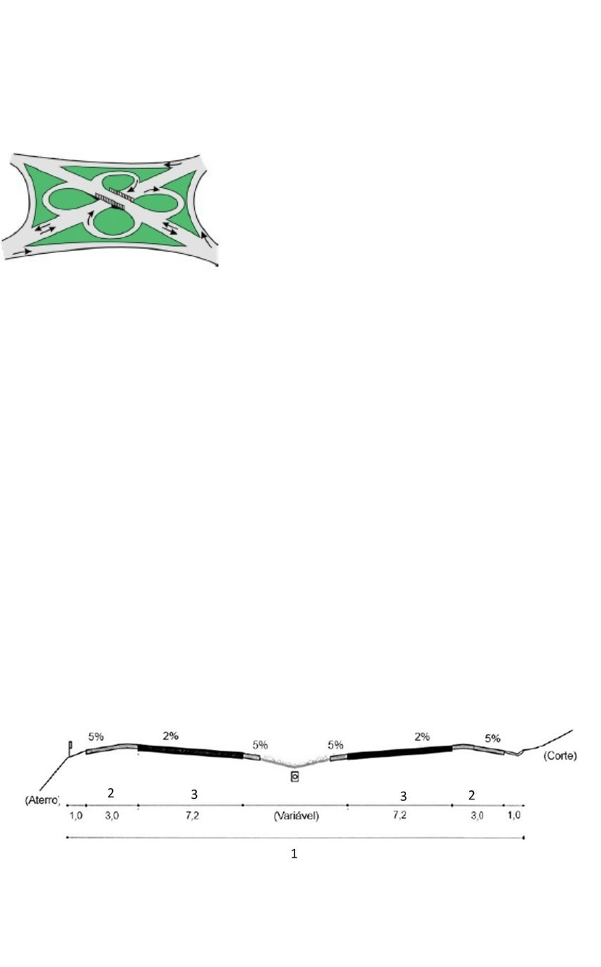Questão 1 Os locais onde ocorrem o cruzamento ou entroncamento de duas ou mais vias são denominados de interseções rodoviárias. O tipo de interseção tem grande importância no projeto de uma estrada porque pode interferir na segurança, capacidade de tráfego, velocidade de operação, além de representar custo significativo em relação ao custo total da rodovia. Qual é a interseção apresentada na imagem? Assinale a alternativa correta. A) Rotatória em desnível. B) Cruzamento em nível. C) Entroncamento em desnível. D) Entroncamento em nível. E) Cruzamento em desnível. Questão 2 Analise a imagem do perfil transversal apresentada na sequência e assinale a alternativa que apresenta os itens demarcados como 1, 2 e 3, respectivamente. Anexo - Consulte a imagem em melhor resolução no final do cadernos de questões. A) Plataforma, acostamento, pista. B) Faixa de tráfego, acostamento, pista. C) Faixa de tráfego, pista, acostamento. D) Pista, acostamento, plataforma. E) Plataforma, pista, acostamento. Questão 3 As primeiras estradas surgiram na mesma época dos primeiros aglomerados humanos. Os homens, naquela época, escolhiam os caminhos mais curtos e mais seguros para chegar a seus locais de pesca ou caça, estabelecendo trilhas, formadas por pontes de troncos caídos. O conhecimento da história por traz das obras de engenharia é importante para se conhecer a evolução dos materiais e entender ainda mais sobre o seu dimensionamento. Enumere a ordem histórica que envolve a construção de estradas. (__) O grande avanço na área de estradas e pavimentação aconteceu com a invenção da roda na Mesopotâmia. (__) O método de macadame foi utilizado pela primeira vez na Europa. (__) Na antiguidade os romanos mostravam o poder do seu império a partir da construção de uma estrada que ligou a Europa a África. Qual é a ordem correta? A) 2-1-3. B) 3-1-2. C) 1-3-2. D) 1-2-3. E) 2-3-1. Questão 4 O traçado de uma estrada é formado por trechos retos concordados por curvas horizontais simples ou de transição, que são inseridas para desviar a estrada de obstáculos. As curvas horizontais de transição possuem algumas funções específicas. Sobre este assunto, leia as afirmativas: I - Permitir a variação progressiva da superelevação, teoricamente nula na tangente e constante na curva. II - Possibilitar a variação contínua de aceleração centrípeta na passagem da tangente para a curva; III - Proporcionar um traçado sem impressão de descontinuidade da curvatura, graças à variação suave da curvatura. A) Apenas a afirmativa III apresenta a função da CHT. B) Apenas a afirmativa II e III apresentam funções da CHT. C) Todas as afirmativas apresentam funções da CHT. D) Apenas a afirmativa I apresenta a função da CHT. E) Apenas a afirmativa I e II apresentam funções da CHT. Questão 5 O perfil transversal ou a seção transversal é o corte da estrada feito por um plano vertical ao eixo. Os elementos que compõem a seção transversal de uma estrada e suas dimensões são escolhidos e determinados em função do volume e das características do tráfego, classe e importância da estrada, assim como das condições mínimas de segurança. Sobre os elementos que compõe a seção transversal, associe as colunas: Coluna 1: 1 – Faixa de rolamento 2 – Acostamento 3 – Plataforma 4 – Faixa de domínio Coluna 2: (__) é o espaço destinado ao fluxo de veículos. (__) é a faixa de largura constante destinada à construção da estrada, incluindo cortes e aterros, obras complementares, etc., e deve apresentar um espaço vazio de pelo menos 10 m de cada lado da estrada. (__) são faixas laterais, localizadas do lado externo das pistas, destinadas à parada de emergência dos veículos. (__) é o espaço que contém pistas, acostamentos, drenagem e separador central no caso de pistas duplas. Assinale a alternativa que apresenta a ordem correta da associação de colunas: A) 1-2-4-3. B) 2-4-1-3. C) 1-4-2-3. D) 4-1-2-3. E) 3-4-2-3. Questão 6 Levando em consideração a determinação do veículo de projeto, analise as afirmativas: I – A predominância de uma certa categoria de veículos define o veículo de projeto a ser escolhido para condicionar as características da via. PORQUE II – Não é interessante dimensionarmos uma rodovia para um tipo de veículo que trafegue em pequenos percentuais sobre ela. Assinale a alternativa correta: A) As duas afirmativas estão corretas e a II é uma justificativa da I. B) Apenas a afirmativa II está correta. C) As duas afirmativas são falsas. D) As duas afirmativas estão corretas, mas a II não é uma justificativa da I. E) Apenas a afirmativa I está correta. Questão 7 Além das curvas horizontais, existem também as curvas verticais. Qual é o objetivo dessas curvas? Assinale a alternativa correta. A) Concordar as rampas projetadas e atender às condições de segurança, boa aparência, boa visibilidade e permitir a drenagem adequada da estrada. B) Desviar a estrada de obstáculos. C) Garantir que os veículos percorram a curva na velocidade diretriz (V) com estabilidade e segurança e proporcionar condições mínimas de visibilidade em toda a curva. D) Possibilitar a variação contínua de aceleração centrípeta na passagem da tangente para a curva. E) Nenhuma das alternativas anteriores. Questão 8 Pesquisas de tráfego são necessárias para o levantar os dados que serão utilizados na elaboração de um projeto de uma estrada. Sobre este assunto, leia as afirmativas e assinale a alternativa correta. I – Um dos tipos de levantamento que pode ser realizado é a pesquisa O/D. II – A pesquisa O/D possui um elevado custo. III – A pesquisa O/D é indicada para trechos onde não há infraestrutura existente. IV – Pesquisas volumétricas são mais aplicadas em rodovias existentes. A) Apenas as afirmativas I, II e III estão corretas. B) Todas as afirmativas estão corretas. C) Apenas as afirmativ
