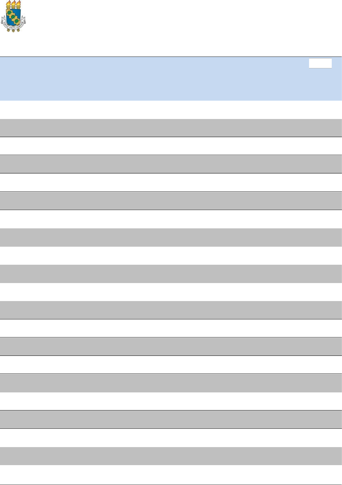 Universidade Federal do Ceará Pró-Reitoria de Graduação Coordenadoria de Planejamento, Informação e Comunicação (COPIC) Chamada de Classificáveis 2012.2 - Edital nº 22/2012 LISTA DE CLASSIFICÁVEIS NoturnoBacharelado ADMINISTRAÇÃO PÚBLICA Cariri Classif. Nome do Candidato Assinatura Vagas no Curso 13 RICARDO BOTELHO RUFINO1 Colocação Lista de Espera SiSU: 140 ROBSON AMARAL RODRIGUES2 Colocação Lista de Espera SiSU: 141 MYRIAN RAQUEL SOUZA BEZERRA3 Colocação Lista de Espera SiSU: 142 MIZAI WERISLEIK DE LIMA4 Colocação Lista de Espera SiSU: 143 THIAGO ALVES DE LIMA5 Colocação Lista de Espera SiSU: 144 DAYANE DO NASCIMENTO TELES6 Colocação Lista de Espera SiSU: 145 ABIGAYL FERNANDES DA SILVA7 Colocação Lista de Espera SiSU: 146 SAYMON BRITO VITORINO8 Colocação Lista de Espera SiSU: 147 MONICA MARIA ALEXANDRE DE JESUS9 Colocação Lista de Espera SiSU: 148 FELIPE TAVARES VIEIRA10 Colocação Lista de Espera SiSU: 149 WERLEY LINO VIEIRA11 Colocação Lista de Espera SiSU: 150 ELIAS DE LIMA SILVA12 Colocação Lista de Espera SiSU: 151 ARTHUR HOLANDA BEZERRA13 Colocação Lista de Espera SiSU: 152 WIDSON GOMES DE OLIVEIRA14 Colocação Lista de Espera SiSU: 153 DANIELLY PEREIRA DOS SANTOS15 Colocação Lista de Espera SiSU: 154 THALYSON RAYAN FAUSTINO DE OLIVEIRA16 Colocação Lista de Espera SiSU: 155 EDMAR FRANCISCO DA SILVA17 Colocação Lista de Espera SiSU: 156 TONNY CHARLES XAVIER DE SOUZA18 Colocação Lista de Espera SiSU: 157 WELLINGTON OLIVEIRA SOARES19 Colocação Lista de Espera SiSU: 158 HELVIDIO ANTONIO DOS SANTOS NETO20 Colocação Lista de Espera SiSU: 159 MARIA DAS DORES BEZERRA21 Colocação Lista de Espera SiSU: 160 Página 1 de 1182 sexta-feira, 19 de outubro de 2012 12:05:07 Universidade Federal do Ceará Pró-Reitoria de Graduação Coordenadoria de Planejamento, Informação e Comunicação (COPIC) Chamada de Classificáveis 2012.2 - Edital nº 22/2012 LISTA DE CLASSIFICÁVEIS NoturnoBacharelado ADMINISTRAÇÃO PÚBLICA Cariri Classif. Nome do Candidato Assinatura Vagas no Curso 13 EDSON OLIVEIRA FERREIRA22 Colocação Lista de Espera SiSU: 161 HIAGO FERREIRA BRAGA23 Colocação Lista de Espera SiSU: 162 RENATA MACEDO LEITE24 Colocação Lista de Espera SiSU: 163 GILSON WELDO DE OLIVEIRA25 Colocação Lista de Espera SiSU: 164 PATRICIA FILGUEIRA DA CRUZ26 Colocação Lista de Espera SiSU: 165 ANA JULIA GOMES DE ANDRADE27 Colocação Lista de Espera SiSU: 166 BRUNA FERREIRA DE SOUSA28 Colocação Lista de Espera SiSU: 167 ROBERTA GONCALVES BEZERRA DE MENEZES29 Colocação Lista de Espera SiSU: 168 ALYNE MARA DE LIMA RODRIGUES30 Colocação Lista de Espera SiSU: 169 PATRICIA CUNHA FLOR31 Colocação Lista de Espera SiSU: 170 LEANDRO MOREIRA DA SILVA32 Colocação Lista de Espera SiSU: 171 CARMELITA BENJAMIM DE LIRA33 Colocação Lista de Espera SiSU: 172 KARYNA DE MENDONCA PEREIRA34 Colocação Lista de Espera SiSU: 173 CARLOS EDUARDO FERREIRA DE SOUZA35 Colocação Lista de Espera SiSU: 174 JULIANA NUNES RODRIGUES36 Colocação Lista de Espera SiSU: 175 CICERA EDNA DA SILVA37 Colocação Lista de Espera SiSU: 176 MARIA DO SOCORRO LOPES DELMONDES38 Colocação Lista de Espera SiSU: 177 ROMARIO PINHO DE OLIVEIRA39 Colocação Lista de Espera SiSU: 178 DAMIANA BENJAMIM GONCALVES40 Colocação Lista de Espera SiSU: 179 ORLISON BARROS FERNANDES41 Colocação Lista de Espera SiSU: 180 FRANCISCA MONICA SILVA42 Colocação Lista de Espera SiSU: 181 Página 2 de 1182 sexta-feira, 19 de outubro de 2012 12:05:07 Universidade Federal do Ceará Pró-Reitoria de Graduação Coordenadoria de Planejamento, Informação e Comunicação (COPIC) Chamada de Classificáveis 2012.2 - Edital nº 22/2012 LISTA DE CLASSIFICÁVEIS NoturnoBacharelado ADMINISTRAÇÃO PÚBLICA Cariri Classif. Nome do Candidato Assinatura Vagas no Curso 13 LAYRA RUBIA RODRIGUES43 Colocação Lista de Espera SiSU: 182 FATIMA SILVIA MODESTO SAMPAIO44 Colocação Lista de Espera SiSU: 183 LUCIVANIA IRENE FEITOZA45 Colocação Lista de Espera SiSU: 184 MARIA DASDORES PEREIRA FLOR46 Colocação Lista de Espera SiSU: 185 THAIS RODRIGUES DE ALBUQUERQUE47 Colocação Lista de Espera SiSU: 186 RAUL VIEIRA DAVID SERAFIM48 Colocação Lista de Espera SiSU: 187 CARLOS EDUARDO DE LIMA SILVA49 Colocação Lista de Espera SiSU: 188 ANA LEONOR PIANCO DE BRITO50 Colocação Lista de Espera SiSU: 189 ELAYNNE RAFAELA DUARTE LUCENA51 Colocação Lista de Espera SiSU: 190 MARIA JAMILLY DE OLIVEIRA ALVES52 Colocação Lista de Espera SiSU: 191 ISMAEL BEZERRA VILAR53 Colocação Lista de Espera SiSU: 192 ANDRE LUIZ TELES AGUIAR54 Colocação Lista de Espera SiSU: 193 GUELMA SILVA DOS SANTOS55 Colocação Lista de Espera SiSU: 194 THAYNA BEZERRA DE LUNA56 Colocação Lista de Espera SiSU: 195 APARECIDA SILVA LEITE57 Colocação Lista de Espera SiSU: 196 RAFAELA FERREIRA BARROS58 Colocação Lista de Espera SiSU: 197 SOLANGE VIEIRA DA SILVA59 Colocação Lista de Espera SiSU: 198 GABRIEL DA SILVA DUARTE60 Colocação Lista de Espera SiSU: 199 JOSE LEMOS DA SILVA LEMOS61 Colocação Lista de Espera SiSU: 200 THAMIRES DE MEDEIROS TORRES62 Colocação Lista de Espera SiSU: 201 CICERA EMILIA BATISTA DE OLIVEIRA63 Colocação Lista de Espera SiSU: 202 Página 3 de 1182 sexta-feira, 19 de outubro de 2012 12:05:07 Universidade Federal do Ceará Pró-Reitoria de Graduação Coordenadoria de Planejamento, Informação e Comunicação (COPIC) Chamada de Classificáveis 2012.2 - Edital nº 22/2012 LISTA DE CLASSIFICÁVEIS NoturnoBacharelado ADMINISTRAÇÃO PÚBLICA Cariri Classif. Nome do Candidato Assinatura Vagas no Curso 13 ISABELLA CRISTINA FURTADO DOS SANTOS64 Colocação Lista de Espera SiSU: 203 TIAGO BEZERRA SILVA65 Colocação Lista de Espera SiSU: 204 RENATA VIEIRA TAVARES66 Colocação Lista de Espera SiSU: 205 JAMILE COSTA DA SILVA67 Colocação Lista de Espera SiSU: 206 SUELEM DOS SANTOS SIMEAO68 Colocação Lista de Espera SiSU: 207 ITALA MORGANA SILVA LEITE69 Colocação Lista de Espera SiSU: 208 ANDREA RUTH M