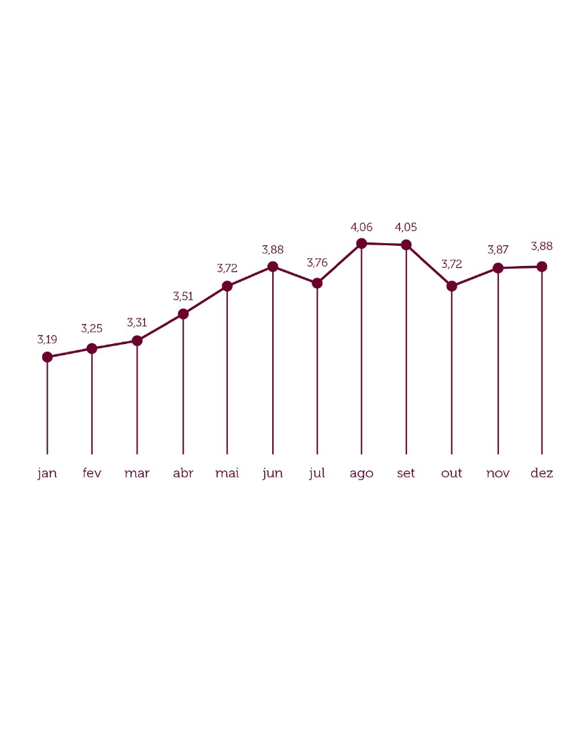 Organização de dados: tabelas e gráficos Um gráfico de linhas fornece uma representação mais clara das variáveis dependentes do tempo. É comumente utilizado para a representação de tendências ou variáveis ao longo do tempo. O gráfico a seguir mostra a cotação do dólar americano no último ano. Analise suas informações e marque a afirmativa correta. B. Os meses de julho e outubro apresentam queda em relação ao seu mês anterior. Por meio de um recurso gráfico, é possível extrair diversas informações relevantes. Para isso, é extremamente importante saber analisar um gráfico. Nesse contexto, considere a situação em que dois amigos participam do grupo de criação de produtos de uma empresa e estão lançando um novo relógio, sendo que o protótipo foi testado por 30 pessoas e, após o teste, elas indicaram o grau de satisfação com o produto. Esse protótipo só continuará em processo de desenvolvimento caso o nível de satisfação da pesquisa seja superior a 80%. Com base no gráfico dos resultados do teste, o processo de desenvolvimento irá continuar? C. Não, pois, considerando os satisfeitos, não se atinge o percentual de 80% de satisfação. As tabelas de distribuição de frequência fornecem informações sobre a amostra em estudo que são bem importantes, como a contagem, em números absolutos, dos dados observados e o quanto cada uma delas representa do todo. Nesse contexto, considere um gerente de banco que está fazendo o levantamento dos tipos de atendimento que os funcionários realizam em determinado dia em uma agência bancária. Os dados desse levantamento são os seguintes: Tipos de atendimento Total Abertura de contas 37 Manutenção de contas 30 Empréstimos 26 Aplicações 18 Dúvidas gerais 9 Pensando nos dados coletados pelo gerente do banco, qual é a porcentagem correspondente a cada tipo de atendimento? Resposta incorreta. A. 30,0%; 25,0%; 22,0%; 15,0%; 8,0%. B. 30,8%; 25,0%; 21,7%; 15,0%; 7,5%. . Gráficos servem para melhorar a visualização de dados dentro da estatística. Eles permitem identificar tendências, fazer comparações, classificar informações, entre outras tarefas importantes para a análise de dados. Para isso, existem diferentes tipos de gráfico que buscam trazer diversas informações para enriquecer as suas análises. As alternativas a seguir mostram gráficos e um exemplo de utilização. Assinale a alternativa que relaciona corretamente o gráfico com o seu tipo de uso. Pode ser utilizado para quaisquer tipos de variáveis. A maneira mais simples de apresentar dados é por meio de tabelas. Ao organizar números em linhas e colunas, a informação transmitida pela tabela pode ser realçada para que uma rápida análise seja suficiente para entendê-la e, então, sejam gerados gráficos mais adequados para a representação dos seus dados. Considere um administrador que fez um levantamento com as idades dos funcionários da sua empresa. Os dados estão na tabela de distribuição de frequências por intervalo a seguir: B.