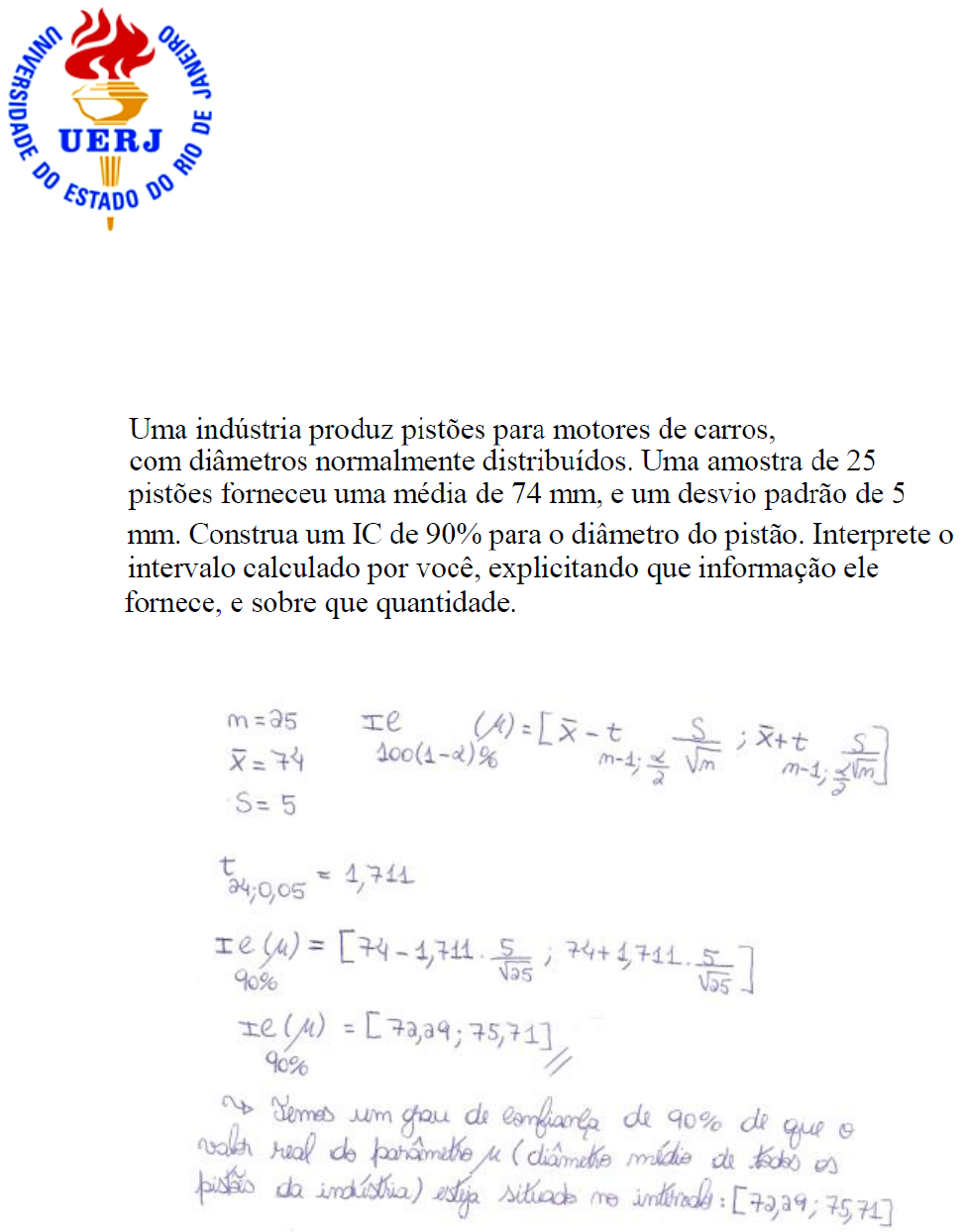 Universidade do Estado do Rio de Janeiro (UERJ) Instituto de Matemática e Estatística (IME) Disciplina de Inferência Estatística Lista de Exercícios para P2 Questão 1 Resolução: Questão 2 Resolução: Questão 3 Resolução: Questão 4 Resolução: Questão 5 Resolução