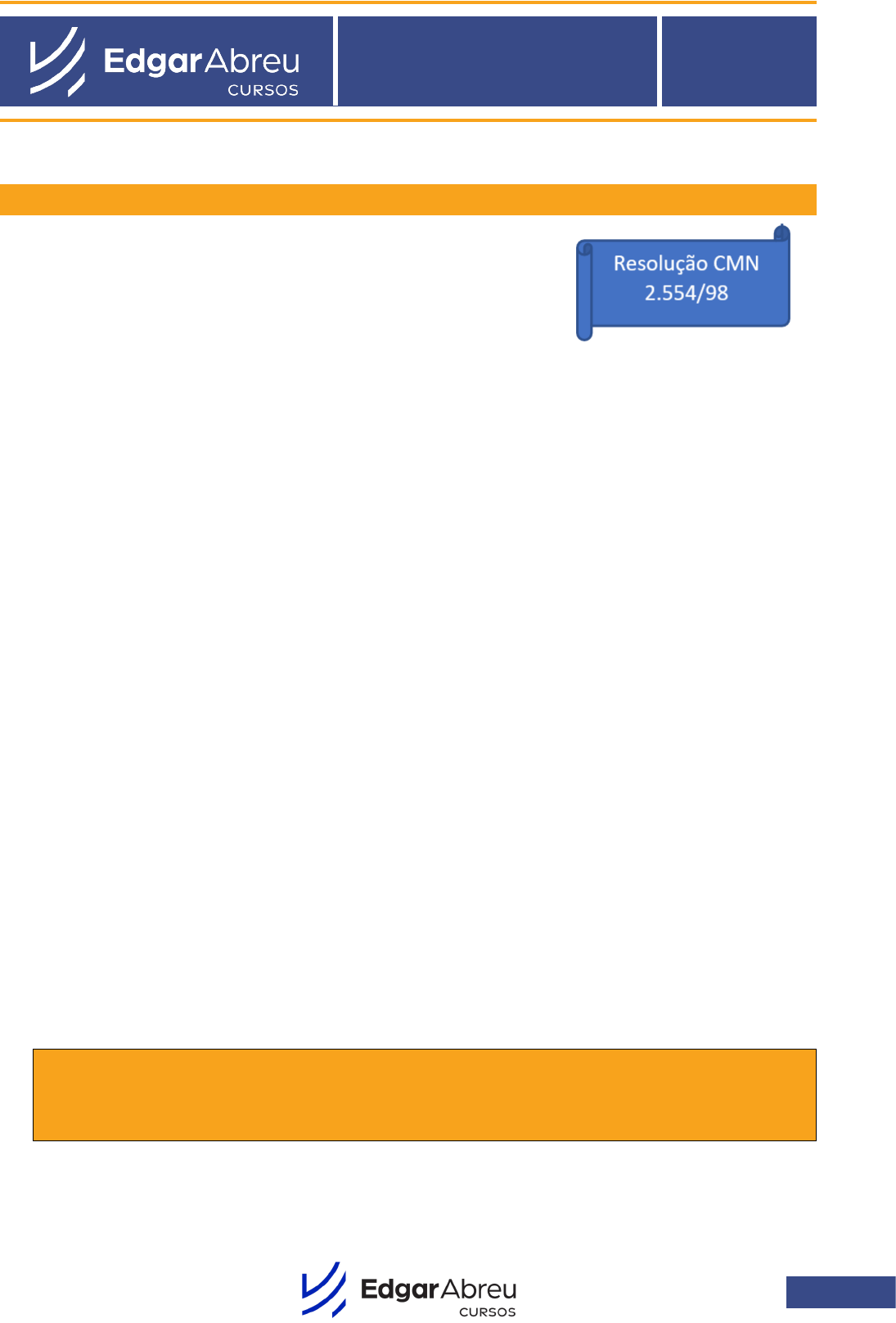 1 CONTROLES INTERNOS CPA-20 CONTROLES INTERNOS Fala Cabeção! Na aula de hoje falaremos sobre Controle Interno. Você sabe o que isso significa? • Controle Interno é a legislação que determina a obrigatoriedade das instituições financeiras de implementar sistemas de controles internos voltados para as atividades por elas desenvolvidas, seus sistemas de informações financeiras, operacionais e gerenciais e o cumprimento das nor- mas legais e regulamentares a elas aplicáveis. Isso significa... Criar uma maneira onde eu, instituição financeira, consiga controlar os meus funcionários interna- mente, afinal eu estou preocupado com meus funcionários, então preciso ter um controle do que acontece dentro da instituição. • O que deve prever no Controle Interno? 1. Ter um sistema que permita que os funcionários da instituição tenham acesso às responsabili- dades e os riscos de suas atividades. 2. Meios de identificar e avaliar fatores internos e externos que possam afetar adversamente a realização dos objetivos da instituição; 3. Dar ao funcionário um canal de atendimento onde ele consiga informações de forma tempesti- vas, confiáveis e compreensíveis consideradas relevantes para suas tarefas e responsabilidades Exemplo: O funcionário está com dúvidas sobre um fundo de investimento. Esse é o canal onde o mesmo encontra respostas que irão o auxiliar no seu dia-a-dia. 4. O Controle Interno precisa prever a segregação das atividades afim de evitar potenciais confli- tos de interesse. • Por quê? Porque eu vou ter atividades dentro do banco que irão gerar conflitos de interesse. Sendo assim, o meu controle interno precisa separar essas situações, mesmo quando for beneficiado com isso. ! Há a obrigatoriedade de exercer testes periódicos no Sistema de Controles Internos, principalmente das informações guardadas em meios eletrônicos, para analisar a segurança dessas informações guardadas. 2 AULA EM PDF EXCLUSIVA PARA ALUNOS • Todos esses controles internos são mecanismos obrigatórios e, quem responde pela implemen- tação é a diretoria da instituição financeira. Logo, se o banco não estiver cumprindo a resolu- ção, o diretor será o responsável. ! Por ser uma resolução do Conselho Monetário Nacional (CMN) tem fiscalização do BACEN. • Sendo assim, em qualquer uma dessas situações, a instituição deve manter à disposição e ga- rantir o acesso irrestrito do Banco Central do Brasil (BACEN) aos papéis de trabalho, relatórios e quaisquer outros documentos elaborados pela auditoria interna da instituição. Resumo O que é Controle Interno? É uma legislação que determina a obrigatoriedade das instituições financeiras de implementar sistemas de controles internos voltados para as atividades por elas desenvolvidas. Principais atividades: Funcionários cientes das responsabilidades e riscos de suas atividades; Identificar e avaliar fatores internos e externos que possam afetar a instituição; Possuir um canal de atendimento para auxiliar o funcionário em seu dia-a-dia; Evitar conflito de interesse. Responsável? Diretoria Órgão fiscalizador? BACEN