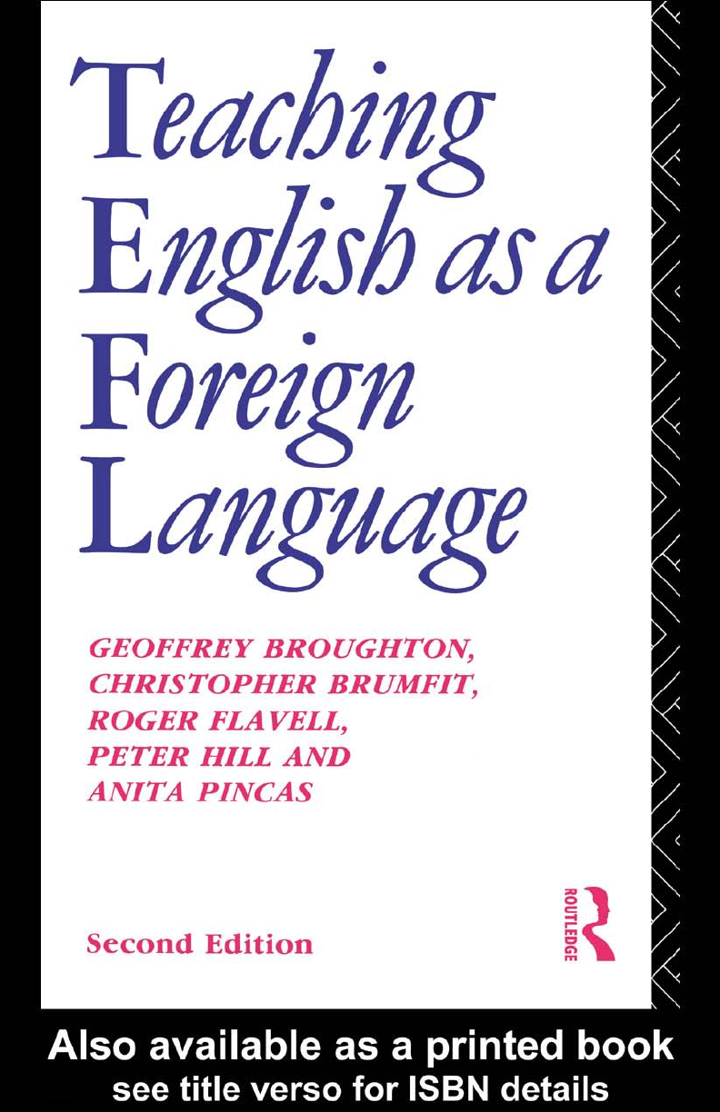 Teaching English as a Foreign Language Routledge Education Books Advisory editor: John Eggleston Professor of Education University of Warwick Teaching English as a Foreign Language Second Edition Geoffrey Broughton, Christopher Brumfit, Roger Flavell, Peter Hill and Anita Pincas University of London Institute of Education London and New York First published 1978 by Routledge & Kegan Paul Ltd This edition published in the Taylor & Francis e-Library, 2003. Second edition published 1980 Simultaneously published in the USA and Canada by Routledge 29 West 35th Street, New York, NY 10001 © 1978, 1980 Geoffrey Broughton, Christopher Brumfit, Roger Flavell, Peter Hill and Anita Pincas All rights reserved. No part of this book may be reprinted or reproduced or utlized in any form or by any electronic, mechanical, or other means, now known or hereafter invented, including photocopying and recording, or in any information storage or retrieval system, without permission in writing from the publishers. British Library Cataloguing in Publication Data Teaching English as a foreign language—(Routledge education books). 1. English Language—Study and teaching—Foreign students I. Broughton, Geoffrey 428’ .2’ 407 PE1128.A2 78–40161 ISBN 0-203-41254-0 Master e-book ISBN ISBN 0-203-72078-4 (Adobe eReader Format) ISBN 0-415-05882-1 (Print Edition) v Contents Preface vii 1 English in the World Today 1 2 In the Classroom 12 3 Language and Communication 25 4 Basic Principles 37 5 Pronunciation 49 6 Listening and Speaking 65 7 Reading 89 8 Writing 116 9 Errors, Correction and Remedial Work 133 10 Assessment and Examinations 145 11 Young Children Learning English 166 12 Learning English in the Secondary School 174 13 Teaching English to Adults 187 14 The English Department 201 Appendix 1 211 Appendix 2 212 Glossary of Selected Terms 214 Bibliography 233 Useful Periodicals 240 Index 241 vii Preface The increased learning and teaching of English throughout the world during recent years in both state and commercial educational institutions has produced a new cadre of professionals: teachers of EFL. Some have moved across from teaching English as a mother tongue, others from teaching modern languages; many have been drawn into service for no other reason than that their own spoken English is good, or perhaps because they are native English speakers. Many have started without specific training, others feel they need to rethink the basis of their teaching. This book is written for teachers of all backgrounds. Our aim is to discuss a wide range of teaching problems—from classroom techniques to school organisation—in order to help practising teachers in their daily tasks. We have adopted an eclectic approach, recognising that the teaching of English must be principled without being dogmatic, and systematic without being inflexible. We have tried to show how the underlying principles of successful foreign language teaching can provide teachers in a wide range of EFL situations with a basic level of competence which can be a springboard for their subsequent professional development. We gratefully record our debt to colleagues and students past and present at the London University Institute of Education, whose experience and thinking have helped shape our own. Particularly, we would like to thank our colleague John Norrish for compiling the bibliography. 1 Chapter 1 English in the World Today English as an international language Of the 4,000 to 5,000 living languages, English is by far the most widely used. As a mother tongue, it ranks second only to Chinese, which is effectively six mutually unintelligible dialects little used outside China. On the other hand the 300 million native speakers of English are to be found in every continent, and an equally widely distributed body of second language speakers, who use English for their day-to-day needs, totals over 250 million. Finally, if we add those areas where decisions affecting life and welfare are made and announced in English, we cover one-sixth of the world’s population. Barriers of race, colour and creed are no hindrance to the continuing spread of the use of English. Besides being a major vehicle of debate at the United Nations, and the language of command for NATO, it is the official language of international aviation, and unofficially is the first language of international sport and the pop scene. Russian propaganda to the Far East is broadcast in English, as are Chinese radio programmes designed to win friends among listeners in East Africa. Indeed more than 60 per cent of the world’s radio programmes are broadcast in English and it is also the language of 70 per cent of the world’s mail. From its position 400 years ago as a dialect, little known beyond the southern counties of England, English has grown to its present status as the major world language. The primary growth in the number English in the World Today 2 of native speakers was due to population increases in the nineteenth century in Britain and the USA. The figures for the UK rose from 9 million in 1800 to 30 million in 1900, to some 56 million today. Even more striking was the increase in the USA (largely due to immigration) from 4 million in 1800, to 76 million a century later and an estimated 216, 451, 900 today. Additionally the development of British colonies took large numbers of English-speaking settlers to Canada, several African territories and Australasia. It was, however, the introduction of English to the indigenous peoples of British colonies which led to the existence today of numerous independent states where English continues in daily use. The instrument of colonial power, the medium for commerce and education, English became the common means of communication: what is more, it was seen as a vehicle for benevolent Victorian enlightenment. The language policy in British India and other territories was largely the fruit of Lord Macaulay’s Education Minute of 1835, where