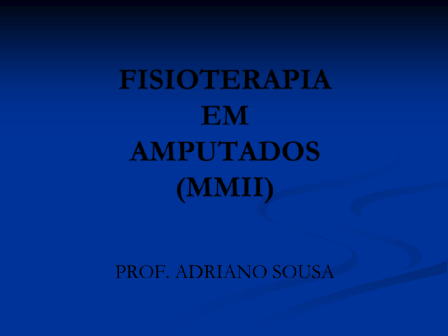 FISIOTERAPIA EM AMPUTADOS (MMII) PROF. ADRIANO SOUSA PROGRAMA PÓS - OPERATÓRIO PRÉ - PROTÉTICA : Preparação física e Psicológica do paciente para a Reabilitação Protética PROTÉTICA : Independência no lar e na comunidade 2 Reabilitação nos pacientes amputados “Reabilitar um paciente não significa somente protetizá-lo mas sim proporcionar: Total controle e independência nas atividades diárias, profissionais e recreativas. 3 Conseguir um bom equilíbrio Potencializar os grupos musculares debilitados Recuperar a função muscular prévia Impedir e eliminar contraturas Impedir deformidades secundárias Diminuir e eliminar estados dolorosos Modelar e maturar o coto Corrigir possíveis defeitos de marcha encontrados Objetivos nos pacientes amputados 4 OBJETIVOS FISIOTERÁPICOS Reabilitação pós -operatória Leito - colchões duros e firmes Prevenir retrações - posicionamento dos membros Mobilidade e transferência - Estimular a troca de decúbito - Transferências Conscientização (riscos de úlceras) 5 Controle postural (fortalecer e mobilizar o tronco) Cinesioterapia global Enfaixamento com faixa elástica Movimentação do coto em 24 a 48 hora (controle edema do coto) Cicatrização ( massoterapia, eletroterapia, hidroterapia (liberação de cicatrizes retráteis e aderidas) 6 Tratamento dores e sensação fantasma Enfaixamento: A sustentação e a firmeza do coto, causadas pelo enfaixamento compressivo auxiliam a reduzir a dor fantasma Massagem proprioceptiva Eletroterapia: US e Tens 7 Deformidades e contraturas Manutenção da ADM Orientação postural: Posicionar em posições contrárias às que predisponham as contraturas e as deformidades (vide figuras) Cinesioterapia: Mobilização das articulações, alongamentos “sempre” precedem ex. de fortalecimento 8 9 Particularidades: Amputado parcial do pé: sentado (pé no solo), evitar a posição em equino. Amputado transtibial: Joelho em extenção , em pé (coto extendido) Amputado trasfemural: manter coto aduzido e encostado no leito. em pé: coto alinhado, em adução Cinesio: contração isométrica de dorsiflexore, ext. do joelho, ext. quadril e adutores. 10 11 Cinesio: Todos o s grupos musculares dos MMSS, tronco e MMII devem ser trabalhados. Exercícios para coto de amputação Mm. Extensores do quadril (fortalecimento dos ext. quadril com bola, Theraband, resist. manual, etc) 12 Condicionamento geral e preparo do coto - Encaminhamento para realizar medidas e feitura da prótese Medidas (Perimetria) – Realizamos 3 mensurações diversas (dias diferentes) - três medidas idênticas. Peso corporal deve estar estável 13 REABILITAÇÃO PRÉ-PROTETIZAÇÃO 14 Objetivos: Habilidade para a realização de atividades sem o uso de prótese Preparação do coto para o uso da prótese Desenvolver programas de alongamento, fortalecimento, propriocepção, equilíbrio e coordenação REABILITAÇÃO PRÉ-PROTETIZAÇÃO 15 Intercorrências: Problemas cicatriciais Neuromas Edemas Dores fantasmas Deformidades e contraturas REABILITAÇÃO PRÉ-PROTETIZAÇÃO 16 Cicatrização Após a total cicatrização: mobilizar a cicatriz e realizar massagem de fricção. Cicatrizes com aderências ou retrações: Massoterapia Eletroterapia Hidroterapia REABILITAÇÃO PRÉ-PROTETIZAÇÃO 17 Neuromas Técnicas de dessensibilização: Massoterapia Eletroterapia (TENS) Hidroterapia Percussão REABILITAÇÃO PRÉ-PROTETIZAÇÃO 18 Edema O edema está presente em todos os pacientes ainda não- protetizados Técnicas para redução do edema: Orientação postural Hidroterapia Massoterapia Eletroterapia Cinesioterapia Meias compressivas Enfaixamento REABILITAÇÃO PRÉ-PROTETIZAÇÃO 19 Dores e sensações fantasmas Recursos terapêuticos: Enfaixamento Mobilizações passivas, ativas, automobilizações e cinesioterapia Eletroterapia Técnicas de dessensibilização REABILITAÇÃO PRÉ-PROTETIZAÇÃO 20 Deformidades e contraturas Orientação postural Cinesioterapia REABILITAÇÃO PRÉ-PROTETIZAÇÃO 21 Tratamento global Finalidade: conseguir o maior potencial funcional do paciente amputado visando uma futura protetização Deve ser feito na presença de um terapeuta e em ambiente adequado Desenvolvimento de programa específico para que o paciente possa realizar algumas atividades em casa REABILITAÇÃO PRÉ-PROTETIZAÇÃO 22 Pacientes acamados Orientar quanto: Posicionamento dos membros Estimular troca de decúbito Transferência para posição sentada Conscientizar o paciente sobre o risco de úlceras REABILITAÇÃO PRÉ-PROTETIZAÇÃO 23 É a ultima etapa do tratamento Responsável pela Independência sucesso da marcha reintegração Social Muito importante o conforto e ajuste da prótese desde o início O paciente tem que ser devidamente treinado (evitar vícios) e respeitar as fases do processo Tratamento Fisioterápico Pós-Protetização 24 25 Estudo de caso Pergunta-se: 1. Quais seriam as possíveis causas de sua amputação? 2. Elabore um plano de tratamento para este caso. Paciente FGL, 75 anos, ex-fumante, diabético, faz uso de medicação anticoagulante há 10 anos, amputado transfemoral terço proximal, já protetizado há 5 anos, com queixa de dores na coluna lombar, presença de área avermelhada na região anterior do coto, dor fantasma, edema, déficit de força muscular (grau=4), equilíbrio e coordenação.