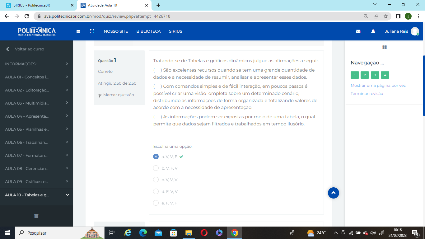 Aula 10 Tabela e gráficos dinâmicos Atividade aula 10 questão 01
