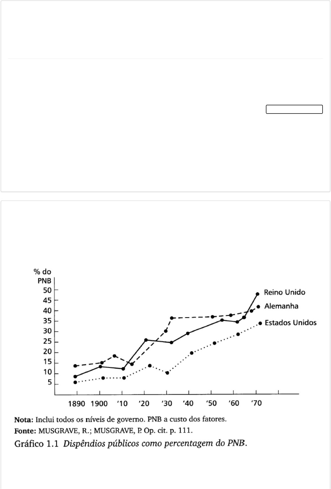 23/02/2023, 21:56 Colaborar - Av - Orçamento Público https://www.colaboraread.com.br/aluno/avaliacao/index/3565945801?atividadeDisciplinaId=14605159 1/6 1) a) b) c) d) e) 2) “O Estado, como instrumento de organização politica da comunidade, deve ser estudado como um sistema de funções que disciplinam e coordenam os meios para atingir determinados objetivos e como um conjunto de órgãos destinados a exercer essas funções (SILVA, 2008, p 21)” A partir deste contexto, ao estabelecermos uma associação das funções do Estado na concepção Aristotélica as finalidades básicas seriam: Alternativas: Inclusão no bolsa família, ordem cívica, ordem econômica e social, desenvolvimento industrial e promoção do bem comum. Segurança, ordem política, ordem econômica, ordem social, desenvolvimento, promoção do bem comum. Alternativa assinalada Ordem cívica, saúde da família, renda mínima, ordem social, desenvolvimento, promoção do desenvolvimento econômico. Segurança, saúde da família, ordem econômica, renda cidadão, desenvolvimento, promoção do bem comum. Seguro desemprego, ordem cívica, ordem econômica, ordem social e desenvolvimento, promoção do bem estar social. O gráfico 1.1 a seguir evidencia o crescimento do dispêndio público comparando as percentagens em relação ao PNB (Produto Nacional Bruto) de três das maiores potências capitalistas do mundo considerando o período de 1890 à 1970. Gráfico 1.1 - Dispêndios Públicos como percentagem do PNB – 1890/1970 Fonte: (MUSGRAVE, p.111 apud GIACOMONI,2009, p.4) Considerando as atribuições econômicas do Estado, as razões do crescimento das despesas públicas estatais são oriundos do crescimento das funções: 23/02/2023, 21:56 Colaborar - Av - Orçamento Público https://www.colaboraread.com.br/aluno/avaliacao/index/3565945801?atividadeDisciplinaId=14605159 2/6 a) b) c) d) e) 3) a) b) c) d) e) 4) Alternativas: Administrativa e de segurança, bem estar social, intervenção direta e indireta no processo produtivo. Alternativa assinalada Administrativa e Legislativa, bem estar social, intervenção indireta na economia através de politicas sociais. Executiva e de segurança, bem estar social, intervenção direta no processo produtivo através do renda mínima. Judicativa e de segurança, bem-estar social, intervenção indireta na economia através do seguro desemprego. Administrativa e de segurança, renda cidadão, bolsa família e intervenção direta no processo produtivo através da redução de tributos. Na Constituição da República Federativa do Brasil de 1988, o tema orçamentário mereceu grande atenção por parte dos constituintes, pois era visto como símbolo das prerrogativas parlamentares perdidas durante período do regime militar. No capitulo II da constituição Federal (nos artigos 165 à 169) que trata das Finanças Públicas as novidades mais importantes introduzidas foram: Escolher a alternativa correta Alternativas: 1.Devolutiva ao Executivo da prerrogativa de proposição de emendas, 2.explicitação da universalidade orçamentária (quais receitas e despesas devem integrar o orçamento?) e 3. exigência anual de encaminhamento da LOA ao Poder Legislativo e Executivo. 1.Devolutiva ao Judiciário da prerrogativa de proposição de emendas, 2.explicitação da universalidade orçamentária (quais gastos devem integrar o orçamento?) e 3. exigência anual de encaminhamento da LDO ao Poder Legislativo e Executivo. 1.Devolutiva ao Legislativo da prerrogativa de proposição de emendas, 2.explicitação da universalidade orçamentária (quais receitas e despesas devem integrar o orçamento) e 3. exigência anual de encaminhamento da Classificação Funcional Programática ao Poder Legislativo e Executivo. 1.Devolutiva ao Legislativo da prerrogativa de proposição de emendas, 2.explicitação da universalidade orçamentária (quais receitas e despesas devem integrar o orçamento?) e 3. exigência anual de encaminhamento da LDO ao Poder Legislativo e Executivo. Alternativa assinalada 1.Devolutiva ao Legislativo da prerrogativa de proposição de emendas, 2.explicitação da universalidade orçamentária (que classificações orçamentárias devem integrar o orçamento?) e 3. exigência anual de encaminhamento do PPA ao Poder Legislativo e Executivo. Para que o orçamento seja a expressão fiel do programa de governo: se constitua em elemento da solução dos problemas da comunidade; tenha eficácia na ação do desenvolvimento econômico; se converta em instrumento legal de administração de governo; reflita as aspirações da sociedade; permita maiores condições de disponibilidade de recursos - é indispensável que obedeça a determinadas regras (KOHAMA, 2012, p.47). Com relação às premissas orçamentárias, o contexto exposto acima diz respeito à Alternativas: 23/02/2023, 21:56 Colaborar - Av - Orçamento Público https://www.colaboraread.com.br/aluno/avaliacao/index/3565945801?atividadeDisciplinaId=14605159 3/6 a) b) c) d) e) 5) a) b) c) d) e) 6) a) b) c) d) e) Fases orçamentárias. Princípios orçamentários. Alternativa assinalada Orçamento de Desempenho. Execução do orçamento. Orçamento Clássico. (GIACOMONI 2017) nos dá um exemplo esclarecedor sobre a necessidade de estabelecer-se objetivos claros e precisos em relação às metas no orçamento público “Um exemplo clássico utilizado para esclarecer esta questão diz respeito aos objetivos de um Programa Rodoviário. Construir quilômetros de rodovias asfaltadas não e? a forma adequada de expressar os objetivos maiores do programa. Se apenas a meta física a ser buscada – tantos quilômetros – justificasse os investimentos, então o projeto de uma estrada em pleno deserto, ligando o nada a coisa nenhuma, estaria amparado. São necessárias indicações sobre os resultados substantivos do programa, que certamente estão ligados a? rapidez e a? segurança com que pessoas e bens são transportados