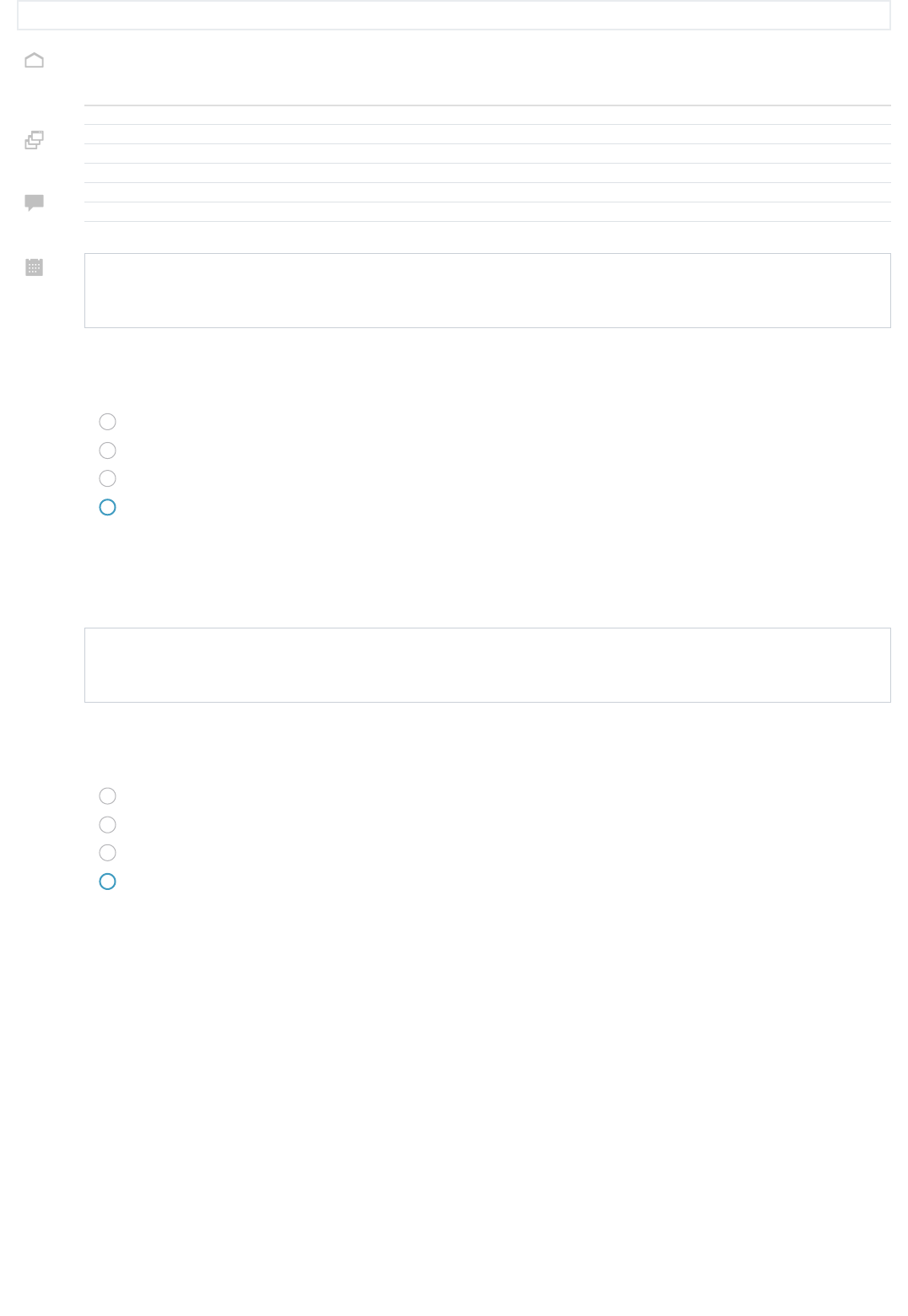 24/02/2023, 16:07 Teste do Capítulo 3: Attempt review https://lms.netacad.com/mod/quiz/review.php?attempt=49311067&cmid=68735482 1/5 Home / I'm Learning / Networking Essentials / Capítulo 3 / Teste do Capítulo 3 Networking Essentials Started on Thursday, 23 February 2023, 8:54 PM State Finished Completed on Thursday, 23 February 2023, 9:04 PM Time taken 10 mins 12 secs Marks 18.00/26.00 Grade 69.23 out of 100.00 Question 1 Correct Mark 2.00 out of 2.00 Question 2 Correct Mark 2.00 out of 2.00 Que tipo de endereço um switch usa para tomar decisões de encaminhamento? Select one: IP de origem IP de destino MAC de origem MAC de destino Refer to curriculum topic: 3.4.2 The correct answer is: MAC de destino Quando um computador monta um quadro a ser enviado pela rede, qual é o tamanho máximo de um quadro Ethernet? Select one: 64 bytes 128 bytes 1024 bytes 1518 bytes Refer to curriculum topic: 3.3.1 Os padrões Ethernet definem o tamanho de um quadro com um mínimo de 64 bytes e um máximo de 1518 bytes que incluem campos MAC de destino, MAC de origem, comprimento/tipo, payload de dados e de FCS. The correct answer is: 1518 bytes Course Home Grades Messages Calendar https://www.netacad.com/portal//dashboard https://www.netacad.com/portal//learning https://lms.netacad.com/course/view.php?id=1825114 https://lms.netacad.com/course/view.php?id=1825114#section-4 https://lms.netacad.com/mod/quiz/view.php?id=68735482 https://lms.netacad.com/course/view.php?id=1825114 https://lms.netacad.com/grade/report/index.php?id=1825114 https://lms.netacad.com/local/mail/view.php?t=course&c=1825114 https://lms.netacad.com/calendar/view.php?view=month&course=1825114 24/02/2023, 16:07 Teste do Capítulo 3: Attempt review https://lms.netacad.com/mod/quiz/review.php?attempt=49311067&cmid=68735482 2/5 Question 3 Correct Mark 2.00 out of 2.00 Question 4 Correct Mark 2.00 out of 2.00 Question 5 Correct Mark 2.00 out of 2.00 Corresponda os componentes na notação 100Base-T à especificação. (Nem todas as opções são usadas). 100 BASE T velocidade em Mbps transmissão banda base cabo de par trançado Refer to curriculum topic: 3.2.2 De acordo com o padrão 802.3, os componentes na notação 100Base-T indicam: 100 é a velocidade em Mbps BASE significa transmissão de banda base T significa o tipo de cabo, neste caso, par trançado. The correct answer is: 100 → velocidade em Mbps, BASE → transmissão banda base, T → cabo de par trançado O que possibilita que e-mails sejam enviados e recebidos em vários tipos de dispositivos, inclusive celulares, PDAs, notebooks e computadores desktop? Select one: Todos os dispositivos executam o mesmo software de sistema operacional. Há um único fornecedor de software de servidor de e-mail. Os dispositivos usam o mesmo software de cliente de e-mail e por isso são compatíveis. O software de e-mail é gravado usando padrões e protocolos que ajudam a garantir a compatibilidade. Refer to curriculum topic: 3.1.2 The correct answer is: O software de e-mail é gravado usando padrões e protocolos que ajudam a garantir a compatibilidade. Que tipo de modelo de rede descreve as funções que devem ser completadas em uma camada específica, mas não especifica exatamente como cada protocolo deve trabalhar? Select one: Modelo TCP/IP modelo de protocolo modelo de referência modelo do design hierárquico Refer to curriculum topic: 3.1.3 Também há dois tipos comuns de modelos de comunicação de rede: Modelo de protocolo - esse módulo corresponde intimamente à estrutura de um conjunto de protocolos específico e descreve as funções que ocorrem em cada camada de protocolos dentro do conjunto. O modelo TCP/IP é um exemplo de modelo de protocolo. Modelo de referência - o objetivo principal é auxiliar em um entendimento mais claro das funções e dos processos necessários para a comunicação de rede. Esse tipo de modelo não especifica exatamente como uma função deve ser realizada. O modelo OSI é um exemplo de modelo de referência. The correct answer is: modelo de referência 24/02/2023, 16:07 Teste do Capítulo 3: Attempt review https://lms.netacad.com/mod/quiz/review.php?attempt=49311067&cmid=68735482 3/5 Question 6 Correct Mark 2.00 out of 2.00 Question 7 Incorrect Mark 0.00 out of 2.00 Question 8 Correct Mark 2.00 out of 2.00 Que termo é usado para se referir a uma PDU de camada 2? Select one: pacote quadro segmento bit Refer to curriculum topic: 3.3.1 A unidade de dados de protocolo (PDU) da camada 2 é o quadro. The correct answer is: quadro Que termo se refere ao conjunto de regras que definem como uma rede funciona? Select one: padrão protocolo modelo domínio Refer to curriculum topic: 3.1.2 Os padrões garantem que dispositivos diferentes conectados à rede consigam se comunicar entre si. Em redes, há muitos padrões que definem que todos os componentes implementem os mesmos protocolos e como a rede deve operar. The correct answer is: padrão Quais são os três elementos comuns a todos os métodos de comunicação? (Escolha três.) Select one or more: destino de mensagem tipo de mensagem origem da mensagem dados de mensagem meio de transmissão comum prioridade de mensagem Refer to curriculum topic: 3.1.1 Todos os métodos de comunicação incluem uma origem de mensagem, destino e um meio de transmissão. The correct answers are: destino de mensagem, origem da mensagem, meio de transmissão comum 24/02/2023, 16:07 Teste do Capítulo 3: Attempt review https://lms.netacad.com/mod/quiz/review.php?attempt=49311067&cmid=68735482 4/5 Question 9 Correct Mark 2.00 out of 2.00 Question 10 Incorrect Mark 0.00 out of 2.00 Question 11 Correct Mark 2.00 out of 2.00 Quais são as três camadas de modelos OSI que preparam a camada da aplicação do modelo TCP/IP? (Escolha três.) Select one or more: enlace de dados rede transporte sessão apresentação aplicação Refer to curriculum topic: 3.2.1 As três camadas superiores do modelo OSI, sessão, apresentação e apli
