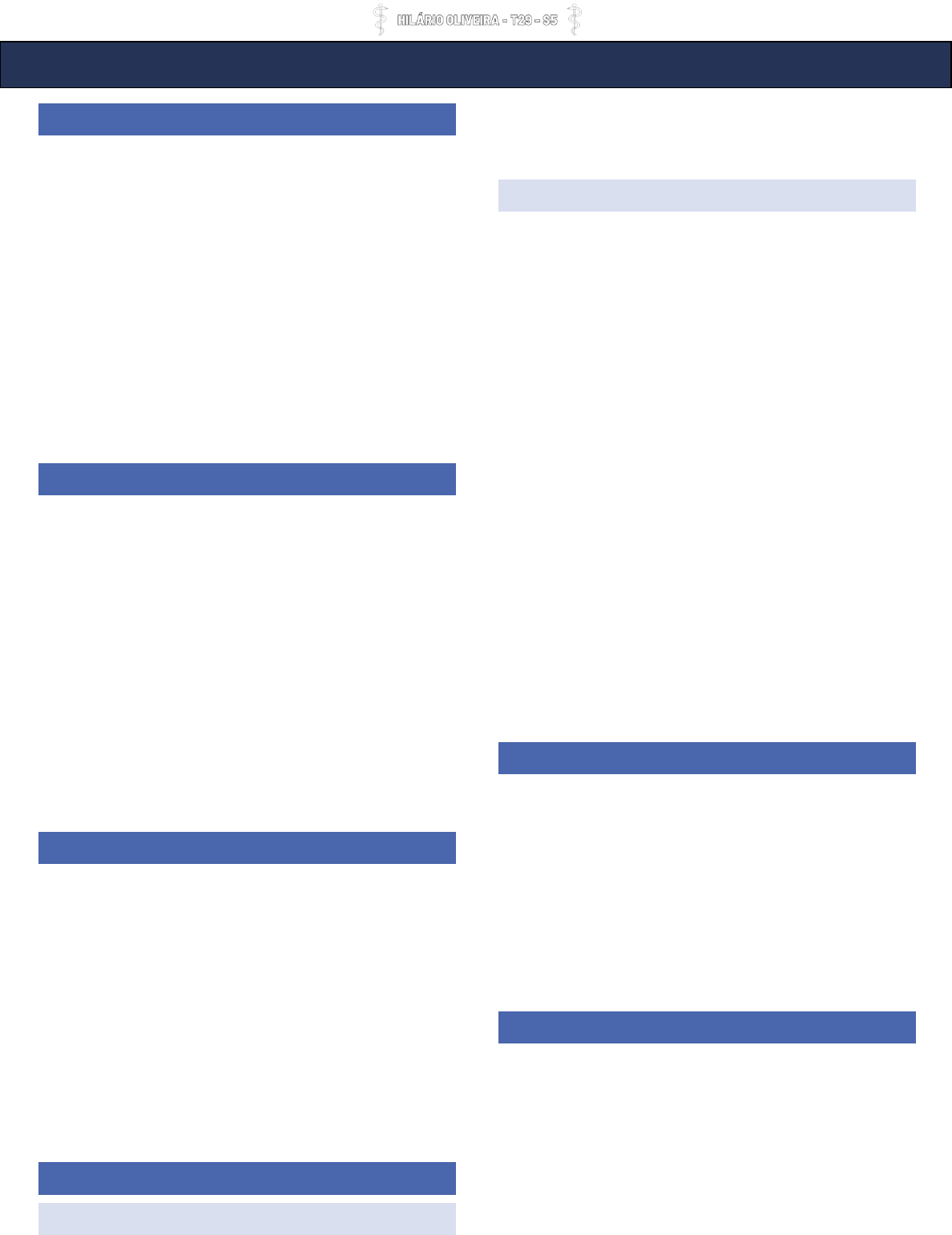 1 DEFINIÇÃO E VISÃO GERAL A DPOC é uma doença comum, heterogênea, pevinível e tratável até certo ponto. É caracterizada por sintomas respiratórios de forma crônica, isso ocorre devido a anormalidades em toda a área respiratória. As alterações de vias aéreas vem de exposição prolongada a particulas ou gases nocivos, o que leva a uma limitação/obstrução fixa e progressiva ao fluxo aéreo. Sabe-se que o paciente tem uma limitação ao fluxo aéreo fixa, através de dados espirométricos, onde VEF1/CVF pós-BD é de <0,70. ENTIDADES CLÍNICAS A DPOC apresenta padrões, sendo esses, o Bronquítico e o enfisematoso → hoje em dia essas definições não são muito utilizadas, tendo em vista que o paciente apresenta um misto das duas patologias. Padrão Bronquítico: • Tosse > 3 meses. • 2 anos consecutivos. Padrão Enfisematoso: • Aumento do volume do espaço aéreo distal. • Dado histológico. EPIDEMIOLOGIA É uma das principais causas de morbimortalidade no mundo, sendo a 3ª maior causa de mortes no mundo. Tem grande impacto socioeconômico → o paciente que exacerba tem internação. A DPOC é fator de risco independente para doenças cardiovasculares. A prevalência da DPOC no brasil, segundo o estudo PLATINO, que avaliou pacientes > 40 anos, resultou em 15,8%. FATORES DE RISCO E PROGRESSÃO AMBIENTAIS: • Tabagismo • Poluição • Metalúrgicos • Infecções • Nível socioeconômico GENÉTICOS: • Deficiência de alfa-1-antitripsina • Mulheres • Idosos • Prematuridade • Asma (12x mais risco de desenvolver DPOC) Habitualmente, a doença decorre da interação de fatores ambientais e fatores genéticos. O tabagismo é o maior fator de risco, principalmente quando a carga tabagica do paciente é de 20 maços/ano. Pacientes em contato com a queima de biomassa, infecções recorrentes e o baixo nível socioeconômico são contribuintes. Quando aos fatores genéticos, a deficiência de alfa-1-antitripsina é geralmente mais associada a pacientes que tem a DPOC precocemente (<45 anos), enfisematosos com predominância em bases (sabendo que o enfisema é mais associado as regiões apicais), com associação em cirrose hepática... Ademais, mulheres, idosos, prematuros e pacientes com histórico de asma, apresentam maior risco de desenvolvimento de DPOC. QUADRO CLÍNICO Quadro crônico de: • Tosse • Expectoração • Dispneia progressiva • Redução de atividades O paciente pode muitas vezes atribuir o cansaço a idade ou ao sedentarismo → perguntar com cautela a atitude dos pacientes aos esforços. EXAME FÍSICO Tem baixa sensibilidade e especificidade, porém alguns dados podem trazer uma ajuda: • Fase expiratória prolongada • Tórax em tonel • MV e cardíaco reduzidos • Roncos e sibilos em ausculta • Sinais de esforço respiratório (respiração com serragem nos lábios, uso de DOENÇA PULMONAR OBSTRUTIVA CRÔNICA (DPOC) 2 musculatura acessória, batimento da asa do nariz, cianose...) • Sinais de cor pulmonale (alteração de câmaras cardíacas direitas em decorrência de doença pulmonar, hipoxemia grave, edema de membros inferiores, turgência jugular, hepatomegalia...) DIAGNÓSTICO História clínica + Exposição compatível + VEF1/CVF < 0,7 Deve ser realizada a espirometria e a relação VEF1/CVF pós-broncodilatador deve ser < 0,70. A espirometria apresenta uma alça expiratória prolongada → devido à demora de expiração do paciente pela sua obstrução. EXAMES COMPLEMENTARES Os exames de imagem não são geralmente utilizados coma finalidade de realizar o diagnóstico de DPOC, mas sim de exclusão de outras hipóteses diagnósticas. • Radiografia de tórax PA e perfil: Em casos iniciais, a RX de tórax pode ser completamente normal, mas pode se apresentar em formas mais graves com sinais de hiperinsuflação pulmonar, aumento de espaços intercostais, aumento do espaço retroesternal, retificação do diafragma, afilamento do mediastino, redução da vasculatura pulmonar... • Tomografia de tórax: Pode apresentar o brônquio espessado, destruição de espaços alveolares (alterações de densidade) • Hemograma → hematócrito (aumentos acima de 55% para hipoxêmicos crônicos); eosinófilos > de 300 em sangue periférico sugere melhor resposta ao tratamento ao C.I. • Gasometria arterial → realizar em pacientes com saturação periférica igual ou < 92% • Alfa-1-Antitripsina → em DPOC precoce, doença hepática associada, enfisema em base... • Ecocardiograma → em pacientes com cor pulmonale. • Exame de escarro → para pacientes com infecções de repetição, para identificar o agente etiológico. AVALIAÇÃO DO PACIENTE É importante lembrar que esses pacientes são geralmente associados a comorbidades → associadas ao tabagismo ou a própria DPOC • Comorbidades → muitos apresentam DAC, IC, transtornos de ansiedade. • Dispneia (mMRC) • Exacerbações → nos últimos 12 meses • Gravidade (VEF1) A avaliação desses pontos ajuda em uma classificação final e na escolha do tratamento do paciente com DPOC. CLASSIFICAÇÃO DE GRAVIDADE A classificação da gravidade é feita com base no VEF1 pós broncodilatador da espirometria. O paciente pode ser GOLD (1 a 4). CLASSIFICAÇÃO DA DISPNEIA - MMRC O grau da dispneia é dito pelo paciente e nessa classificação é utilizada a escala de mMRC. 3 CAT SCORE A escala de CAT ajuda a medir o impacto que a DPOC tem no dia a dia do paciente. CLASSIFICAÇÃO DE SINTOMAS E EXACERBAÇÕES Com base na junção das avaliações e histórias de exacerbações nos últimos 12 meses, é possível colocar o paciente em uma classe e definir o manejo adequado. Segundo o GOLD-2023, a classificação é a seguinte: A. O paciente que se apresenta como pouco sintomático (mMRC de 0-1 ou CAT <10) será classificado como A se não tiver exacerbações. B. O paciente que se apresenta como muito sintomático (mMRC > 2 ou CAT >10) será classificado como B se