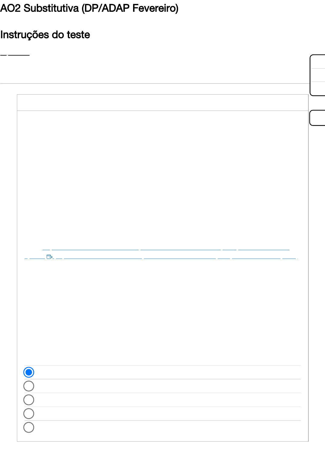 AO2 Substitutiva (DP/ADAP Fevereiro) Iniciado: 26 fev em 9:34 Instruções do teste Importante: Caso você esteja realizando a atividade através do aplicativo "Canvas Student", é necessário que você clique em "FAZER O QUESTIONÁRIO", no final da página. 0,6 ptsPergunta 1 II e III. I I e III. I, II, III. I e II. Leia o texto abaixo que aborda o que seria uma inovação radical ou disruptiva: “A inovação radical é um tipo de criação que atinge e altera a base das coisas. Quando mudamos radicalmente uma casa não trocamos apenas a pintura das paredes, mas seus alicerces, estruturas, colunas e fundação. Em um negócio, esse tipo de mudança pode ocorrer em produtos, métodos de gestão, processos e afins, sempre se caracterizando pelo rompimento dos princípios-chave dos modelos anteriores e início de um novo ciclo. Por sua vez, a inovação disruptiva é um tipo de inovação radical que, ao mesmo tempo, desestabiliza uma situação consolidada e cria uma nova situação de mercado. Por exemplo: o UBER é um serviço de transporte urbano que desestabilizou os serviços de táxi e criou um novo modelo.” Fonte: https://www.euax.com.br/2017/07/tipos-de-inovacao-conheca-os-principais-e-saiba-como- aplicar/ (https://www.euax.com.br/2017/07/tipos-de-inovacao-conheca-os-principais-e-saiba-como-aplicar/) Pensando na intensidade ou grau de inovação, analise as afirmativas a seguir: I. É impossível estabelecer uma linha divisória entre uma inovação adaptativa e radical, pois tais processos são semelhantes e envolvem um aperfeiçoamento de processo e produto. II. Uma inovação não necessita ser radical ou disruptiva, pois poderá ser resultado de um aperfeiçoamento do produto ou de um serviço. III. Inovações advindas de mudanças radicais trazem novos produtos e serviços, consequentemente, alteram o mercado e a interação da sociedade com as tecnologias. É correto o que se afirma apenas em: A+ A A- https://www.euax.com.br/2017/07/tipos-de-inovacao-conheca-os-principais-e-saiba-como-aplicar/ 0,6 ptsPergunta 2 Há um item incorreto no quadro apresentado, pois a inovação é somente um atributo quando ocorre na criação de uma organização. A imagem apresentada reforça que o empreendedorismo é um conceito restrito a criação e desenvolvimento de uma pequena empresa. O quadro demonstra que o conceito de empreendedorismo pode ser utilizado para qualquer atividade que é desenvolvida dentro de uma organização. O empreendedorismo não é movido pela necessidade de atender um mercado, mas somente pela vontade do individuo que deseja empreender. Pode-se afirmar que uma empresa não possui uma característica empreendedora, pois ela já existe e está integrada aos negócios de uma sociedade. Observe a imagem abaixo: Fonte: https://www.appai.org.br/appai-ta-querendo-empreender-entao-para-tudo-e-se-liga-na-missao-projeto-appai- empreendedora-1/. Acesso em 09/04/2021. Partindo do que está exposto na imagem e da abordagem amplo a respeito do tema empreendedorismo, assinale a alternativa correta. 0,6 ptsPergunta 3 (FGV, 2018, adaptado) O planejamento estratégico é o processo responsável pela formulação de metas e objetivos de um empreendimento, estabelecendo as ações necessárias para alcançá-los, considerando os ambientes internos e externos, e um cenário de longo prazo. Verifique nas afirmativas abaixo, qual é uma ação relacionada ao planejamento estratégico. I. A aquisição de um equipamento específico. II. A análise de desempenho de um projeto. A+ A A- II, III e IV. I, II e IV. I, II, III e IV. III. I. III. A concepção da missão, visão e valores da organização. IV. O desligamento de funcionários. É correto o que se afirma apenas em: 0,6 ptsPergunta 4 I e IV. III e IV. III. I e II. II. (ENAD, 2015, adaptado) O investimento em inovação é um caminho importante para as empresas que desejam diferenciar-se dos seus concorrentes. Em comum, as empresas mais inovadoras no Brasil possuem a decisão dos seus líderes de manter quase inalterados os investimentos em inovação, mesmo diante de um cenário externo desfavorável. Tal situação é possível porque os gestores acreditam que os investimentos em inovação ajudam a superar os momentos difíceis e a preparar as empresas para os desafios futuros. Diante da importância da inovação nos negócios, verifique as afirmativas a seguir. I. O processo de inovação diz respeito somente a projetos de alto teor tecnológico. II. A inovação se aplica somente em produtos utilizados para fins muito específicos. III. Invenções que ainda não estão disponíveis no mercado podem surgir a partir do estimulo à inovação. IV. Atividades que dependem de elevados investimentos não devem participar do processo de inovação. É correto apenas o que se afirma em 0,6 ptsPergunta 5 A imagem abaixo apresenta algumas “regras” para condução de uma ação de brainstorming: A+ A A- I, II, III. II e III. I e III. I II. Fonte: https://br.pinterest.com/pin/61502351135156243/?lp=true (https://br.pinterest.com/pin/61502351135156243/?lp=true) Considerando a imagem apresentada e sua relação com o empreendedorismo, analise as afirmativas a seguir: I. O brainstorming pode colaborar para um empreendedor gerar ideias que vão contribuir para desenvolver soluções comerciáveis ao seu negócio. II. Sabemos que empreendedores são pessoas criativas e conseguem desenvolver boas ideias, por conseguinte, o brainstorming é totalmente dispensável. III. É importante que o empreendedor entenda que o brainstorming é focado em avaliar soluções e não no problema. É correto o que se afirma apenas em: A+ A A- https://br.pinterest.com/pin/61502351135156243/?lp=true 0,6 ptsPergunta 6 Missão, recursos, objetivos, indicadores e resultados. Missão, visão, objetivos, metas e indicadores. Missão, visão, objetivos, recursos e resultados. Diretriz, visão, indicadores, senso público e honestidade. Diretriz, visão, objetivo