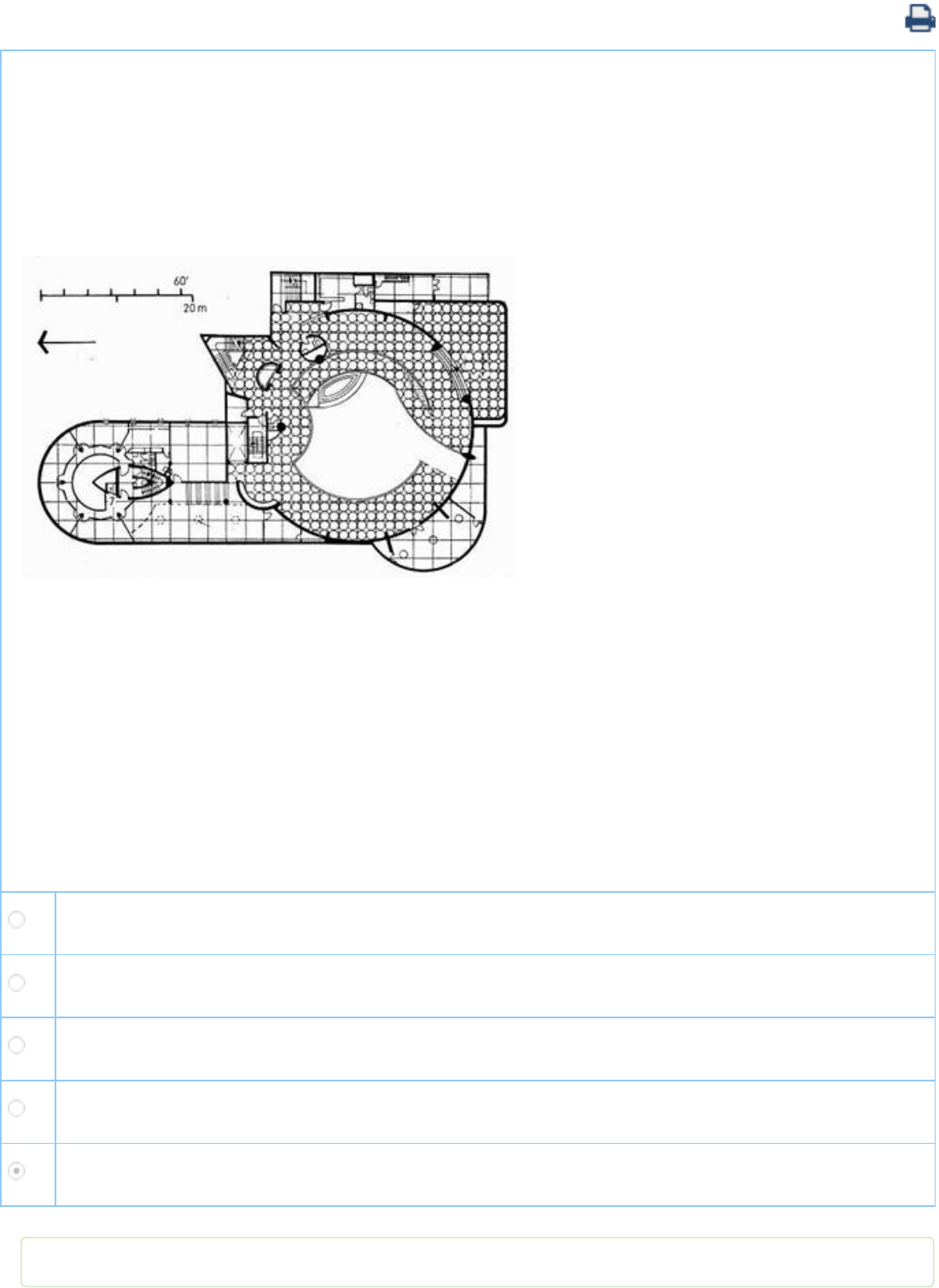 O Museu Guggenheim, projetado pelo arquiteto Frank Lloyd Wright (Nova Iorque, 1943), representou espacialmente uma nova visão na forma de exposição de obras de artes. Sua forma cilíndrica, originada de uma espiral, cria uma galeria contínua e aberta de exposições, que circunda um grande vazio coroado por uma cúpula transparente. A rampa helicoidal caracteriza-se pela ausência de aberturas para o exterior, isolando a galeria dos ruídos da cidade. Observe as imagens do Museu Guggenheim e leia as a!rmações a seguir. Museu Guggenheim – Nova Iorque. Disponível em <http://museuguggenheim2009.blogspot.com/2009/11/plantas-e-corte.html>. Acesso em 31 mai. 2010. 1. Geometricamente o museu é uma grande espiral cônica de base circular. 2. Na planta, são utilizadas !guras geométricas simples como quadrados, círculos e retângulos em uma composição harmoniosa que geram os volumes do edifício. 3. A estrutura ortogonal está presente na circulação do edifício como também na organização das obras de arte. Analisando as a!rmações, conclui-se que A as t rês são verdadeiras.as t rês são verdadeiras. B somente a pr imeira é verdadeira .somente a pr imeira é verdadeira . C somente a segunda e a terce i ra são verdadeiras.somente a segunda e a terce i ra são verdadeiras. D somente a terce i ra é verdadeira .somente a terce i ra é verdadeira . E somente a pr imeira e a segunda são verdadeiras.somente a pr imeira e a segunda são verdadeiras. ! Você já respondeu e acertou esse exercício. A resposta correta é: E.E. A imagem abaixo apresenta a Biblioteca Nacional da França, projeto de Dominique Perrault (1995). Um dos últimos monumentos públicos de Paris, implantados por François Mitterrand, que também viabilizou a Pirâmide do Louvre, entre outros. As torres propostas se voltam para um grande vazio, estes volumes representam quatro livros abertos. Do ponto de vista formal o projeto é composto por A quatro parale lepípedos.quatro parale lepípedos. B oito pr ismas com base t r iangular.o i to pr ismas com base t r iangular. C oito pol ígonos com base em “L”.o i to pol ígonos com base em “L”. D quatro t roncos p i ramidais.quatro t roncos p i ramidais. E quatro pr ismas com base em “L”.quatro pr ismas com base em “L”. ! Você já respondeu e acertou esse exercício. A resposta correta é: E.E. Observe o desenho em perspectiva isométrica. Em relação as características da perspectiva isométrica, são feitas as a!rmações a seguir. I- Os eixos formam entre si ângulos de 120° e são chamados de eixos isométricos. II- As reduções nas três dimensões são iguais e têm o valor de 0,8165, mas pode ser feita a perspectiva sem redução, chamada de perspectiva isométrica simpli!cada. III- As retas paralelas do objeto, permanecem paralelas na perspectiva se forem paralelas aos eixos. IV- Os ângulos, as linhas e planos não isométricos não aparecem em verdadeira grandeza. Analisando essas a!rmações, conclui-se que: A somente a pr imeira e a quar ta a! rmações são verdadeiras.somente a pr imeira e a quar ta a! rmações são verdadeiras. B somente a segunda e a terce i ra a! rmações são verdadeiras.somente a segunda e a terce i ra a! rmações são verdadeiras. C somente a pr imeira e a segunda a! rmações são verdadeiras.somente a pr imeira e a segunda a! rmações são verdadeiras. D somente a segunda, a terce i ra e a quar ta a! rmações são verdadeiras.somente a segunda, a terce i ra e a quar ta a! rmações são verdadeiras. E as quatro a! rmações são verdadeiras.as quatro a! rmações são verdadeiras. ! Você já respondeu e acertou esse exercício. A resposta correta é: E.E. A projeção ortogonal consiste na representação plana de um objeto nas três direções ortogonais, resultando em seis projeções, também chamadas de vistas. Na !gura abaixo vemos as projeções 1, 2, 3, 4, 5 e 6, sendo: A infer ior, f rontal, lateral esquerda, lateral d i re i ta , super ior e poster ior, respec t ivamente.infer ior, f rontal, lateral esquerda, lateral d i re i ta , super ior e poster ior, respec t ivamente. B super ior, f rontal, lateral d i re i ta , lateral esquerda, infer ior e t rasei ra , respec t ivamente.super ior, f rontal, lateral d i re i ta , lateral esquerda, infer ior e t rasei ra , respec t ivamente. C super ior, poster ior, lateral d i re i ta , lateral esquerda, infer ior e f rontal, respec t ivamente.super ior, poster ior, lateral d i re i ta , lateral esquerda, infer ior e f rontal, respec t ivamente. D super ior, poster ior, lateral esquerda, lateral d i re i ta , infer ior e f rontal, respec t ivamente.super ior, poster ior, lateral esquerda, lateral d i re i ta , infer ior e f rontal, respec t ivamente. E super ior, f rontal, lateral esquerda, lateral d i re i ta , infer ior e poster ior, respec t ivamente.super ior, f rontal, lateral esquerda, lateral d i re i ta , infer ior e poster ior, respec t ivamente. ! Você já respondeu e acertou esse exercício. A resposta correta é: E.E. O acervo arquitetônico e paisagístico da cidade de Mariana foi tombado pelo IPHAN em 1938 e, em 1945, a cidade foi elevada à condição de Monumento Nacional, por ter sido o berço da história de Minas. Dentro do conjunto urbano tombado existem 14 monumentos considerados mais signi!cativos que receberam tombamento isolado. Entre estes, destaca-se a Igreja de Nossa Senhora do Carmo, cuja construção foi iniciada em 1762 e concluída em 1835. Observe abaixo o desenho elaborado pelo arquiteto Altino Barbosa Caldeira para o primeiro projeto de restauração da igreja em 1992. Desenho da Igreja Nossa Senhora do Carmo, 1992. Em relação ao desenho em perspectiva militar elaborada pelo arquiteto, são feitas as a!rmações a seguir I- É uma perspectiva onde os eixos x e y formam entre sí um ângulo reto. II- As reduções nas três dimensões são iguais e têm o valor de 0,8165. III- Para construí-la é necessário reduz