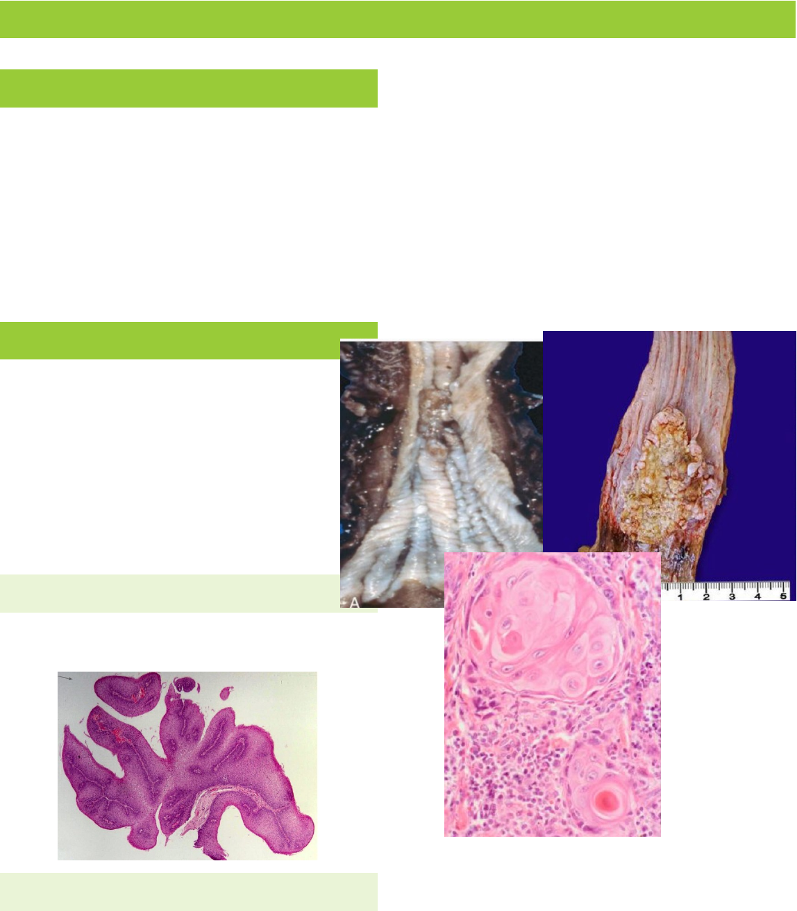 Patologia Amanda göedert Tumores do TGI Muito comuns Nomenclatura: Carcinoma - maligno epitelial CEC - epitélio escamosos estratificado Mesenquimais (estromais) - derivados do mesoderma TGI = Basicamente é um tubo, que muda de epitélio de acordo com a altura, e composto por diferentes camadas, cada um desses tecidos pode ter um tipo de neoplasia, por isso, há uma variedade de neoplasias de origens diferentes Esôfago: Histologia: epitélio escamoso estratificado não ceratinizado · Lâmina própria, submucosa, muscular própria e adventícia Há duas principais neoplasias no esôfago, e as duas possuem origem epitelial, a mais comum é o Carcinoma de Células Escamosas (CEC) esofágico, mas, recentemente houve um aumento do número de casos de Adenocarcinoma esofágico Benignos O mais comum é o papiloma escamoso - relacionado com o HPV ou irritação mucosa crônica Malignos: Carcinoma de Células Escamosas Esofágico: Mais comum, normalmente adultos acima de 45 anos e homens são mais afetados Fatores de risco: tabagismo, álcool, lesões esofágicas, consumo frequente de bebidas quentes, exposição a mutagênicos etc. Sintomas: geralmente são tardios, odinofagia, disfagia, perda de peso, dificuldade para engolir, hemorragias etc. Morfologia: Mais comum no terço médio do esôfago, pode se apresentar na forma polipoide, com massas sólidas se projetando para dentro do lúmen obstruindo-o ou lesões ulceradas infiltrativas e espalhadas pela parede do esôfago Microscopia: Histologia comum do CEC, citoplasma amplo, eosinofílicos, atipias nucleares, presença de ceretinização Adenocarcinoma Esofágico: Risco em pacientes que tem displasia no esôfago, obesos, tabagistas, mais frequente em caucasianos homens Incidência vem aumentando em países desenvolvidos Sintomas: Disfagia, dor para deglutir, hemorragias, emagrecimento etc. Sobrevida em 5 anos em menos de 35% quando estágio mais avançado Patogenia: Mais comum em pacientes que tem refluxo gástrico crônico, acaba lesando e irritando o terço distal do esôfago, a mucosa cronicamente irritada precisa se defender, ela sofre metaplasia, ocorre a transformação do epitélio escamoso em glandular intestinal - esôfago de Barret. O acúmulo de mutações ou falta de cuidado pode evoluir para uma displasia de Barret (lesão pré-neoplásica) que também é tratável, mas caso não seja, evolui para o carcinoma Adenocarcinoma comum na porção distal, na junção gastroesofágica Macroscopia: Se presenta como placas ou úlceras mais elevadas, produção de glândulas irregulares que secretam mucina Microscopia: Placas planas elevadas e associação com o epitélio de Barret Estômago: Histologia: Epitélio colunar simples (glandular) Mais comum adenocarcinomas · Lâmina própria, submucosa, vasos, nervos etc. = tumores mesenquimais · Células G = Tumores neuroendócrinos · MALT = Linfomas Benignos – Pólipos gástricos: Há vários tipos de pólipos, cerca de 5% das endoscopias identificam um tipo de pólipo Frequente em quem tem gastrite - benigno, retirado Pólipos glandulares fundicos: 70-90% dos pólipos analisados, tem esse nome pois é originado pelas células do fundo gástrico, é benigno, pode ser esporádico ou poliposes Proliferação de células parietais Adenomas/Pólipos adenomatosos: Menos frequentes, adenoma é uma displasia (pré-neoplásico) necessita de acompanhamento mais rigoroso Núcleos mais escuros e sobrepostos Malignos: Adenocarcinoma Gástrico: Neoplasia maligna mais comum de estômago (>90%), homens mais velhos, sintomas iniciais vagos ou assintomáticos, diagnosticado em estágios mais avançados Comum em grupos socioeconômicos baixos Comum em pacientes com atrofia da mucosa e metaplasia intestinal Patogenia: 90% esporádico Relacionado com inflamações crônicas induzida pelo H. pylori Infecção por EBV Tabagismo, álcool, dieta Há alterações moleculares no gene CDH1, que codifica uma proteína (E-caderina (aderência intercelular)( que tem função de unir as células, então, e por isso, as neoplasias e mutações ocorrem de formas mais isoladas e difusas Mutações do TP53 Indicadores prognósticos: profundidade de invasão, subtipo, diferenciação, presença e extensão de metástases (linfonodais e/ou à distância), subtipos moleculares Subtipos de adenocarcinomas gástricos: Cada um tem um padrão histológico, a patogenia e prognóstico são diferentes, os dois subtipos principais é o tubular e o pouco coeso Classificação de Lauren: Tipo difuso = pouco coeso e o tipo intestinal = tubular · Tipo Tubular: Forma túbulos ou glândulas · Pouco coeso: Mutação na E-caderina, não forma tubo, difuso, células em anel de sinete Macroscopia: Massas elevadas no tipo tubular, e lesões extensas, linite plástico “aspecto de cantil de couro no tipo pouco coeso Tipo tubular: Tipo pouco coeso: Outros tumores: Linfomas: 5% de todas as neoplasias gástricas malignas Tumores neuroendócrinos (células G) Leiomiomas Leiomiossarcomas Tumor estromal gastrointestinal – GIST Tumor mesenquimal mais comum de abdome (mais da metade no estômago, mas ocorre em qualquer altura do TGI) Origem das células de Cajal (marcapasso gastrointestinal do SNA, que auxilia no peristaltismo) Mutações no gene que codifica a tirosina cinase (KIT) Os receptores tirosina cinases de KIT constantemente ativos produzem sinais intracelulares que promovem a proliferação e sobrevivência de células tumorais Mais 60 anos, homens, assintomático inicialmente, prognóstico depende do estadiamento, tratamento envolve cirurgia ou inibidores de tirosinas cinases Pode dar sintomas quando volumoso Histo: pequenos nódulos, células fusiformes, e menos comum - epitelioide (lembrando células epiteliais) Instestino: Histologia: Epitélio colunar simples (glandular) Adenocarcinomas, Tumores mesenquimais, neuroendócrinos e linfomas Pólipos intestinais: Muito comuns no intestino grosso, sésseis ou pediculados, podem ser n