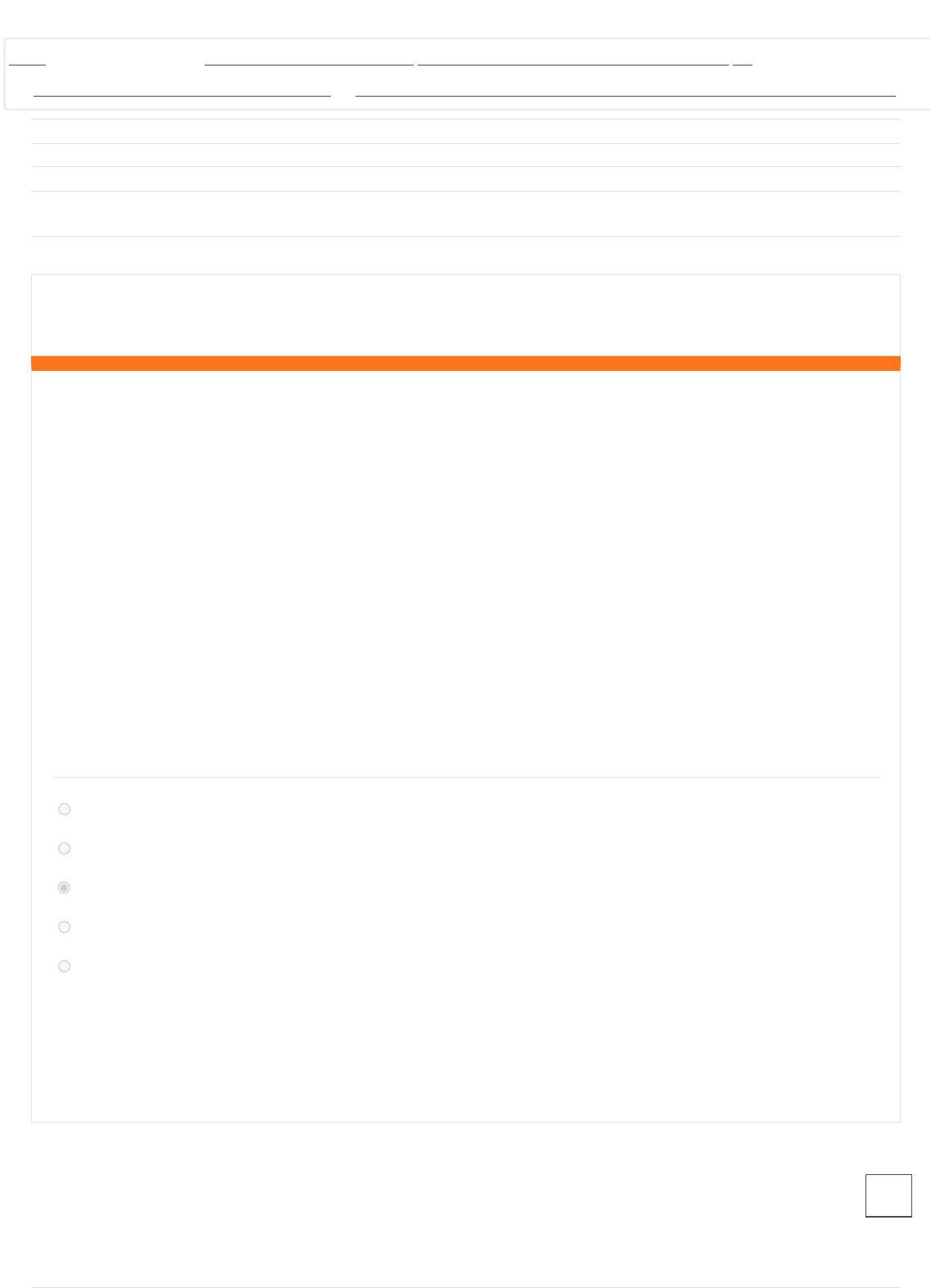 Iniciado em sábado, 25 fev 2023, 12:34 Estado Finalizada Concluída em sábado, 25 fev 2023, 13:03 Tempo empregado 29 minutos Avaliar 0,50 de um máximo de 0,50(100%) Questão 1 Correto Atingiu 0,05 de 0,05 O mercado atual tem se mostrado altamente competitivo e as empresas lutam para se destacar perante as demais. A acirrada disputa por consumidores faz com que a organização mobilize esforços a fim de satisfazer suas necessidades não atendidas. Esse novo cenário competitivo leva as organizações a revisar suas estratégias e a almejar, cada vez mais, melhores níveis de competitividade e de excelência. As empresas buscam profissionais qualificados e competentes em suas funções. Diante do constante crescimento do estudo e aplicação das competências no meio empresarial, torna-se importante apontar quais são, de fato, as principais habilidades para a atuação do administrador na atualidade. Assim sendo julgue as afirmativas abaixo. I. Habilidades técnicas: em nível de administração operacional, são aquelas inerentes ao uso de conhecimento especializado para execução de técnicas relacionadas com o trabalho. Dizem respeito ao desempenho de funções ou trabalhos especializados dentro da organização. Realização de tarefas específicas. II. Habilidades humanas: em nível de alta administração, exige visão geral da organização. Trabalha com ideias e conceitos, teorias e abstrações. Capacidade de compreender a organização como um todo. III. Habilidades conceituais: em nível de administração média, relaciona-se diretamente com o trabalho com pessoas. Relacionamento interpessoal ou em grupo. Capacidade de trabalhar com pessoas. Assinale a alternativa correta: a. Apenas II está correta b. Apenas II e III estão corretas c. Apenas I está correta d. Apenas I e II estão corretas e. Apenas III está correta Sua resposta está correta. A resposta correta é: Apenas I está correta Painel / Minhas Disciplinas / BACHARELADO EM ADMINISTRAÇÃO EAD -1123- FUNDAMENTOS DA ADMINISTRAÇÃO / ATIVIDADE DE ESTUDO 02 - VALOR 0,5 PONTOS / CLIQUE AQUI PARA REALIZAR A ATIVIDADE DE ESTUDO 02 - PRAZO FINAL: 26/02/2023 https://www.eadunifatecie.com.br/course/view.php?id=14273 https://www.eadunifatecie.com.br/my/ https://www.eadunifatecie.com.br/course/view.php?id=14273 https://www.eadunifatecie.com.br/course/view.php?id=14273#section-8 https://www.eadunifatecie.com.br/mod/quiz/view.php?id=443130 Questão 2 Correto Atingiu 0,05 de 0,05 É uma atividade concreta, uma vez que envolve trabalhar com pessoas. Significa liderar, influenciar e motivar as pessoas para que possam realizar tarefas essenciais à obtenção dos resultados. Sua função essencial é criar um ambiente propício para o exercício de todas as funções. a. Organização b. Direção c. Planejamento d. Controle e. Comando Sua resposta está correta. A resposta correta é: Direção Questão 3 Correto Atingiu 0,05 de 0,05 Pensando em Cultura Organizacional, na visão de Dias (2013) temos diversas características e também seu foco e importância, a saber: I. As modificações e mudanças que ocorrem na cultura organizacional são, de um modo geral, rápidas, o que é consequência de certa estabilidade que a cultura dá à organização. No entanto, a cultura organizacional varia constantemente, está em permanente transformação, de um forma gradativa e imperceptível para seus integrantes. II. A cultura organizacional tem uma tendência a se perpetuar, pois atrai e aceita pessoas que têm sistemas de valores e crenças semelhantes. III. É intangível no seu todo, mas se manifesta em todas as partes e elementos da organização, a qual afeta e a constitui. Está correto o que se afirma em: a. II apenas b. I apenas c. I, II e III d. III. apenas e. II e III apenas Sua resposta está correta. A resposta correta é: II e III apenas Questão 4 Correto Atingiu 0,05 de 0,05 É composta, essencialmente, do que comunicamos, em todas as suas formas, e o significado que as pessoas derivam disto. Desde a escolha do local físico, do mobiliário, da forma como o espaço está dividido, do nome, da grafia, das cores, do jeito como falamos, das palavras que escolhemos ao tom de voz que usamos em cada situação… Tudo que fazemos, falamos e escolhemos comunica a forma como vemos o mundo, como nos posicionamos dentro dele e com que tipo de pessoas queremos nos relacionar. E como esperamos que as pessoas respondam a isto. a. Cultura estrutural b. Comunicação empresarial c. Cultura organizacional d. Gestão de pessoas e. Recursos humanos Sua resposta está correta. A resposta correta é: Cultura organizacional Questão 5 Correto Atingiu 0,05 de 0,05 Questão 6 Correto Atingiu 0,05 de 0,05 As características e a importância da Cultura Organizacional são questões que não podemos deixar de lado. Com isso podemos ver o que Dias (2013) destaca sobre cultura organizacional: I. Ela se expressa através de sinais que podem ser desde o fluxo de informações, a moda, a linguagem, as emoções, a ordem, a disciplina, até o ambiente físico nos locais de trabalho. II. Geralmente é aceita pela minoria dos membros de uma organização. III. Desenvolve a identidade de seus membros. Está correto o que se afirma em a. II e III apenas b. I e III apenas c. I apenas d. II apenas e. III. apenas Sua resposta está correta. A resposta correta é: I e III apenas São os ideais de atitude, comportamento e resultados que devem estar presentes em todo ambiente empresarial e nas relações da empresa com seus clientes, fornecedores e parceiros necessários para que a empresa possa trilhar a busca pelos seus objetivos a. Ética organizacional b. Estratégia c. Valores d. Visão e. Missão Sua resposta está correta. A resposta correta é: Valores Questão 7 Correto Atingiu 0,05 de 0,05 Questão 8 Correto Atingiu 0,05 de 0,05 De acordo com Kuazaqui (2006), é função da liderança a. Atuar estimulando e propiciando oportunidades para o aprimor