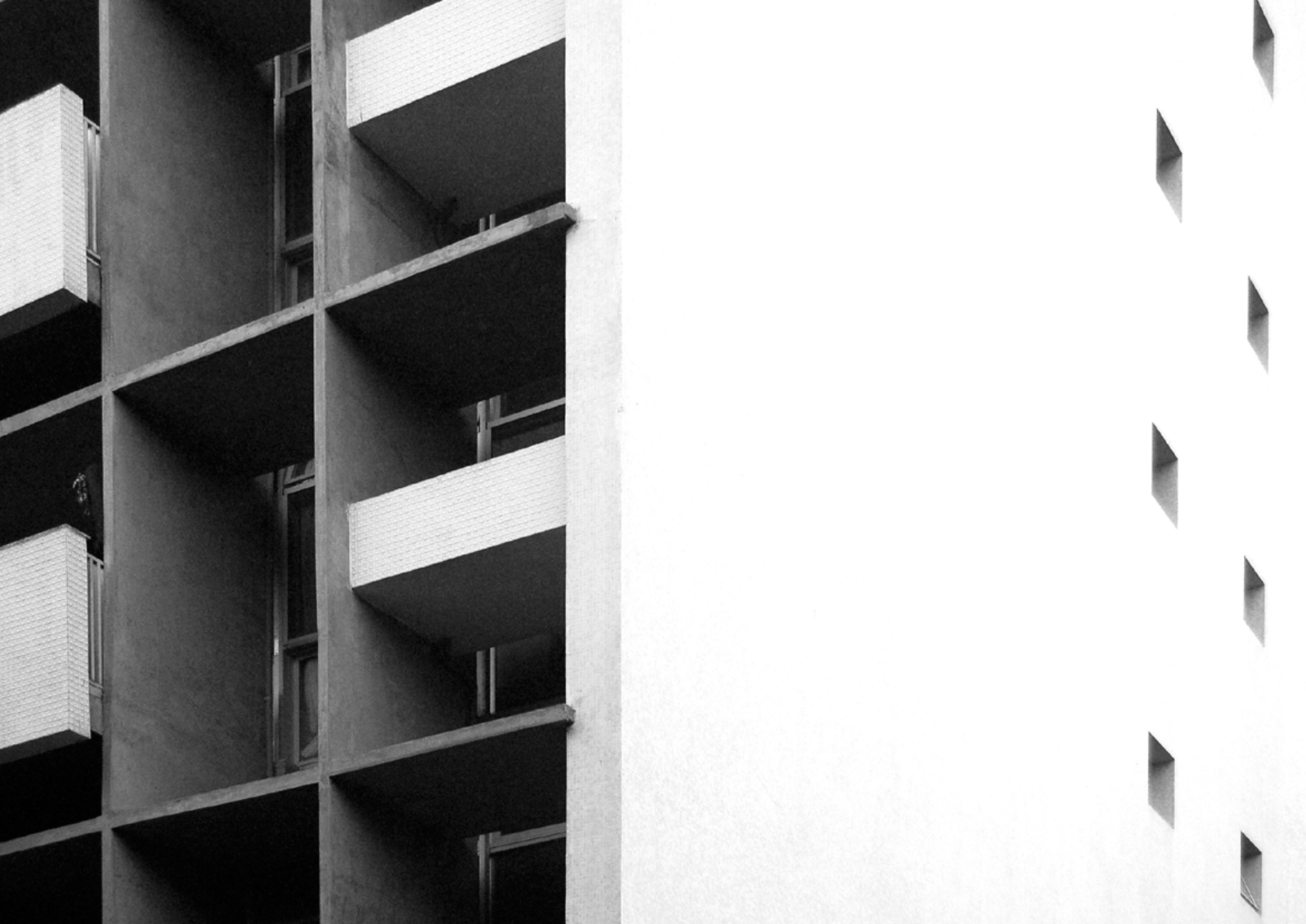 Capa: detalhe da fachada do bloco tipo AM-3 (SQS 312, bloco F)