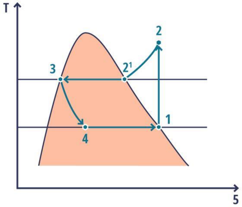 AOL 02 – SISTEMAS TÉRMICOS E FLUIDOMECÂNICOS 1. OS FLUIDOS DE TRABALHO EM CICLOS TERMODINÂMICOS SÃO OS QUE PERMITEM EFETUAR AS TROCAS DE CALOR ENTRE O SISTEMA E O AMBIENTE, OU ENTRE OS RESERVATÓRIOS, CONFORME A NECESSIDADE. OS FLUIDOS DE TRABALHO POSSUEM GRANDE DIVERSIDADE, SENDO CLASSIFICADOS DE ACORDO COM SUAS CARACTERÍSTICAS E PROPRIEDADES TERMODINÂMICAS. VEJA UM FLUIDO DE TRABALHO REPRESENTADO PELO DIAGRAMA A SEGUIR: CONSIDERANDO ESSAS INFORMAÇÕES E O CONTEÚDO ESTUDADO SOBRE OS CICLOS DE REFRIGERAÇÃO, É CORRETO AFIRMAR QUE O COEFICIENTE DE DESEMPENHO DESSE CICLO PODERÁ SER CALCULADO POR: A. 1 E 2’, SOMENTE. B. 1, 2 E 2’, SOMENTE. C. 1, 2, 2’, 3 E 4. D. 1 E 2, SOMENTE. E. 1, 2 E 4, SOMENTE. (CORRETA) 2. SABE-SE QUE A FORMA DE MEDIR A EFICIÊNCIA DE UM SISTEMA DE REFRIGERAÇÃO É ATRAVÉS DE SEU COEFICIENTE DE EFICÁCIA. ESTE É DEFINIDO COMO A RAZÃO ENTRE A QUANTIDADE DE CALOR RETIRADO E O TRABALHO REALIZADO. SISTEMAS OPERANDO EM CICLO DE CARNOT SEMPRE APRESENTARÃO EFICIÊNCIA MAIOR DO QUE SISTEMA QUE ESTEJAM OPERANDO EM CICLOS REAIS. ASSIM SENDO, CONSIDEREMOS UM CICLO DE REFRIGERAÇÃO QUE OPERE EM CICLO DE CARNOT. IMAGINE QUE ESSE CICLO OPERA ENTRE AS TEMPERATURAS QUENTE E FRIA, RESPECTIVAMENTE, DE 27ºC E 0º C. CONSIDERANDO ESSAS INFORMAÇÕES E OS CONTEÚDOS ESTUDADOS SOBRE O CICLO DE CARNOT E OS CICLOS DE REFRIGERAÇÃO, É CORRETO AFIRMAR QUE O VALOR DA EFICIÊNCIA DE CARNOT DO CICLO APRESENTADO SERÁ EQUIVALENTE A: A. 12,15. B. 7,5. C. 10,11. (CORRETA) D. 8,5. E. 16,25. 3. A FIGURA A SEGUIR APRESENTA O CICLO TEÓRICO DE REFRIGERAÇÃO POR COMPRESSÃO DE VAPOR. SENDO O MAIS UTILIZADO EM EQUIPAMENTOS FRIGORÍFICOS PARA “PRODUÇÃO” DE FRIO, OU SEJA, REDUÇÃO DA TEMPERATURA NO INTERIOR DE DETERMINADO RECIPIENTE OU AMBIENTE. NORMALMENTE, O PROCESSO DE TROCA DE CALOR OCORRE POR INTERMÉDIO DO COMPONENTE CHAMADO DE EVAPORADOR, QUE RESFRIA O AR OU OUTRO FLUIDO QUE CIRCULA PELO RECIPIENTE OU AMBIENTE REFRIGERADO PELA AÇÃO DE UM ELEMENTO VENTILADOR. CONSIDERANDO ESSAS INFORMAÇÕES E OS CONTEÚDOS ESTUDADOS A RESPEITO DO CICLO DE REFRIGERAÇÃO POR COMPRESSÃO DE VAPOR, ANALISE AS AFIRMATIVAS A SEGUIR. I. O PROCESSO 1-2 OCORRE NO COMPRESSOR. TRATA-SE DE UM PROCESSO ISOTÉRMICO, OU SEJA, O FLUIDO É COMPRIMIDO PELO COMPRESSOR EM TEMPERATURA CONSTANTE. II. O PROCESSO 2-3 OCORRE NO CONDENSADOR. TRATA-SE DE UM PROCESSO DE REJEIÇÃO DE CALOR DO REFRIGERANTE PARA O MEIO EM PRESSÃO CONSTANTE. III. O PROCESSO 3-4 OCORRE NO CONDENSADOR. TRATA-SE DE UMA EXPANSÃO IRREVERSÍVEL À ENTALPIA CONSTANTE. IV. O PROCESSO 4-1 OCORRE É UM PROCESSO ISOBÁRICO, OU SEJA, TRATA-SE DE UM PROCESSO ONDE NÃO OCORRE VARIAÇÃO DE PRESSÃO. ESTÁ CORRETO O QUE SE AFIRMA APENAS EM: A. I E II. B. II E IV. (CORRETA) C. I E IV. D. II E III. E. III E IV. 4. CONHECENDO OS PROCESSOS QUE OCORREM QUANDO UM FLUIDO REFRIGERANTE ESTÁ EM CICLO TERMODINÂMICO (CICLO FRIGORÍFICO), CONSIDERE DETERMINADO SISTEMA DE REFRIGERAÇÃO QUE OPERA EM UM CICLO ONDE O FLUIDO REFRIGERANTE ENTRA NO COMPRESSOR COM ENTALPIA DE 100 KJ/KG E, SENDO COMPRIDO, ATINGE ENTALPIA DE 120 KJ/KG. ESSE FLUIDO, APÓS SATURAÇÃO, TEM SUA ENTALPIA DIMINUÍDA PARA 50 KJ/KG. NESSE PROCESSO, ELE NÃO TROCA CALOR COM O COMPRESSOR NEM COM A VÁLVULA DE EXPANSÃO. CONSIDERANDO ESSAS INFORMAÇÕES E OS CONTEÚDOS ESTUDADOS SOBRE OS CICLOS FRIGORÍFICOS, É CORRETO AFIRMAR QUE O COEFICIENTE DE PERFORMANCE DESSE SISTEMA É: A. 3,5. B. 2,5. (CORRETA) C. 4,5. D. 4,0. E. 1,5. 5. É PRAXE DAS CIÊNCIAS EXATAS UTILIZAR SISTEMAS IDEAIS PARA, A PARTIR DELES, DESENVOLVER ESTUDO, PREVISÃO E MODELAGEM DE SISTEMAS REAIS. QUANDO SE TRATA DE CICLOS TERMODINÂMICOS OU FRIGORÍFICOS, UM DOS MAIS COMUNS É O CICLO DE CARNOT. ESSE CICLO OPERA ENTRE DUAS TEMPERATURAS, APRESENTANDO A MAIOR EFICIÊNCIA. ESSE FATO IMPLICA QUE QUALQUER CICLO REAL OPERANDO ENTRE OS MESMOS NÍVEIS DO CICLO DE CARNOT APRESENTARÁ EFICIÊNCIA MENOR QUE ELE. O DIAGRAMA A SEGUIR APRESENTA O CICLO DE CARNOT DE UM MOTOR A VAPOR: FONTE: BOETTNER, DAISIE D.; MORAN, MICHAEL J.; SHAPIRO, HOWARD N. FUNDAMENTALS OF ENGINEERING THERMODYNAMICS: SI VERSION. 5. ED. NOVA JERSEY: WILEY, 2014, P.455. (ADAPTADO). CONSIDERANDO ESSAS INFORMAÇÕES E OS CONTEÚDOS ESTUDADOS SOBRE A TEORIA DO CICLO DE CARNOT, PODE-SE AFIRMAR QUE: A. O CICLO DE CARNOT SE APRESENTA COMO ALTERNATIVA VIÁVEL PARA ANÁLISE E/OU ESTUDO DE SISTEMAS TÉRMICOS, POIS TRATA – SE DE UMA SITUAÇÃO BASTANTE ESPECÍFICA, EM QUE UM SISTEMA OPERA ENTRE DUAS TEMPERATURAS, SEM NENHUM TIPO DE PERDA. B. O RENDIMENTO DE MÁQUINAS TÉRMICAS EM CICLOS DE CARNOT É SEMPRE INFERIOR AO RENDIMENTO DE MÁQUINAS EM CONDIÇÕES REAIS, ISSO SE DEVE AO FATO DO CICLO DE CARNOT NÃO EXISTIR, DE FATO, EM SITUAÇÕES PRÁTICAS. C. O PROCESSO 1-2 É UM PROCESSO EM PRESSÃO CONSTANTE, O QUE SE DEVE PELO FATO DE O FLUIDO DE TRABALHO ESTAR, NESSE PROCESSO NA CONDIÇÃO DE VAPOR SUPERSATURADO. D. O TRABALHO REALIZADO PELO CICLO DE CARNOT É A DIFERENÇA ETRE A QUANTIDADE DE CALOR OBTIDO DA FONTE QUENTE E A QUANTIDADE DE CALOR TROCADA COM A FONTE FRIA EM MÓDULO. (CORRETA) E. O PROCESSO 2-3 É UM PROCESSO ISOVOLUMÉTRICO OU ISOCÓRICO, OU SEJA, NÃO EXISTE, NESSE PROCESSO, VARIAÇÃO NO VOLUME DO FLUIDO. ISSO SE DEVE PELO FATO DO FLUIDO DE TRABALHO ESTAR NA CONDIÇÃO DE VAPOR. 6. EM UM CICLO DE REFRIGERAÇÃO, O OBJETIVO É A REMOÇÃO DE CALOR DO AMBIENTE A SER REFRIGERADO. UMA DAS FORMAS DE SE ACOMPANHAR A EFICIÊNCIA DESSE SISTEMA É CALCULANDO O COEFICIENTE DE PERFORMANCE, TAMBÉM CONHECIDO COMO COEFICIENTE DE DESEMPENHO. ASSIM, O COP (COEFICIENTE DE PERFORMANCE), PODE SER DEFINIDO COMO A RAZÃO ENTRE O CALOR RETIRADO E O TRABALHO REALIZADO. A FIGURA A SEGUIR APRESENTA O DIAGRAMA PRESSÃO-ENTALPIA DE UM CICLO DE REFRIGERAÇÃO. CONSIDERANDO ESSAS INFORMAÇÕES E OS CONTEÚDOS ESTUDADOS SOBRE O CICLO DE CARNOT E OS CICLOS DE REFRIGERAÇÃO, É CORRETO AFIRMAR QUE, BASEADO NO DIAGRAMA APRESENTADO, O COP SERIA CALCULADO POR: A. COP = H1 – H4 / H