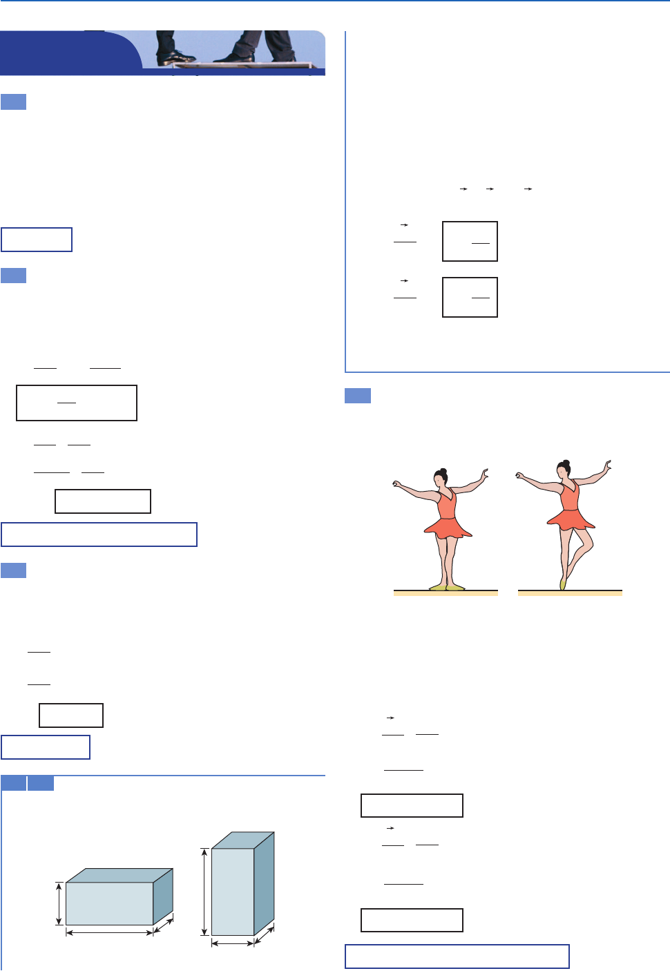 351Tópico 2 – Estática dos fl uídos 1 Em pressão e temperatura constantes, a massa específ ica de uma substância pura: a) é diretamente proporcional à massa considerada; b) é inversamente proporcional ao volume considerado; c) é constante somente para pequenas porções da substância; d) é calculada por meio do quociente da massa considerada pelo res- pectivo volume; e) pode ser medida em kgf/m3. Resposta: d 2 Num local em que a aceleração da gravidade tem intensidade 10 m/s2, 1,0 kg de água ocupa um volume de 1,0 L. Determine: a) a massa específ ica da água, em g/cm3; b) o peso específ ico da água, em N/m3. Resolução: a) µ = m V ⇒ µ = 1,0 kg 1,0 L µ = 1,0 kg L = 1,0 g/cm3 b) ρ = P V = m g V ρ = 1,0 · 10 10–3 = N m3 Donde : ρ = 1,0 · 104 N/m3 Respostas: a) 1,0 g/cm3; b) 1,0 · 104 N/m3 3 Nas mesmas condições de pressão e temperatura, as massas es- pecíf icas da água e da glicerina valem, respectivamente, 1,00 g/cm3 e 1,26 g/cm3. Nesse caso, qual a densidade da glicerina em relação à água? Resolução: d G,A = µ G µ A d G,A = 1,26 1,00 Donde : d G,A = 1,26 Resposta: 1,26 4 E.R. Um paralelepípedo de dimensões lineares respectiva- mente iguais a a, b e c (a > c) é apoiado sobre uma superfície hori- zontal, conforme representam as f iguras 1 e 2. a b c a c b Figura 2Figura 1 Sendo M a massa do paralelepípedo e g a intensidade da aceleração da gravidade, determine a pressão exercida por esse corpo sobre a superfície de apoio: a) no caso da f igura 1; b) no caso da f igura 2. Resolução: Em ambos os casos, a força normal de compressão exercida pelo pa- ralelepípedo sobre a superfície horizontal de apoio tem intensidade igual à do seu peso. |F n | = |P | ⇒ |F n | = M g a) p1 = |Fn| A 1 ⇒ p 1 = M g a b b) p2 = |Fn| A 2 ⇒ p2 = M g b c Nota: • Como a b > b c, temos p 1 < p 2 . 5 Uma bailarina de massa 60 kg dança num palco plano e hori- zontal. Na situação representada na f igura 1, a área de contato entre os seus pés e o solo vale 3,0 · 102 cm2, enquanto na situação representada na f igura 2 essa mesma área vale apenas 15 cm2. Figura 1 Figura 2 Adotando g = 10 m/s2, calcule a pressão exercida pelo corpo da baila- rina sobre o solo: a) na situação da f igura 1; b) na situação da f igura 2. Resolução: a) p 1 = |Fn 1| A 1 = m g A 1 p 1 = 60 · 10 3,0 · 10–2 (N/m2) p 1 = 2,0 · 104 N/m2 b) p 2 = |Fn 2| A 2 = m g A 2 p 2 = 60 · 10 15 · 10–4 (N/m2) p 2 = 4,0 · 105 N/m2 Respostas: a) 2,0 · 104 N/m2 ; b) 4,0 · 105 N/m2 Tópico 2 352 PARTE III – ESTÁTICA 6 (Fuvest-SP) Os chamados “Buracos negros”, de elevada densida- de, seriam regiões do Universo capazes de absorver matéria, que pas- saria a ter a densidade desses Buracos. Se a Terra, com massa da ordem de 1027 g, fosse absorvida por um “Buraco negro” de densidade igual a 1024 g/cm3, ocuparia um volume comparável ao: a) de um nêutron. d) da Lua. b) de uma gota d’água. e) do Sol. c) de uma bola de futebol. Resolução: µ T = µ B ⇒ m T v T = µ B 1027 v T = 1024 ⇒ v T = 103 cm3 ou vT = 1,0 L ∴ ocuparia o volume comparável ao de uma bola de futebol. Resposta: c 7 E.R. Um volume V A de um líquido A é misturado com um vo- lume V B de um líquido B. Sejam µ A e µ B as massas específ icas dos líquidos A e B. Desprezando qualquer contração do volume no siste- ma e supondo que os líquidos A e B são miscíveis, determine a massa específ ica µ da mistura. Resolução: µ = m total V total ⇒ µ = m A + m B V A + V B (I) Em que: µ A = m A V A ⇒ m A = µ A V A (II) µ B = m B V B ⇒ m B = µ B V B (III) Substituindo (II) e (III) em (I), vem: µ = µ A V A + µ B V B V A + V B Nota: • No caso particular em que V A = V B , teremos: µ = µ A + µ B 2 8 (UEL-PR) As densidades de dois líquidos A e B, que não reagem quimicamente entre si, são d A = 0,80 g/cm3 e d B = 1,2 g/cm3, respecti- vamente. Fazendo-se a adição de volumes iguais dos dois líquidos, ob- tém-se uma mistura cuja densidade é x. Adicionando-se massas iguais de A e de B, a mistura obtida tem densidade y. Os valores de x e y, em g/cm3, são, respectivamente, mais próximos de: a) 1,1 e 1,1. c) 1,0 e 0,96. e) 0,96 e 0,96. b) 1,0 e 1,1. d) 0,96 e 1,0. Resolução: x = d A V + d B V V + V = d A + d B 2 (média aritmética) x = 0,80 + 1,2 2 g cm3 ⇒ x = 1,0 g/cm3 y = m + m m d A + md B = 2d A d B d A + d B (média harmônica) y = 2 · 0,80 · 1,2 0,80 + 1,2 g cm3 ⇒ y = 0,96 g/cm3 Resposta: c 9 (UEL-PR) Um recipiente, quando completamente cheio de álcool (massa específ ica de 0,80 g/cm3), apresenta massa de 30 g e, quando completamente cheio de água (massa específ ica de 1,0 g/cm3), apre- senta massa de 35 g. Qual a capacidade do recipiente em cm3? Resolução: 30 = m r + µ álcool V r ⇒ 30 = m r + 0,80V r (I) 35 = m r + µ água V r ⇒ 35 = m r + 1,0V r (II) (II) – (I): 5,0 = 0,20V r ⇒ Vr = 25 cm 3 Resposta: 25 cm3 10 Um cubo, feito de material rígido e poroso, tem densidade igual a 0,40 g/cm3. Quando mergulhado em água, e após absorver todo o líquido possível, sua densidade passa a ser de 1,2 g/cm3. Sendo M a massa do cubo quando seco e M’ a massa de água que ele absorve, responda: qual é a relação entre M e M’? (Considere que o volume do cubo não se altera após absorver o líquido.) Resolução: µ = M V ⇒ 0,40 = M V µ‘ = M + M’ V ⇒ 1,2 = M + M’ V 0,40 1,2 = M M + M’ M M’ = 1 2 Donde : Resposta: 1 2 11 Com uma faca bem af iada, um açougueiro consegue tirar bifes de uma peça de carne com relativa facilidade. Com essa mesma faca “cega” e com o mesmo esforço, entretanto, a tarefa f ica mais difícil. A melhor explicação para o fato é que: a) a faca af iada exerce sobre a carne uma pressão menor que a exerci- da pela faca “cega”; b) a faca af iada exerce sobre a carne uma pressão maior que a exerci- da pela faca “cega”; c) o coef iciente de atrito cinético entre a faca af iada e a carne é menor que o c