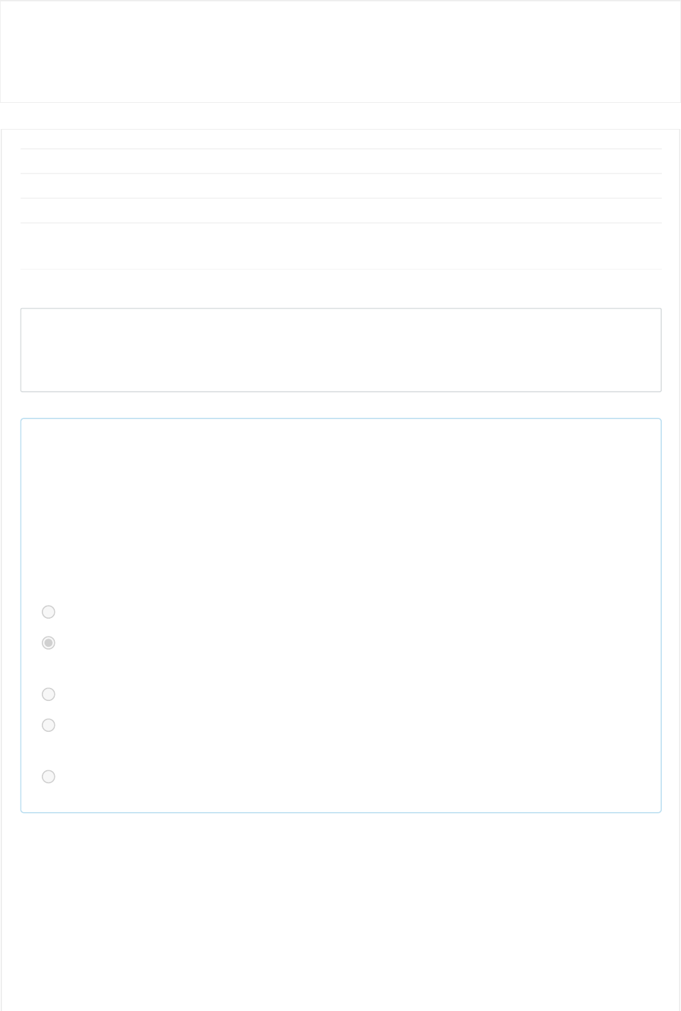 04/03/2023, 16:42 ATIVIDADE ONLINE 2 - AV22023/1 https://moodle.ead.unifcv.edu.br/mod/quiz/review.php?attempt=2305130 1/7 Painel / Meus cursos / Matemática Financeira / AVALIAÇÕES DO PERÍODO 2023/1 / ATIVIDADE ONLINE 2 - AV22023/1 Iniciado em sábado, 4 mar 2023, 16:00 Estado Finalizada Concluída em sábado, 4 mar 2023, 16:42 Tempo empregado 41 minutos 16 segundos Avaliar 1,60 de um máximo de 2,00(80%) Questão 1 Incorreto Atingiu 0,00 de 0,20 A empresa Maria Helen emitiu R$600.000,00 em notas promissórias por 6 meses (180 dias). Além disso, sabe-se que calculando com descontos e outras despesas, a empresa possui um valor líquido recebido de R$582.000,00. Calcule o custo efeito mensal da empresa de Maria Helen: Escolha uma opção: a. 0,20% a.m. b. 0,43%a.m. c. 0,64% a.m. d. 0,50%a.m. e. 0,09% a.m. https://moodle.ead.unifcv.edu.br/my/ https://moodle.ead.unifcv.edu.br/course/view.php?id=520 https://moodle.ead.unifcv.edu.br/course/view.php?id=520#section-6 https://moodle.ead.unifcv.edu.br/mod/quiz/view.php?id=42221 04/03/2023, 16:42 ATIVIDADE ONLINE 2 - AV22023/1 https://moodle.ead.unifcv.edu.br/mod/quiz/review.php?attempt=2305130 2/7 Questão 2 Correto Atingiu 0,20 de 0,20 Um centro de estatística regional de Maringá resolveu realizar uma pesquisa da taxa de inflação dos últimos três meses e obteve o resultado de 1,1%, 1,3% e 1%. Qual será a taxa de inflação trimestral apresentada em Maringá? Escolha uma opção: a. 4,5% b. 3,43% c. 3% d. 1% e. 2,33% Questão 3 Correto Atingiu 0,20 de 0,20 Maria Helena decidiu comprar alguns móveis para sua casa nova, a mesma optou por 16 pagamentos iguais e consecutivos de R$ 820,00 em uma taxa de juros de 0,77% a.m. Conforme as informações, qual será o valor presente de Maria Helena? Escolha uma opção: a. R$ 16.998,99 b. R$ 11,199,98 c. R$ 10.000,00 d. R$ 12.299,56 e. R$ 17.524,22 04/03/2023, 16:42 ATIVIDADE ONLINE 2 - AV22023/1 https://moodle.ead.unifcv.edu.br/mod/quiz/review.php?attempt=2305130 3/7 Questão 4 Incorreto Atingiu 0,00 de 0,20 Laila está com dificuldades para calcular seu Fluxo de Caixa (VPL), você se dispôs a ajuda-la. Observe as tabelas abaixo e assinale a alternativa correta do VPL a uma taxa efetiva de 6,2% ao ano. ANO INVESTIMENTO 0 R$ -520.000,00 1 R$ 100.000,00 2 R$ 150.000,00 3 R$ 250.000,00 4 R$ 300.000,00 TAXA EFETIVA 6,2% VPL Escolha uma opção: a. R$ 204.853,74 b. R$ 151.723,32 c. R$ 185.496,31 d. R$ 139.203,46 e. R$ 125.879,98 04/03/2023, 16:42 ATIVIDADE ONLINE 2 - AV22023/1 https://moodle.ead.unifcv.edu.br/mod/quiz/review.php?attempt=2305130 4/7 Questão 5 Correto Atingiu 0,20 de 0,20 Como uma forma de aprimorar os conhecimentos matemáticos da população brasileira, o Governo Federal teve o ENEF lançado em agosto de 2011 em uma entrevista coletiva do presidente da CONEF e dos seus membros. Disponibilizando materiais de estudos, e outros. Como estudamos, qual o nome do aplicativo criado e utilizado no projeto ENEF para informações da matemática financeira? Escolha uma opção: a. Poupando b. Vida Financeira c. Contando d. Tá osso e. Economize Questão 6 Correto Atingiu 0,20 de 0,20 Em uma estratégia de compras e venda a prazo, Maria ao adquirir um lote de sabonetes no valor de R$30.000,00, entrou em contato com o fornecedor para estabelecer os valores fixos de R$20.000,00 com o prazo de 30 dias, chegando a oferecer um desconto de 10% caso ocorra a vista. Qual será o valor do pagamento da compra com o desconto de 10%? Escolha uma opção: a. R$ 19.800,00 b. R$ 5.000,00 c. R$ 10.000,00 d. R$ 6.520,00 e. R$ 20.000,00 04/03/2023, 16:42 ATIVIDADE ONLINE 2 - AV22023/1 https://moodle.ead.unifcv.edu.br/mod/quiz/review.php?attempt=2305130 5/7 Questão 7 Correto Atingiu 0,20 de 0,20 Calcule o custo efetivo para o período de dois meses de uma determinada operação. Em que, tem-se a taxa de desconto bancário nominal a 4% ao mês, o IOF a 0,021% ao dia e um prazo de desconto de 60 dias. Escolha uma opção: a. 10,20% a.b b. 13,33% a.b c. 11% a.b d. 8,90% a.b e. 6,2% a.b Questão 8 Correto Atingiu 0,20 de 0,20 A empresa Azevedo Ferreira S.A emitiu R$ 3.000.000,00 em notas promissórias por 12 meses (360 dias). Isto posto, ao calcular os descontos e outras despesas, a empresa obteve um valor líquido recebido de R$ 2.972.000,00. Qual será o custo efeito mensal da empresa Azevedo Ferreira S.A? Escolha uma opção: a. 0,47% b. 0,02% c. 0,078% d. 0,35% e. 0,88% 04/03/2023, 16:42 ATIVIDADE ONLINE 2 - AV22023/1 https://moodle.ead.unifcv.edu.br/mod/quiz/review.php?attempt=2305130 6/7 Questão 9 Correto Atingiu 0,20 de 0,20 Ao estudarmos o fluxo de caixa, sabemos que o mesmo representa uma série de pagamentos ou de recebimentos em x período. Os fluxos de caixa podem ser realizados de inúmeras formas, periodicidades, valores e outras informações. Correspondente a isto, assinale a alternativa cujo representa o fluxo de caixa em um período de ocorrência: Escolha uma opção: a. Constantes. b. Limitados. c. Periódicos. d. Diferidos. e. Indefinidos. Questão 10 Correto Atingiu 0,20 de 0,20 Laika, país onde Maria Helena é rainha apresentou uma taxa de inflação nos últimos três períodos de 1,2%, 2,0% e 0,88%. Qual será a taxa de inflação trimestral apresentada em Laika? Escolha uma opção: a. 7,66% b. 5,20% c. 3% d. 4,13% e. 6,9% 04/03/2023, 16:42 ATIVIDADE ONLINE 2 - AV22023/1 https://moodle.ead.unifcv.edu.br/mod/quiz/review.php?attempt=2305130 7/7