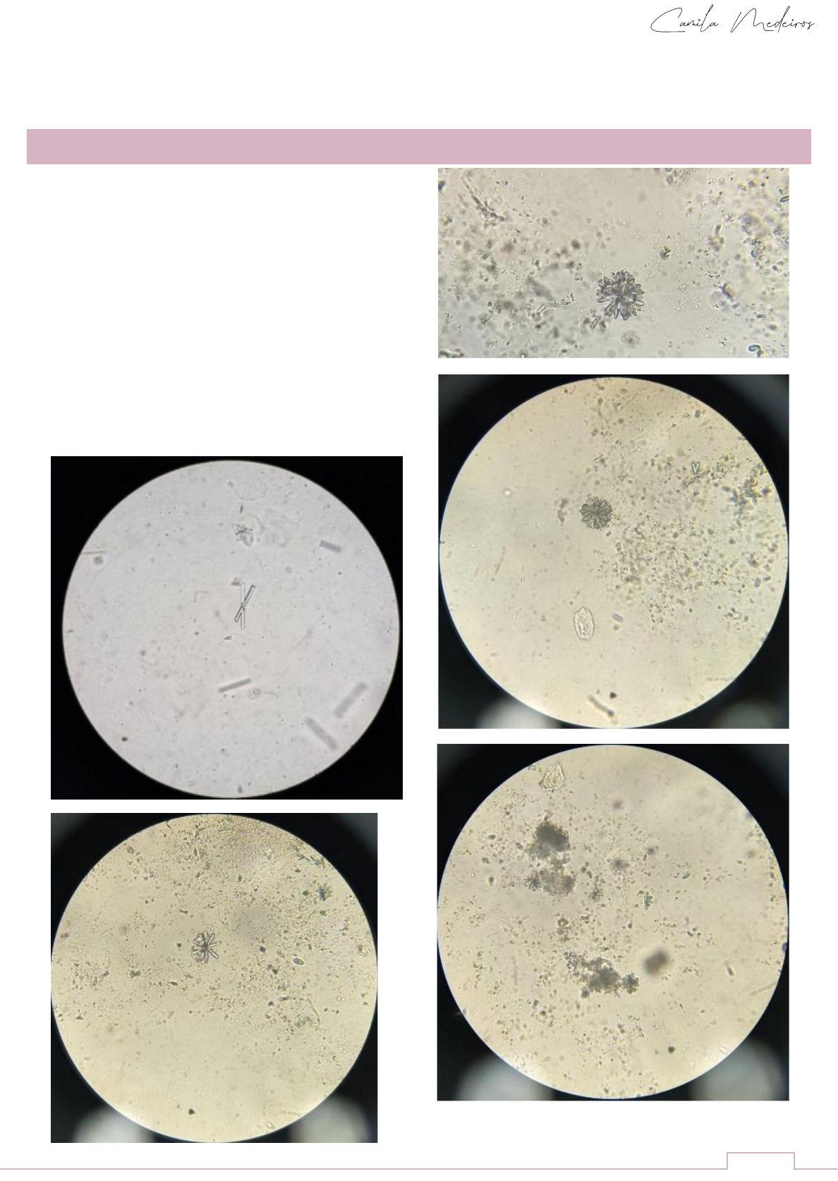 1 Os cristais de fosfato de cálcio são normais de urina alcalina e possuem conformação de prismas longos, incolores e que podem apresentar uma extremidade delgada. Esses cristais podem se reorganizar em forma de rosetas, estrelas, agulhas ou placas grandes e irregulares que podem flutuar na urina; Urina alcalina: é aquela que está fora do seu pH normal. Quando está tudo bem, ela costuma ter entre 5,5 e 7,5. Patologias: a presença desses cristais não existe importância clínica, apesar de o fosfato de cálcio ser um constituinte comum de cálculos renais. cristais de fosfato de cálcio URINALISE descrição 2