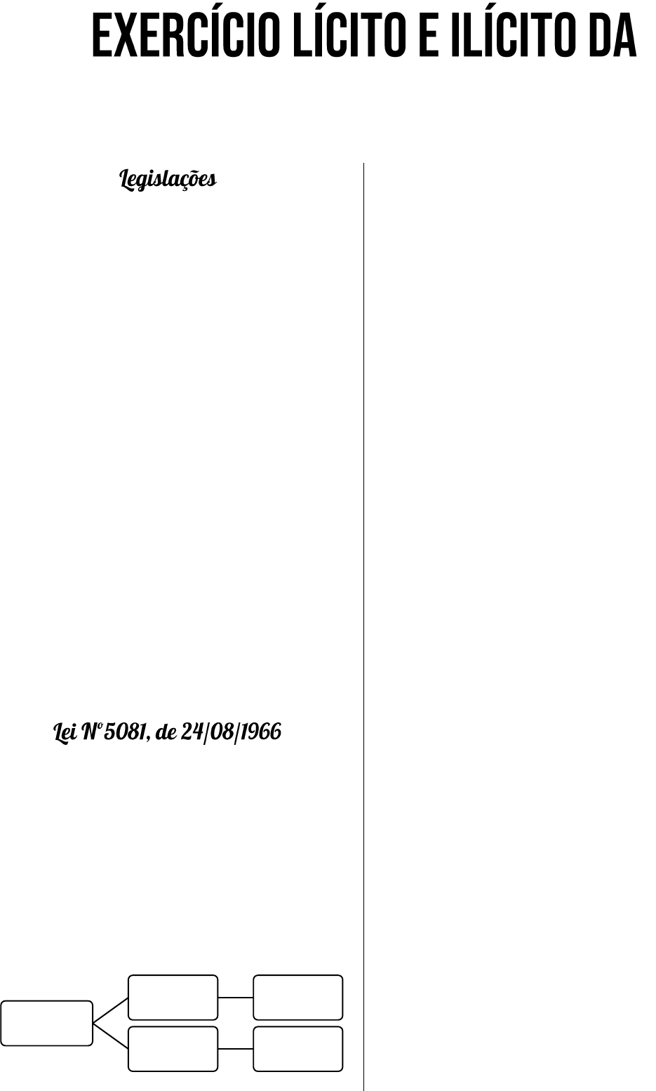 Odontologia Lei 5081, de 24 de agosto de 1966 – Regula o exercício da Odontologia em território brasileiro. Lei 4324, de 14 de abril de 1964 – Institui o Conselho Federal e os Conselhos Regionais de Odontologia; Resolução CFO-63/2005 – Consolidação das normas para procedimentos nos conselhos de Odontologia; Resolução CFO-118/2012 – Código de Ética Odontológica. Lei nº11889, de 24 de dezembro de 2008 – Regulamenta o exercício de ASB e TSB. Lei nº 6710, de 05 de novembro de 1979 – orienta o exercício do TPD; regulamentada pelo Decreto nº87689, de 11/10/1982, e Consolidação das Normas para Procedimentos nos Conselhos de Odontologia. OBS: o exercício de Auxiliar de Prótese Dentária não existe regulamentação. Regulamenta: └ Quais requisitos e quem pode exercer a Odontologia no Brasil; └ Competências do cirurgião dentista no exercício profissional; └ Vedações do cirurgião dentista no exercício profissional. ARTIGO 2º Tipos de inscrição no CRO: └ Principal: habilita ao exercício permanente da atividade na área da jurisdição do Conselho Regional respectivo; └ Provisória: para recém-formado; direito de exercer a profissão no prazo de 2 anos; └ Temporária: destina-se ao cirurgião- dentista estrangeiro com "visto temporário" ou "registro provisório", desde que não haja restrição ao exercício profissional no país; └ Secundária: permite que profissional exerça a profissão na jurisdição de outro Conselho Regional, além da sua região primária; └ Remida: profissional fica dispensado do pagamento das anuidades; para profissional com 70 anos de idade, que não tenha sofrido penalidades por infração ética. ARTIGO 6º Compete ao cirurgião-dentista: └ I – praticar todos os atos pertinentes a Odontologia, decorrentes de conhecimentos adquiridos em curso regular ou em cursos de pós-graduação; └ II – Prescrever e aplicar especialidades farmacêuticas de uso interno e externo, indicadas em Odontologia; └ III – Atestar, no setor de sua atividade profissional, estados mórbidos e outros, inclusive, para justificação de faltas ao emprego (Lei nº 6.125, de 1975); └ IV – Proceder à perícia odontolegal em fôro civil, criminal, trabalhista e em sede administrativa; Habilitação Profissional Diploma Legal Registro no Conselho └ V – Aplicar anestesia local e troncular; └ VI – Empregar a analgesia e a hipnose, desde que comprovadamente habilitado, quando constituírem meios eficazes para o tratamento; └ VII – Manter, anexo ao consultório, laboratório de prótese, aparelhagem e instalação adequadas para pesquisas e análise clínicas, relacionadas com os casos específicos de sua especialidade, bem como aparelhos de raio-X, para diagnóstico e aparelhagem de fisioterapia; └ VIII – Prescrever e aplicar medicação de urgência no caso de acidentes graves que comprometam a vida e a saúde do paciente; └ IX – Utilizar, no exercício da função de perito-odontológico, em casos de necropsia, as vias de acesso do pescoço e da cabeça. ARTIGO 7º É vedado ao cirurgião-dentista: a) Expor em público trabalhos odontológicos e usar de artifícios de propaganda para granjear clientela; b) Anunciar cura de determinadas doenças, para as quais não haja tratamento eficaz; c) Exercício de mais de duas especialidades; d) Consultas mediante correspondência, rádio, televisão ou meios semelhantes; e) Prestação de serviço gratuito em consultórios particulares; f) Divulgar benefícios recebidos de clientes; g) Anunciar preços de serviços, modalidades de pagamentos e outras formas de comercialização da clínica que signifiquem competição desleal. OBS: os itens A e C são vedados pela Lei, porém existem resoluções publicadas do Conselho Federal de Odontologia que as permitem; Para se habilitar como Técnico em Saúde Bucal: └ Deve ser portador de diploma ou certificado que atenda as normas do Ministério da Educação e, na ausência destas, em ato normativo específico do Conselho Federal de Odontologia; └ Portador de diploma ou certificado expedido por escola estrangeira, devidamente revalidado. Curso de TSB: └ Deverá ter duração de 1200 horas, no mínimo, incluindo a parte especial (matérias profissionalizantes e estágio); └ Ter concluído ensino médio; └ Disciplinas: promoção e prevenção da saúde bucal, anatomia e fisiologia bucal, biossegurança, equipamentos, materiais, medicamentos e instrumentais odontológicos e de higiene dental, entre outros. Competem ao Técnico em Saúde Bucal: └ Participar do treinamento e capacitação de ASB e de ações educativas atuando na promoção e prevenção da saúde; └ Participar de levantamentos e estudos epidemiológicos; └ Ensinar técnicas de higiene bucal e realizar aplicação tópica do flúor, conforme orientação do cirurgião- dentista; └ Fazer a remoção do biofilme, de acordo com a indicação técnica definida pelo cirurgião-dentista; └ Supervisionar, sob delegação do cirurgião-dentista, o trabalho dos ASB; └ Realizar fotografias e tomadas de uso odontológicos exclusivamente em consultórios ou clínicas odontológicas; └ Inserir e distribuir no preparo cavitário materiais odontológicos na restauração dentária direta, vedado o uso de materiais e instrumentos não indicados pelo cirurgião-dentista; └ Proceder à limpeza e à antissepsia do campo operatório, antes e após atos cirúrgicos; └ Remover suturas e realizar isolamento do campo operatório; └ Aplicar medidas de biossegurança no armazenamento, manuseio e descarte de produtos e resíduos odontológicos; └ Exercer todas as competências no âmbito hospitalar, bem como instrumentar o cirurgião-dentista em ambientes clínicos e hospitalares. É vedado ao Técnico em Saúde Bucal: └ Exercer a atividade de forma autônoma; └ Prestar assistência direta ou indireta ao paciente, sem a indispensável supervisão do cir
