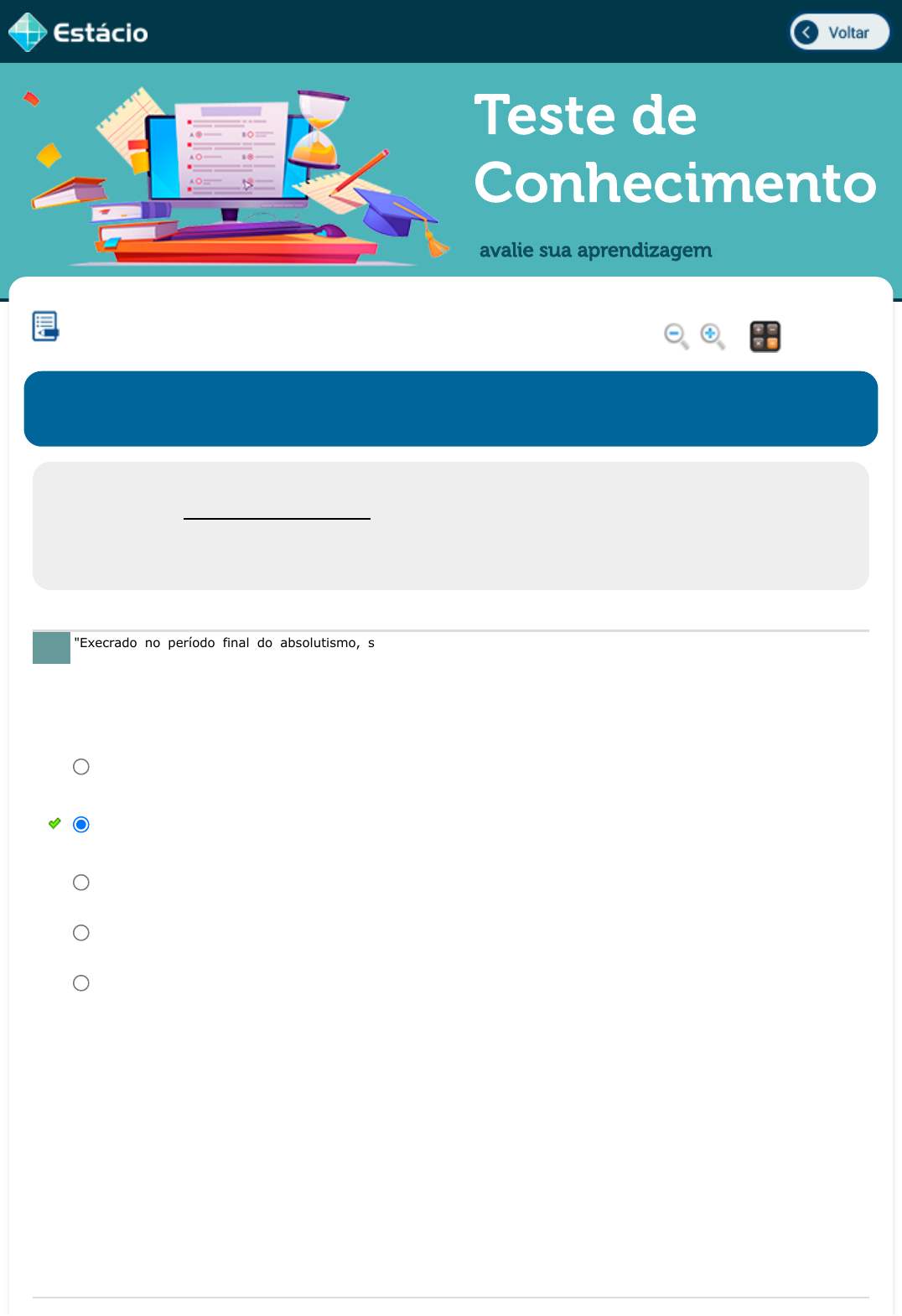 06/03/2023, 15:02 Estácio: Alunos https://simulado.estacio.br/alunos/ 1/3 Teste de Conhecimento avalie sua aprendizagem "Execrado no período final do absolutismo, suprimido até mesmo dos compêndios escolares, Pombal converteu-se em motivo de admiração para os políticos e pensadores liberais a partir da Revolução de 1820" (Falcon: 1993, 219) O Marquês de Pombal, ostentando seu valoroso título de nobreza, é conhecido na historiografia como um dos déspotas esclarecidos do seu tempo. No Brasil foi responsável pela expulsão dos Jesuítas e pela instauração das aulas régias. Mas, por que Pombal perseguiu os Jesuítas até extinção da Ordem Católica? HISTÓRIA DO BRASIL COLONIAL Lupa Calc. DGT0251_A8_202109186965_V1 Aluno: JEFFERSON ROBERTO GOMES DOS SANTOS Matr.: 202109186965 Disc.: HISTÓRIA DO BRASIL 2023.1 EAD (GT) / EX Prezado (a) Aluno(a), Você fará agora seu TESTE DE CONHECIMENTO! Lembre-se que este exercício é opcional, mas não valerá ponto para sua avaliação. O mesmo será composto de questões de múltipla escolha. Após responde cada questão, você terá acesso ao gabarito comentado e/ou à explicação da mesma. Aproveite para se familiarizar com este modelo de questões que será usado na sua AV e AVS. 1. Pombal era aliado incondicional de outras ordens católicas, que ficaram diminuídas em importância frente ao imenso prestigio que os Jesuítas tinham frente ao Papa. A partir daí Pombal foi impelido por seus aliados a acabar com os Jesuítas. Como um indivíduo influenciado por algumas práticas ilustradas, Pombal entendia que não havia mais espaço para o predomínio eclesiástico no Estado. Os Jesuítas em Portugal representavam este predomínio da Igreja nas ações do Estado. A expulsão dos Jesuítas do Brasil e de Portugal, alegando que preparavam um golpe para dominar o Brasil, tinha por fim abrir o Estado português a outras práticas e pensamentos mais modernos. A questão primordial para Pombal, frente aos Jesuítas, eram os índios. O marquês entendia que era essencial a atividade econômica da colônia a escravização dos indígenas e como o maior obstáculo a isto eram os Jesuítas tratou arquitetar um plano para expulsá-los do Brasil e de Portugal. O projeto de Pombal era tornar o Brasil independente e assumir o Reino, porém, via os jesuítas como um obstáculo intransponível, de forma, que usou os seus poderes no ministério para expulsá-los do Brasil e de Portugal. Mas não conseguiu levar a frente seu projeto de poder. Pombal, como um bom liberal, era visceralmente contra a Igreja Católica e atacava os Jesuítas, pois, sabia da importância da Ordem para o projeto de poder da Igreja, tanto que durante o seu período no ministério de D. José I, nenhum culto religioso era permitido. Explicação: No enunciado da questão, fica evidente de que o Marques de Pombal se aproveitava de seu título de nobreza, prestígio para alcançar seus objetivos visando aumentar o controle político, econômico e administrativo da metrópole sobre o Brasil e ainda usou de estratégias para expulsar os jesuítas de Portugal, do Brasil, garantindo ao Estado português a riqueza que antes pertencia à ordem, além de conseguir um afastamento entre Igreja e Estado, lembrando também que eles tinham o monopólio da educação e também das missões jesuítas. Enfim, o Marques de Pombal tinha por objetivo abrir o Estado português a outras práticas e pensamentos mais modernos. Portanto, a resposta D, atende a questão: Por que Pombal perseguiu os Jesuítas até extinção da Ordem Católica? javascript:voltar(); javascript:voltar(); javascript:diminui(); javascript:aumenta(); javascript:calculadora_on(); 06/03/2023, 15:02 Estácio: Alunos https://simulado.estacio.br/alunos/ 2/3 Assinale a alternativa correta relativa ao chamado "período pombalino". A influência iluminista chegou a Portugal na segunda metade do século XVIII através de Sebastião José de Carvalho e Melo, também conhecido como Marquês de Pombal, nomeado ministro pelo rei Dom José I. Sobre as medidas adotadas por Pombal, assinale a INCORRETA. A Companhia de Jesus, ordem religiosa que fez a catequese dos indígenas e foi responsável pela educação dos mesmos, acabou sendo expulsa do Brasil, durante o governo do Marquês de Pombal, século XVIII. Assinale a alternativa que mostre as razões pelas quais os jesuítas foram expulsos da colônia: 2. c) Em sua gestão, o Marques de Pombal conciliou os interesses da Igreja Católica com os iluministas através do fortalecimento da Universidade de Coimbra e da criação das aulas-régias. d) A expressão "santo do pau oco", atualmente usada para designar pessoas falsas, surgiu provavelmente em Minas Gerais no período da mineração e dizia respeito á prática do governo luso de transportar parte dos metais preciosos garimpados no Brasil em santos esculpidos em madeira oca e, posteriormente, recheados de ouro. e) A expulsão dos jesuítas de Portugal foi seguida pelos reinos da França e da Espanha mas foi significativamente criticada pelo papa Clemente XVI, o qual acreditava no papel missionário da ordem. a) As ideais iluministas chegaram ao Brasil colonial através do contrabando de livros e pela ação de jovens das elites coloniais que se uniam em irmandades que originaram movimentos como a Inconfidência Mineira. b) A gestão do ministro Marquês de Pombal em relação ao Brasil foi marcada pelo aumento da intervenção estatal na economia uma vez que foram adotadas medidas como criação das companhias do Grão-Pará e maranhão (1755), a cobrança anual de 1500 quilos de ouro, a expulsão dos jesuítas. Explicação: As ideais iluministas chegaram ao Brasil principalmente através de jovens da elite brasileira reunidos em universidades europeias e não através das irmandades, como sugere a opção A. Diferentemente do que sugere a opção C, não houve conciliação entre a Igreja e Pombal. O ¿santo do pau oco¿ era usado 