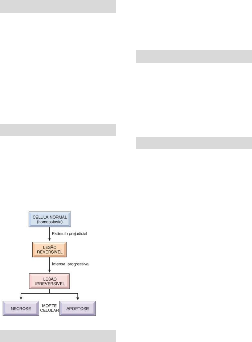 ALICE – MEDICINA – T4 INTRODUÇÃO À PATOLOGIA SEGUNDA PARTE ETIOLOGIA Refere-se às causas subjacentes e fatores responsáveis pelo início e progressão da doença. Atualmente, muitas doenças comuns são causadas por uma combinação de suscetibilidade genética hereditária e vários gatilhos ambientais. Elucidar os fatores genéticos e ambientais subjacentes às doenças é um tema importante da medicina moderna. PATOGENIA Refere-se aos mecanismos de progressão da doença, que explicam as alterações celulares e moleculares que originam as anormalidades funcionais e estruturas específicas que caracterizam determinada doença. CAUSAS DA LESÃO CELULAR • Hipoxia e isquemia; • Toxinas; • Agentes infecciosos; • Reações imunes; • Anormalidades genéticas; • Desequilíbrios nutricionais; • Agentes físicos; • Envelhecimento. LESÃO CELULAR REVERSÍVEL Os principais marcos da lesão reversível são a redução da fosforilação oxidativa, com consequente depleção do armazenamento de ATP e tumefação celular do retículo endoplasmático e da mitocôndria. MORTE CELULAR • Distúrbios graves, como a perda de oxigênio e suprimento de nutrientes e as ações de toxinas, causam uma forma de morte rápida e incontrolável que tem sido chamada de morte celular “acidental”. Tal manifestação morfológica é a necrose. • Em contraste, quando a lesão é menos grave ou as células precisam ser eliminadas durante os processos normais, ativam um conjunto meticuloso de vias moleculares que culminam com a morte. Como este tipo de morte pode ser manipulado por agentes terapêuticos ou mutações genéticas, descreve-se como morte celular “regulada”. O aspecto morfológico da maioria dos tipos de morte celular regulada é a apoptose. ALICE – MEDICINA – T4 NECROSE É uma forma de morte celular na qual as membranas se desintegram e as enzimas células extravasam e, por fim, digerem a célula. A necrose provoca uma reação local no hospedeiro, chamada inflamação, que é induzida por substâncias liberadas das células mortas e que serve para eliminar os vestígios de tecidos mortos e iniciar o processo de reparo subsequente. As enzimas responsáveis pela digestão da célula são derivadas dos lisossomos e podem ser provenientes das próprias células doentes e de leucócitos recrutados como parte da reação inflamatória. A necrose frequentemente é o ponto culminante da lesão celular reversível que não pode mais ser corrigida. PADRÕES MORFOLÓGICOS DE NECROSE TECIDUAL • Necrose de coagulação; • Necrose liquefativa (pus); • Necrose gangrenosa; • Necrose caseosa; • Necrose gordurosa (pancreatite – saponificação da gordura); • Necrose fibrinoide. APOPTOSE É uma via de morte celular na qual as células ativam enzimas que degradam o DNA nuclear das células, bem como as proteínas nucleares e citoplasmáticas. Os fragmentos das células apoptóticas, então, se separam, gerando a aparência responsável pelo nome. A membrana plasmática da célula apoptótica permanece intacta, mas é alterada de tal forma que os fragmentos, chamados corpos apoptóticos, se tornam altamente “comestíveis”, levando ao seu rápido consumo por fagócitos. AUTOFAGIA Refere-se à digestão lisossômica dos componentes da célula. Constitui um mecanismo de sobrevivência em períodos de privação de nutrientes, de modo que a célula em privação pode sobreviver digerindo o próprio conteúdo e reciclando-o para fornecer nutrientes e energia. Nesse processo, organelas intracelulares e porções do citosol são os primeiros a serem sequestrados para dentro de um vacúolo autofágico derivado de RE, cuja ALICE – MEDICINA – T4 formação é iniciada pelas proteínas citosólicas que detectam a privação de nutrientes. Em algumas circunstâncias, a autofagia pode estar associada à atrofia dos tecidos.