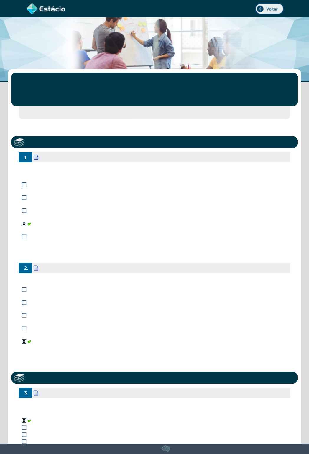 PAULA PARREIRA SILVA E ALVES 202002480858 Disciplina: GERENCIAMENTO DE PROJETOS AV Aluno: PAULA PARREIRA SILVA E ALVES 202002480858 Professor: GABRIEL RECH BAU Turma: 9001 DGT0031_AV_202002480858 (AG) 10/09/2022 19:30:43 (F) Avaliação: 8,0 Nota SIA: 10,0 pts ENSINEME: ANÁLISE DE RISCOS E QUALIDADE Ref.: 3990492 Pontos: 1,00 / 1,00 Na área da Qualidade, há conceitos importantes tais como Não Conformidade, Ação Preventiva e Ação Corretiva, então com base no que foi apresentado, é correto dizer que: Ações Corretivas e Preventivas só devem ser aplicadas caso haja a reprovação de um item pelo Cliente. Do contrário, não há necessidade, pois erros fazem parte da rotina de execução. Uma Não Conformidade deve ser sempre tratada por meio de uma Ação Corretiva pois assim será eliminado o Risco de que venha a se materializar. As Não conformidades, em geral, são apontadas indevidamente com base em uma interpretação equivocada por parte do Cliente. A Não Conformidade é exatamente o não atendimento a um requisito estabelecido por especificação, norma, regulamento ou outro que regule a atividade. As ações preventivas tratam de problemas reais, que podem trazer prejuízo ao projeto, por isto é importante identificar as suas causas raízes. Ref.: 3990484 Pontos: 1,00 / 1,00 Quando se fala nas falhas que dão causa aos riscos em Projetos. Qual a melhor definição nesse contexto? Adotando com base os dados históricos de custo estaria me assegurando que o Orçamento será preciso. Uma vez que tenha o escopo bem definido, estimativas precisas e premissas bem estabelecidas, posso dispensar as análises de Risco no Projeto. O detalhamento do Escopo é Contratual e assim não deve haver dúvidas do que deve ser entregue como Produto do Projeto. As indefinições, imprecisões, adições e mudanças de Escopo, por ocorrerem sempre, não deveriam ter relação com as falhas nos Projetos. As indefinições, imprecisões, adições ou mudanças de Escopo aumentam o nível dos Riscos sendo uma das principais causas de falhas nos Projetos. ENSINEME: GERENCIAMENTO DE CUSTOS E EQUIPE EM PROJETOS Ref.: 3991056 Pontos: 1,00 / 1,00 Qual das seguintes afirmativas estão relacionadas ao comportamento eficaz para um alto desempenho da equipe de projeto? Criar oportunidades para desenvolvimento das equipes. Deixar que os conflitos da equipe de projetos se resolvam por si só. Tomar decisões autocráticas sem ouvir a equipe de projetos. Fazer comunicações sucintas e sem muita relevância. Criar um ambiente em que todos trabalhem e não se relacionem no horário de trabalho. Educational Performace Solution EPS ® - Alunos EPS https://simulado.estacio.br/bdq_prova_resultado_aluno.asp?cod_hist_... 1 of 3 12/12/2022 12:43 Ref.: 3991059 Pontos: 1,00 / 1,00 O que são informações restritas? São informações que são divulgadas nas mídias (TV e Internet). São informações que não precisam ser protegidas. São informações acessadas apenas por alguns fornecedores da organização. São informações que são destinadas a um grupo específico dentro da organização. São informações que somente podem ser acessadas dentro da organização. ENSINEME: ORGANIZANDO O PROJETO NO TEMPO Ref.: 3990904 Pontos: 1,00 / 1,00 O projeto é um empreendimento que faz parte, consciente ou inconscientemente, do dia a dia de qualquer organização. A visão da empresa influenciará sensivelmente no sucesso do projeto. Acerca desse tema, assinale a alternativa correta. É temporário, pois é dividido em começo, meio e fim, com datas que determinam sua duração. Poderá começar sem um objetivo específico e, ao longo de seu desenvolvimento, a equipe definirá o que se pretende com ele. Para que haja a execução de um bom projeto, é necessário que ele nunca seja inédito, ou seja, quanto mais mudanças ocorrerem, mais desafiadora se tornará a gestão do projeto. Uma característica interessante sobre projeto é que ele não possui restrição de recursos, o que aumenta a qualidade de sua execução. Não poderá coexistir com nenhum outro projeto, pois perderá o foco nas execuções e consequentemente sua eficácia. Ref.: 3990906 Pontos: 1,00 / 1,00 A área de Gerenciamento da Integração do Projeto é composta pelos processos: I.iniciação, desenvolvimento do plano de projeto e controle integrado de mudanças. II. desenvolvimento do plano de projeto, execução do plano de projeto e controle integrado de mudanças. III. desenvolvimento do plano de projeto, iniciação e planejamento do escopo. IV.iniciação, planejamento do escopo e controle integrado de mudanças. É correto o que consta APENAS em: III IV I II e III II ENSINEME: PROJETO ÁGIL Ref.: 3990975 Pontos: 1,00 / 1,00 Qual dos papéis do Scrum abaixo assinalados é único papel com autoridade para cancelar uma sprint. Scrum Master Time de desenvolvimento Gerente Funcional Gerente de Projeto Product Owner Educational Performace Solution EPS ® - Alunos EPS https://simulado.estacio.br/bdq_prova_resultado_aluno.asp?cod_hist_... 2 of 3 12/12/2022 12:43 Ref.: 3990983 Pontos: 0,00 / 1,00 Selecione a sentença que não representa um valor do manifesto ágil. Siga seu plano à risca e defina um processo que não acate mudanças Em detrimento de muita documentação entregue software funcionando. O processo não é mais importante que as pessoas e suas relações. Indivíduos e interações mais que processos e ferramentas Priorize a relação com seu cliente ao invés de recorrer constantemente ao contrato. ENSINEME: PROJETO E A ORGANIZAÇÃO Ref.: 3990650 Pontos: 0,00 / 1,00 De acordo com o Guia PMBOK, o Escritório de Gerenciamento de Projetos (EGP) é uma estrutura organizacional. O EGP pode atuar como: Centro de excelência - elaborando metodologia; Centro de informações - definindo métricas. Centro de excelência - controlando e monitorando os projetos; Centro de informações - criando processos, documentos e templates; Centro de fi