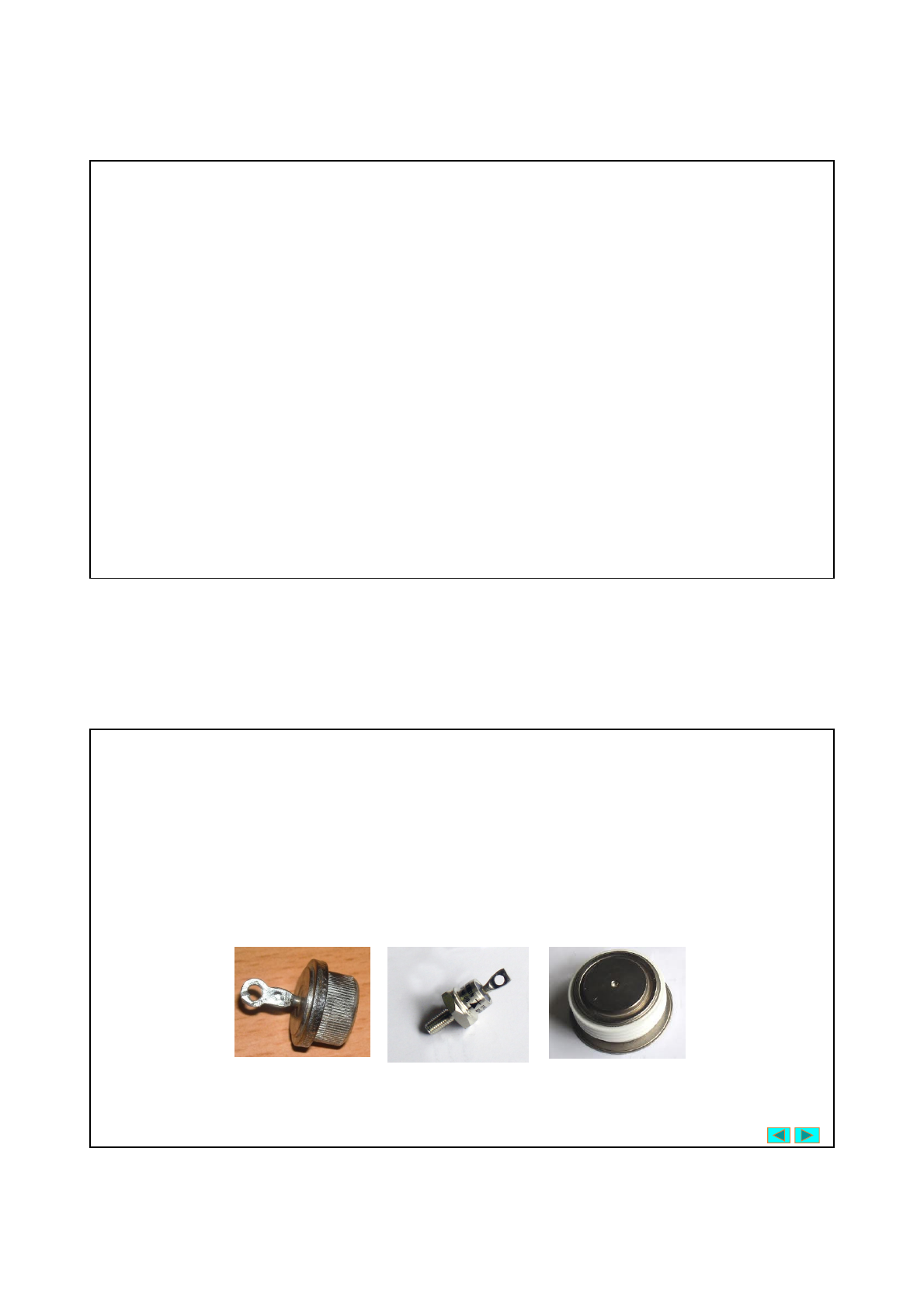 27/03/2019 Capítulo 2 Diodos semicondutores de potência Diodos semicondutores de potência 1 - Introdução Características: • Chave não controlada diretamente (chaveamento depende do circuito) • Maior capacidade de tensão reversa e corrente direta (quando comparados aos diodos de sinal) • Menor velocidade de resposta 27/03/2019 Diodos semicondutores de potência Fig. 2.2 Diodo de junção PN e seu símbolo Curva característica para polarização direta e reversa (curva estática) 2 – Curvas características dos diodos IDEAL REAL Fig. 2.1 Diodos semicondutores de potência 2 – Curvas características dos diodos v > 0 → Polarização direta (pequena queda de tensão) v < 0 → Polarização reversa (pequena corrente reversa (µA)) Pode ocorrer ruptura (Efeito zener ou avalanche) → v < - VZK ou -VBR )1( −= T D nV v SD eIi iD → corrente através do diodo vD → tensão do anodo em relação ao catodo IS → corrente de saturação reversa (10 -6 a 10-15A) n → fator de idealidade (entre 1 e 2) VT → tensão térmica: VT = kT/q q → carga do elétron (1,6x10-19C) T → temperatura em Kelvin k → constante de Boltzman (1,3806x10-23J/K) Para T = 298K (25oC) → VT ≈ 25,8mV Modelo → 27/03/2019 Diodos semicondutores de potência 2 – Curvas características dos diodos a) Região de polarização direta (vD > 0): Seja VTD a tensão de limiar (threshold, cut-in, turn-on) de aproximadamente 0,7V para diodo de silício. Também se utiliza o símbolo Vγ (tensão de joelho) • Para vD < VTD � iD é pequena (desprezível) • Para vD > VTD � diodo em condução plena T D T D nV v S nV v SD eIeIi ≅−= )1( Ex: Para vD = 0,1V, n = 1 e VT = 25,8mV iD = IS(48,23-1) ≈ 48,23IS (erro de 2,1%) Para vD>0.1V � iD>>IS, logo com erro menor que 2,1%. Diodos semicondutores de potência 2 – Curvas características dos diodos b) Região de polarização reversa (vD < 0): Para |vD| >> VT, que ocorre para vD < - 0,1V, tem-se onde IS é a corrente de saturação reversa. S nV v SD IeIi T D −≅−= )1( 27/03/2019 Diodos semicondutores de potência 2 – Curvas características dos diodos c) Região de ruptura (reversa): Para tensão reversa muito alta ( normalmente > 1000V) vD < - VBR (break-down voltage) ocorre condução plena com corrente muito sensível à tensão. Essa operação não é destrutiva se a limitação de corrente (pelo circuito externo ao diodo) não causar dissipação de potência no diodo além de certo limite especificado. Diodos semicondutores de potência 2 – Curvas características dos diodos Comparação com o diodo de sinal Diferenças básicas em relação ao diodo de sinal: • Tem-se a camada n- • A região de depleção no lado n fica confinada na região n- • A tensão de break down depende da dopagem da região n- • Para polarização direta com alta corrente uma resistência ôhmica mascara a curva exponencial 27/03/2019 Diodos semicondutores de potência 3 – Curvas características de recuperação reversa Diodo polarizado diretamente: • Corrente devida aos portadores minoritários injetados em ambos os lados da junção Ao se reverter a polarização: • As regiões devem ser descarregadas de seus portadores minoritários (isso leva um certo tempo) → Tempo de recuperação reversa Diodos semicondutores de potência Tempo de recuperação reversa 3 – Curvas características de recuperação reversa trr → de 0 a 25% de IRR trr = ta + tb Fator de suavidade (softness factor): SF=tb/ta ta → armazenamento de cargas na região depleção tb → armazenamento de cargas no material semicondutor - - Normalmente ta >> tb 27/03/2019 Diodos semicondutores de potência 3 – Curvas características de recuperação reversa trr depende da: • temperatura da junção • taxa de decaimento da corrente direta • corrente direta antes da comutação (IF). Pela figura tem-se pico de corrente: dt di tI aRR = Diodos semicondutores de potência 3 – Curvas características de recuperação reversa Carga de recuperação reversa: QRR (carga armazenada depende de IF) rrRRbRRaRRRR tItItIQ 2 1 2 1 2 1 =+≅ rr RR a t Q dt di t 2 = Se tb << ta → trr ≈ ta dt di QI RRRR 2= Obs. IRR, QRR e SF : especificações do fabricante rr RR RR t Q I 2 = dt di Q tt RR rra 2 = dt di Q t RR rr 2 = 27/03/2019 Diodos semicondutores de potência 3 – Curvas características de recuperação reversa Enquanto o diodo está reversamente polarizado tem-se a corrente de fuga. • Obs. Esta corrente depende de portadores minoritários gerados (termicamente) na região de depleção e fugas, propriamente ditas. Ao passar para a polarização direta surge o tempo de recuperação direta (forward recovery time): • devido ao processo de difusão dos portadores minoritários • a taxa de crescimento da corrente deve ser limitada, para não danificar o diodo. Ex: No caso da recuperação reversa: Se trr = 3 µseg e |di/dt| = 30 A/µseg, QRR = 135 µC e IRR = 90 A Diodos semicondutores de potência 4 - Tipos de diodos de potência Diodos padrão ou genéricos • Usados em retificadores e conversores de baixa frequência (até 1kHz) • trr da ordem de 25µs • Correntes de 1A a milhares de amperes e tensão reversa de 50V a 5kV Diodos de recuperação rápida • trr baixo, da ordem de 5µs • Corrente de 1A a centenas de amperes e tensão reversa de 50V a 3kV. Diodos Schottky • Com junção metal-semicondutor • Corrente devido a portadores majoritários • Tem apenas um efeito capacitivo próprio • Queda de tensão no sentido direto pequena • Maior corrente de fuga • Tensão reversa até 100V e correntes de 1 a 300A 27/03/2019 Diodos semicondutores de potência 6 - Diodos conectados em série – polarização reversa Necessidade: aumentar a capacidade de tensão de bloqueio reverso. Polarização direta: D1 e D2 c/ as mesmas correntes diretas (tensões diretas quase iguais) Polarização reversa: D1 e D2 c/ as mesmas correntes de fuga (-IS), mas c