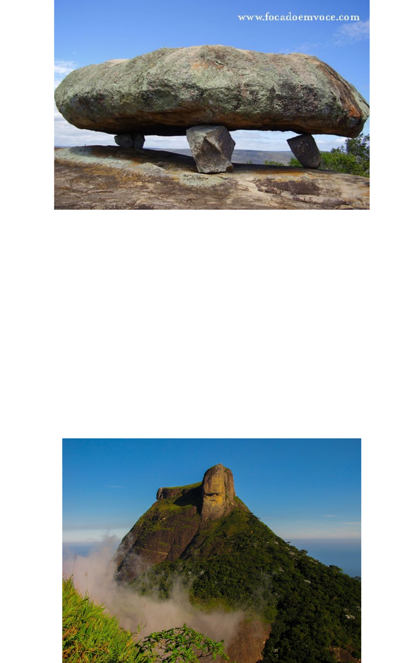 Principais monólitos do Brasil Segundo o dicionário monólito é uma estrutura geológica, como uma montanha, por exemplo, formado por uma única rocha exposta no terreno, resultante de milhões de anos de erosão. A palavra é derivada do latim, monolithus, que significa “pedra única”. Então, um exemplo: o Pão de Açúcar é um monólito. 1 - Pedra da Gávea é uma montanha monolítica na Floresta da Tijuca, no Rio de Janeiro, Brasil. Composta por granito e gneisse, a sua altitude é de 842 metros, tornando-se uma das montanhas mais altas do mundo junto de margens oceânicas. 2 - O Morro do Pão de Açúcar, possui 396 metros de altitude. O morro é constituído por um bloco único de gnaisse, granito com mais de seiscentos milhões de anos de idade. 3 - Pedra do Baú é um conjunto de rochas gnaissicas da Serra da Mantiqueira localizado no município de São Bento do Sapucaí, estado de São Paulo, Brasil. O ponto culminante é a Pedra do Baú, conhecido por abrigar algumas rotas de escalada esportiva. É formado pelo Bauzinho, Pedra do Baú e Ana Chata. 4 - Pedra da Galinha Choca é um dos mais conhecidos monólitos existentes no município de Quixadá, no Ceará, tendo seu nome derivado de sua curiosa forma. Está localizada a 5 km do centro da cidade. É um inselberg constituído de dioritos e granitos, que são rochas ígneas, ou seja, formadas a partir do resfriamento do magma.