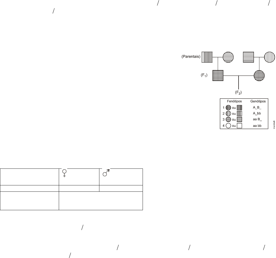 2ª Lei de Mendel – Lista 3 1. (Udesc 2016) Em uma espécie de inseto, o tamanho e a formação das asas são determinados geneticamente. O gene que “determina o tamanho das asas” (longas, curtas ou intermediárias) possui dois alelos sem relação de dominância entre si. O gene que determina o desenvolvimento das asas também possui dois alelos; o dominante determina o aparecimento das asas, o recessivo a ausência destas. Vários casais de insetos, duplo heterozigoto, são cruzados e obtém-se um total de 2048 descendentes. Assinale a alternativa que indica, deste total, o número esperado de insetos com asas intermediárias. a) 128 insetos b) 384 insetos c) 768 insetos d) 512 insetos e) 1024 insetos 2. (Uepg 2015) O alelo para a cor amarela da semente de ervilha é dominante sobre o alelo para cor de semente verde. Por sua vez, o alelo para formato da ervilha lisa é dominante sobre o alelo para formato rugoso. Do cruzamento entre plantas puras com semente lisa e amarela com plantas de semente verde e rugosa foi obtida a geração 1 (F1). Do intercruzamento de plantas da geração 1 (F1) foi obtida a geração 2 (F2). Com relação às proporções genotípicas e fenotípicas esperadas nas gerações F1 e F2, assinale o que for correto. 01) A proporção fenotípica da geração 1 (F1) é de 50% de plantas lisas e amarelas e 50% de plantas rugosas e verdes. 02) Na geração F2 é esperada uma proporção fenotípica de 9 16 lisas e amarelas, 3 16 lisas e verdes, 3 16 rugosas e lisas e 1 16 rugosas e verdes. 04) A proporção genotípica da geração 2 (F2) é de 25% homozigotas dominantes, 50% heterozigotas e 25% homozigotas recessivas. 08) O genótipo das plantas rugosas e verdes é sempre duplo dominante. 16) Para a geração F1 são esperadas que todas as plantas possuam genótipo duplo heterozigoto (100% di-híbrida). 3. (Fgv 2015) Analise o heredograma que ilustra a transmissão de duas características genéticas, cada uma condicionada por um par de alelos autossômicos com dominância simples. Admitindo que todos os indivíduos da geração parental são duplo homozigotos, e que foram gerados em 2(F ) cerca de cem descendentes, é correto afirmar que a proporção esperada para os fenótipos 1, 2, 3 e 4, respectivamente, é de a) 3:1:3:1. b) 9:3:3:1. c) 1:1:1:1. d) 3:3:1:1. e) 1:3:3:1. 4. (Uepg 2015) A tabela (xadrez mendeliano) abaixo apresenta parte da resolução de um problema sobre diibridismo ou segunda lei de Mendel. Nesta, uma fêmea de porquinho-da-índia, de pelo curto e preto, heterozigota para as duas característica é cruzada com um macho de pelo curto (heterozigoto) e branco. Resolva e analise os resultados deste cruzamento na tabela, encontre as proporções genotípicas e fenotípicas e assinale o que for correto. Genótipo dos pais LlBb Curto e preto Llbb Curto e branco Gametas LB, lb, Lb, lB Lb, lb Descendentes Proporção genotípica Proporção fenotípica 01) Neste cruzamento são esperados 25% dos descendentes de pelo branco. 02) Uma proporção esperada de 9 16 indivíduos é encontrada para pelo curto e preto neste cruzamento. 04) Este cruzamento mostra que pelo preto tem dominância incompleta em relação a pelo curto. 08) Neste cruzamento, as características pelo longo e pelo branco são recessivas. 16) A proporção fenotípica deste cruzamento é 3 8 de pelos curtos e pretos, 3 8 de pelos curtos e brancos, 1 8 de pelos longos e pretos e, 1 8 de pelos longos e brancos. 5. (Enem PPL 2013) A mosca Drosophila, conhecida como mosca-das-frutas, é bastante estudada no meio acadêmico pelos geneticistas. Dois caracteres estão entre os mais estudados: tamanho da asa e cor do corpo, cada um condicionado por gene autossômico. Em se tratando do tamanho da asa, a característica asa vestigial é recessiva e a característica asa longa, dominante. Em relação à cor do indivíduo, a coloração cinza é recessiva e a cor preta, dominante. Em um experimento, foi realizado um cruzamento entre indivíduos heterozigotos para os dois caracteres, do qual foram geradas 288 moscas. Dessas, qual é a quantidade esperada de moscas que apresentam o mesmo fenótipo dos indivíduos parentais? a) 288 b) 162 c) 108 d) 72 e) 54 6. (Fuvest 2012) Em tomates, a característica planta alta é dominante em relação à característica planta anã e a cor vermelha do fruto é dominante em relação à cor amarela. Um agricultor cruzou duas linhagens puras: planta alta/fruto vermelho x planta anã/fruto amarelo. Interessado em obter uma linhagem de plantas anãs com frutos vermelhos, deixou que os descendentes dessas plantas cruzassem entre si, obtendo 320 novas plantas. O número esperado de plantas com o fenótipo desejado pelo agricultor e as plantas que ele deve utilizar nos próximos cruzamentos, para que os descendentes apresentem sempre as características desejadas (plantas anãs com frutos vermelhos), estão corretamente indicados em: a) 16; plantas homozigóticas em relação às duas características. b) 48; plantas homozigóticas em relação às duas características. c) 48; plantas heterozigóticas em relação às duas características. d) 60; plantas heterozigóticas em relação às duas características. e) 60; plantas homozigóticas em relação às duas características. 7. (Mackenzie 2011) A fibrose cística e a miopia são causadas por genes autossômicos recessivos. Uma mulher míope e normal para fibrose cística casa-se com um homem normal para ambas as características, filho de pai míope. A primeira criança nascida foi uma menina de visão normal, mas com fibrose. A probabilidade de o casal ter outra menina normal para ambas as características é de a) 3/8. b) 1/4. c) 3/16. d) 3/4. e) 1/8. 8. (G1 - uftpr 2008) Na espécie humana existem várias características cuja herança provém de um par de alelos com relação de dominância completa. Na forma do lobo da orelha o alelo dominante é responsável pelo lobo solto e o alelo recessivo pelo lo