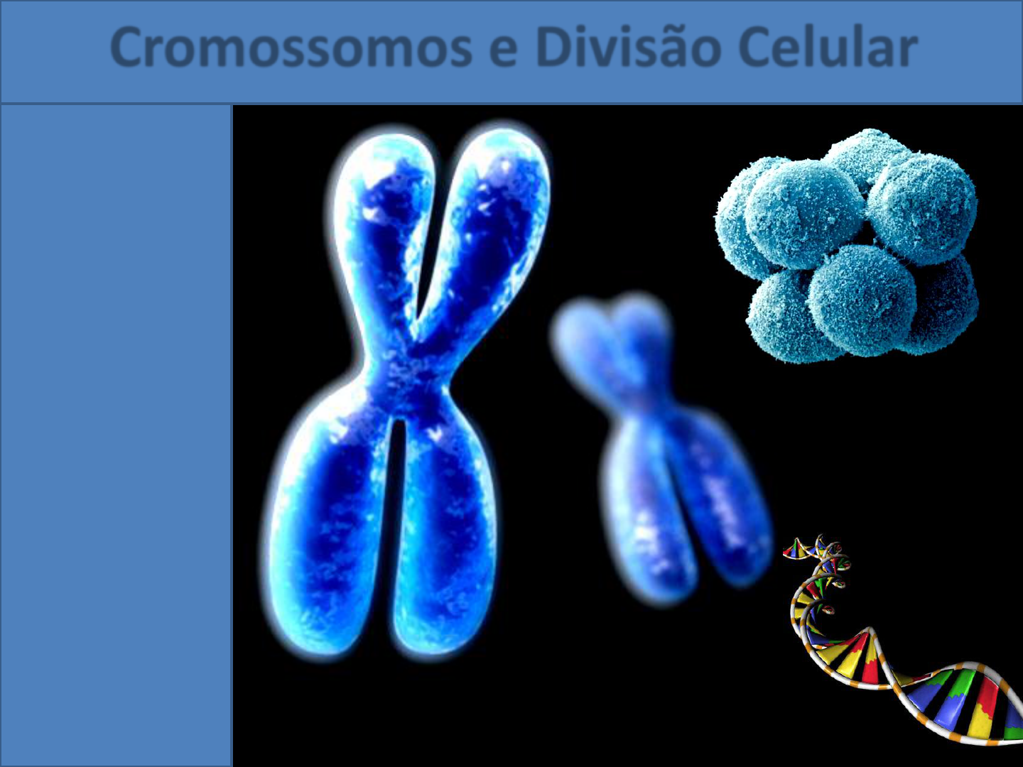 Genética Tema: o Cromossomos o Divisão celular: • Mitose • Meiose Cromossomos e Divisão Celular 1) Conceitos Prévios • Cromossomo: Estrutura que contém uma longa molécula de DNA associada a proteínas histonas, visível ao microscópio óptico em células metafásicas. Proteína histona Condensação Cromossomo DNA Cromossomos 1) Conceitos Prévios • Cromossomo Simples Centrômero Braço Braço 2 braços 1 centrômero Cromossomos 1) Conceitos Prévios • Cromossomo Duplo Centrômero Braço Braço Cromátide Braço Braço 4 braços 1 centrômero Cromossomos 1) Conceitos Prévios • Classificação dos cromossomos quanto à posição do centrômero Braço Braço Centrômero Metacêntrico Submetacêntrico Acrocêntrico Telocêntrico Cromossomos Estrutura do DNA Estrutura primária – sequência de nucleotídeos; Estrutura secundária – hélice bifilamentar; Estrutura terciária – dobramento de maior ordem que permite ao DNA ser compactado no espaço confinado de uma célula; Cromossomos Eucariotos Enormes quantidades de DNA; Moléculas extremamente longas; Compactação e dobramentos; Interfase: estado alongado e relativamente descondensado; Curso do ciclo celular – mudanças no nível de compactação; Compactação – muda localmente na replicação e transcrição; Estrutura dos Cromossomos Eucarióticos Estrutura da Cromatina Cromatina – DNA associado a proteínas; Eucromatina – sofre o processo normal de condensação e descondensação no ciclo celular; Constitui a maioria do material cromossômico; Heterocromatina – permanece em um estado de alta condensação durante o ciclo celular, mesmo durante a interfase; Regiões centroméricas e teloméricas Histonas Pequenas, de carga positiva; Tipos: H1, H2A, H2B, H3 e H4; Alta porcentagem de arginina e lisina – carga positiva – atração das cargas negativas dos fosfatos do DNA. Proteínas Não-histonas Distribuição heterogênea; Metade da massa de proteína do cromossomo; Proteínas do arcabouço cromossômico: papel no dobramento e na compactação dos cromossomos; Constituem o cinetócoro, revestem as pontas dos cromossomos ligando-se aos telômeros e constituem os motores moleculares que movem os cromossomos na mitose e na meiose; Proteínas envolvidas em processos genéticos: Componentes da maquinaria de replicação (DNA polimerase, helicases, primases); Efetuam e regulam a transcrição (RNA polimerase, fatores de transcrição, etc); Cromatina – estrutura altamente complexa ; Nível mais simples – estrutura de dupla hélice do DNA; Nível mais complexo – molécula de DNA está associada a proteínas e é altamente dobrada para produzir um cromossomo. Níveis de Organização da Cromatina Nível mais simples da estrutura da cromatina; Partícula cerne - DNA enrolado cerca de duas vezes ao redor de um octâmero de histonas (duas cópias de cada H2A, H2B, H3 e H4); DNA no octâmero – 145 e 147 pb - enrolando ao redor das histonas com giro para a esquerda e superelicoidizado; Histona H1 – não faz parte do cerne Fixação do DNA no lugar, agindo como um grampo ao redor do octâmero; Nucleossomo Partícula cerne e sua histona H1 associada; H1 – liga-se a cerca de 20 a 22 pb de DNA; 167pb de DNA são mantidos dentro do cromatossomo; Situados em intervalos regulares ao longo da molécula e separados um dos outros pelo DNA ligador; DNA ligador - 30 a 40 pb Cromatossomo Nucleossomos separados por espaços regulares; Nucleossomos se dobram sobre si mesmos; Formação de uma estrutura densa e altamente compactada; Fibra com diâmetro de 30nm; Fibra de 30 nm Série de alças de fibras de 30 nm; Alças ancoradas na base por proteínas de arcabouço nuclear; Cada alça - 20.000 a 100.000 pb de DNA Fibras de 300nm - compactadas e dobradas para - fibra com 250nm de largura; Intensa helicoidização da fibra de 250nm – Metáfase – cromátide individual com 700 nm de largura; Alças de fibras de 30 nm Compactação da Cromatina Constrição - onde as fibras do fuso se ligam; Movimentação adequada dos cromossomos - mitose e meiose; Sequências centroméricas – ligação de proteínas que funcionam como cinetócoro; Cinetócoro - complexo que se monta no centrômero e se liga as fibras do fuso; Centrômeros difusos – fibras se ligam ao longo de todo do cromossomo; Centrômeros localizados – fibras se ligam a um local específico no cromossomo; Formados por sequências curtas e repetidas de DNA em tandem; Centromêros – ajudam a controlar o ciclo celular Estrutura do Centrômero Tipos de Cromossomos Grupo A – Metacêntricos e submetacêntricos grandes; Grupo B – Submetacêntricos; Grupo C - Metacêntricos ou submetacêntricos; Grupo D – Acrocêntricos de tamanho médio; Grupo E – Submetacêntricos pequenos; Grupo F – menores metacêntricos; Grupo G - menores acrocêntricos; Cariótipo Humano Alelos Pontas dos cromossomos; Função: revestimento que estabiliza o cromossomo; Replicação das pontas do cromossomo; Enzima que sintetizam DNA são incapazes de replicar os últimos nucleotídeos na ponta de cada filamento; Encurtamento a cada replicação – danificação de genes; Sequência teloméricas – série de nucleotídeos citosina seguidos de várias adenina ou timinas; Estrutura do Telômeros Encurtamento – células somáticas; Células germinativas – enzima telomerase – replica os telômeros; 1) Conceitos Prévios • Cromossomos Homólogos São cromossomos semelhantes na forma e no tamanho presentes aos pares em células diplóides (2n) Cromossomos homólogos Célula diplóide (2n)s Cromossomos homólogos Célula diplóide (2n)d Não há homólogos Célula haplóide (n)d Não há homólogos Célula haplóide (n)s Divisão Celular: Mitose e Meiose 1) Conceitos Prévios • Células Haplóides (C e D) não possuem cromossomos homólogos • Células Diplóides (A e B) possuem cromossomos homólogos Cromossomos homólogos Célula diplóide (2n)s Cromossomos homólogos C