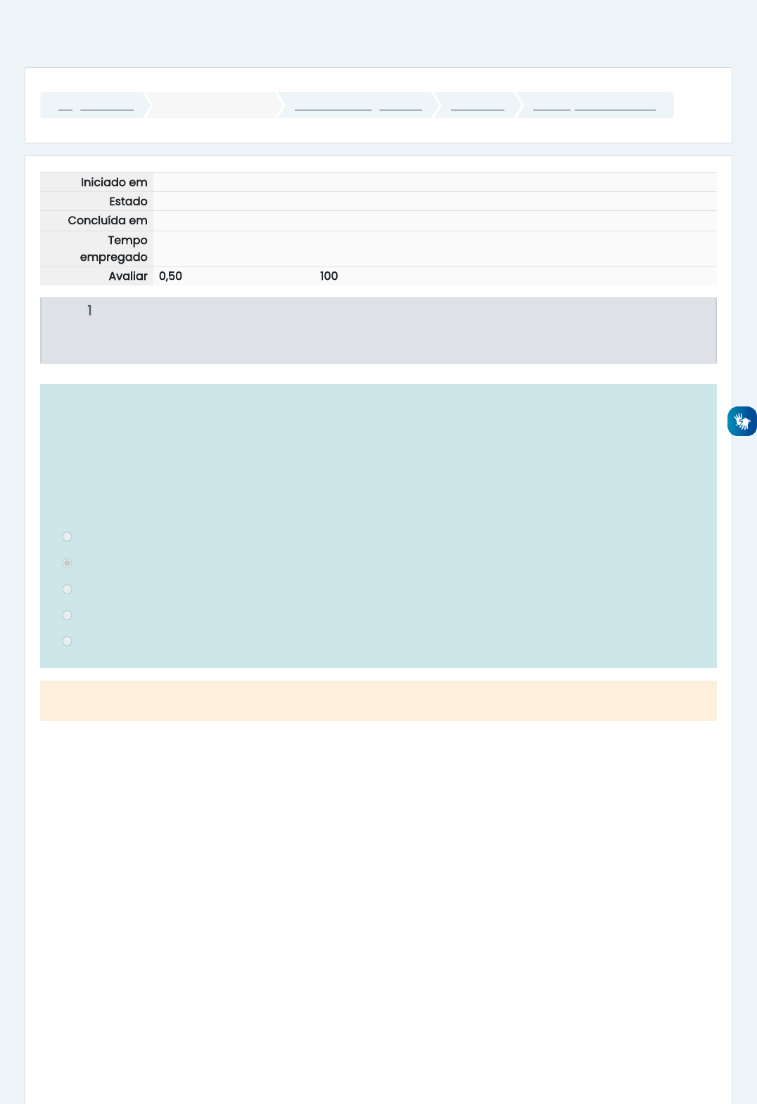 Página inicial Minhas disciplinas 2023/1 - Forragicultura UNIDADE I Avaliação - Unidade I Iniciado em sábado, 11 mar 2023, 19:00 Estado Finalizada Concluída em sábado, 11 mar 2023, 19:12 Tempo empregado 11 minutos 34 segundos Avaliar 0,50 de um máximo de 0,50(100%) Questão 1 Completo Atingiu 0,05 de 0,05 Analise as sentenças a seguir e escolha a que se referir corretamente às finalidades de uso das forrageiras que são levadas em consideração nos programas de melhoramento: I. Pastagens exclusivas ou solteiras. II. Sistemas integrados, sendo eles: pecuária-floresta; lavoura-pecuária; lavoura-pecuária-floresta. III. Sistemas irrigados com pivô central, seja com água ou fertirrigação. IV. Criação de animais semolventes ou tração.V. Animais criados extensivamente, ou seja, em pastagens. a. F, F, F, F, F. b. V, V, V, V, V. c. V, F, F, F, V. d. F, V, F, V, V. e. V, V, V, F, F. A resposta correta é: V, V, V, V, V. https://ambienteonline.uninga.br/ https://ambienteonline.uninga.br/course/view.php?id=16232 https://ambienteonline.uninga.br/course/view.php?id=16232§ion=4 https://ambienteonline.uninga.br/mod/quiz/view.php?id=476924 Questão 2 Completo Atingiu 0,05 de 0,05 Questão 3 Completo Atingiu 0,05 de 0,05 Analise as sentenças a seguir: I. Dossel forrageiro é considerado somente a porção do pasto compreendido pela parte aérea. II. Índice de área foliar total de área de um lado de todas as folhas verdes contidas em 2 m² de solo. III. As partes das plantas quando chegam ao final de sua vida útil iniciam um processo chamado de senescência IV. Desfolha ou desfolhação significa a remoção de uma porção ou de toda a parte aérea da planta durante o processo de colheita pelos animais, manual ou mecânico. Assinale a alternativa correta. a. Apenas I, III e IV são corretas. b. Apenas IV é correta. c. Apenas III e IV são corretas. d. Apenas I e III são corretas. e. Apenas I, II e III são corretas. A resposta correta é: Apenas I, III e IV são corretas. Analise as sentenças a seguir: I. Intensidade de desfolhação se refere à massa de forragem removida pelo animal. II. Frequência de desfolhação se refere ao intervalo de tempo entre duas desfolhações sucessivas. III. A massa de forragem remanescente numa dada área, como consequência da colheita, é denominada de forragem residual ou resíduo. Assinale a alternativa correta. a. Apenas I é correta. b. Apenas II e III são corretas. c. Apenas III é correta. d. Apenas II é correta. e. Apenas I e II são corretas. A resposta correta é: Apenas II e III são corretas. Questão 4 Completo Atingiu 0,05 de 0,05 Questão 5 Completo Atingiu 0,05 de 0,05 Analise as sentenças a seguir: I. O método de pastoreio adotado não é importante no momento de orientar o pecuarista quanto à escolha da planta forrageira a ser implantada na propriedade. II. Produção de massa de forragem ao longo de todo o ano e boa aceitabilidade pelos animais são algumas das características desejáveis nas cultivares a serem desenvolvidas nos programas de melhoramento. III. A escolha da planta forrageira a ser implantada é a etapa adotada mais importante para o sucesso no estabelecimento da pastagem. IV. A escolha da forrageira adequada ao sistema de produção depende somente das condições de clima e solo da localidade. Assinale a alternativa correta: a. Apenas I e II são corretas. b. Apenas II e III são corretas. c. Apenas III é correta. d. Apenas I é correta. e. Apenas II é correta. A resposta correta é: Apenas II e III são corretas. Assinale a alternativa correta. a. Segundo fontes confiáveis, o Brasil tem 78% dos animais criados em sistemas de pastagem. b. O Brasil tem sucesso na produção pecuária por causa da ótima qualidade de nosso rebanho. c. Em sistemas de produção com animais ruminantes, a finalidade das pastagens é proporcionar alimento em quantidade, qualidade e que represente um menor custo de produção, sendo a sua escolha um fator decisivo para a rentabilidade e sustentabilidade do sistema. d. Nosso território é ocupado por cerca de 182,53 milhões de hectares de pastagem. e. A escolha da forrageira a ser implantada no sistema de produção, apesar de importante, não representará um impacto significativo no retorno financeiro ao pecuarista, uma vez que houver alto investimento em tecnificação do sistema, a exemplo de adubações e irrigação. A resposta correta é: Em sistemas de produção com animais ruminantes, a finalidade das pastagens é proporcionar alimento em quantidade, qualidade e que represente um menor custo de produção, sendo a sua escolha um fator decisivo para a rentabilidade e sustentabilidade do sistema. Questão 6 Completo Atingiu 0,05 de 0,05 Questão 7 Completo Atingiu 0,05 de 0,05 Com respeito aos termos e terminologias usados na pastagem, é correto afirmar que: I. Esses devem ser claramente definidos e empregados para o bom entendimento do assunto abordado. II. A adoção desses termos e terminologia dificulta o entendimento mais amplo das áreas da forragicultura. III. A sua correta utilização contribui para que a comunidade científica local e sociedade civil padronizem as suas discussões. a. Apenas I e II são corretas. b. Apenas III é correta. c. Apenas II e III são corretas. d. Apenas I é correta. e. Apenas II é correta. A resposta correta é: Apenas I é correta. Considere as afirmativas. I. O desenvolvimento de cultivares forrageiras é um processo relativamente lento, complexo e que demanda muito planejamento, equipes multidisciplinares especializadas e recursos forrageiros. II. 60% das sementes de gramíneas comercializadas pertencem à U. brizantha cv. Paiaguás. III. O melhoramento e seleção busca como resultado o desenvolvimento de uma forrageira que possibilite a diversificação das pastagens, a diminuição da vulnerabilidade genética, com redução do risco de ocorrências de pragas e doenças e aumento da produtividade animal. IV. O mel