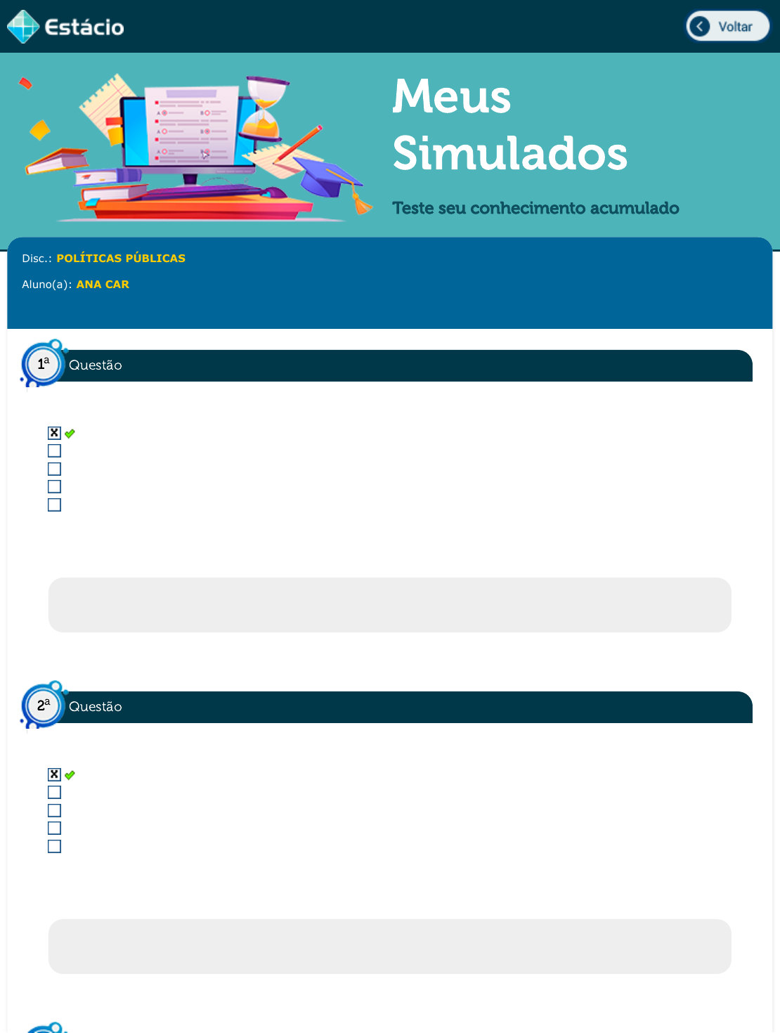 3/13/23, 9:47 AM Estácio: Alunos https://simulado.estacio.br/alunos/ 1/5 Meus Simulados Teste seu conhecimento acumulado Disc.: POLÍTICAS PÚBLICAS Aluno(a): ANA CAROLINA GAIR 202007033485 Acertos: 10,0 de 10,0 13/03/2023 Acerto: 1,0 / 1,0 Verifique qual é a afirmativa verdadeira: Uma estrada congestionada e com pedágio é um bem privado. A assinatura de TV a cabo é um bem privado. A assinatura de TV a cabo é um bem público. Uma estrada congestionada e sem pedágio é um bem público. Umas estrada congestionada e com pedágio é um bem público. Respondido em 13/03/2023 09:44:04 Explicação: A resposta correta é: Uma estrada congestionada e com pedágio é um bem privado. Acerto: 1,0 / 1,0 Educação é uma área em que o governo faz intervenções. Por que o governo deveria agir nessa área? Porque o consumo de educação gera uma externalidade positiva. Porque não existe oferta pública de educação. Porque a produção de educação gera externalidade negativa. Porque a educação é um bem público. Porque não existe oferta privada de educação. Respondido em 13/03/2023 09:20:13 Explicação: A resposta correta é: Porque o consumo de educação gera uma externalidade positiva. Questão1 a Questão2 a https://simulado.estacio.br/alunos/inicio.asp javascript:voltar(); 3/13/23, 9:47 AM Estácio: Alunos https://simulado.estacio.br/alunos/ 2/5 Acerto: 1,0 / 1,0 Dentre as afirmações abaixo, selecione a alternativaincorreta sobre Economia Política: Um problema do modelo de Lidahl é a preferência revelada, onde as pessoas têm incentivos a mentir sobre a disposição a pagar por um bem público Accountability é uma ferramenta utilizada para combater a corrupção Uma das funções do MP é punir irregulares de gestão no governo O teorema da impossibilidade de Arrow diz que um sistema de votação não é capaz de agregar as preferências de forma consistente em nenhuma situação A CGU é o responsável pelo Portal de Transparência do governo Respondido em 13/03/2023 09:23:50 Explicação: A resposta correta é: O teorema da impossibilidade de Arrow diz que um sistema de votação não é capaz de agregar as preferências de forma consistente em nenhuma situação Acerto: 1,0 / 1,0 Com o quadro de preferências abaixo, podemos afirmar que: Manoel Joaquim Pedro 1 C B A 2 A C B 3 B A C Uma votação majoritária teria o projeto A eleito Uma votação majoritária Uma votação majoritária violaria a propriedade de transitividade Uma votação majoritária não violaria a propriedade de transitividade Uma votação majoritária agregaria as preferências Respondido em 13/03/2023 09:25:56 Explicação: A resposta correta é: Uma votação majoritária violaria a propriedade de transitividade Acerto: 1,0 / 1,0 A Seguridade Social será financiada por toda sociedade, de forma direta e indireta, nos termos do art. 195 da Constituição Federal e desta Lei, mediante recursos provenientes da União, dos Estados, do Distrito Federal, dos Municípios e de contribuições sociais. Sobre o Sistema de Seguridade Social Brasileiro, garantido na Constituição Federal de 1988, é correto afirmar que: O direito a previdência social é de acesso universal, não-contributivo. Compete as entidades da sociedade civil a organização e o financiamento das ações da seguridade social. Prevê cobertura e atendimento diferenciados de acordo com a categoria ocupacional. Questão3 a Questão4 a Questão5 a 3/13/23, 9:47 AM Estácio: Alunos https://simulado.estacio.br/alunos/ 3/5 É financiado direta e indiretamente por toda sociedade, através de recursos públicos provenientes da União, Estados e Municípios. A sua organização se fundamenta na lógica do modelo de seguro social. Respondido em 13/03/2023 09:37:19 Explicação: Assistência social de quem dela necessitar; saúde - publica e previdência social é contributiva. o acesso independe da categorial ocupacional. Saúde e assistência diretamente e previdência indiretamente. Não cabe as entidades o financiamento da seguridade social Apenas a previdência social, que prevê contribuição dos segurados. Acerto: 1,0 / 1,0 Imagine-se na seguinte situação. Ana Carolina acabou de comprar um carro e está dirigindo pela orla do Rio de Janeiro e faz uma parada para conversar com Ricardo Campos, jogador de futevôlei profissional. O Manoel Carlos está dirigindo o próprio carro, distrai-se e bate no veículo da Ana Carolina. O irmão de Manoel Carlos, Silvio Prado fica constrangido, pede desculpas a ela e fala que o seguro do seu irmão vai arcar com os prejuízos dela. Nesse sentido, oferecer o cartão do seu advogado, o Carlos Pereira, primo daquele que é dona da seguradora do irmão, a Jaqueline Silva. Nesse contexto, quem é o segurado? Carlos Pereira. Ana Carolina. Jaqueline Silva. Manoel Carlos. Ricardo Campos. Respondido em 13/03/2023 09:34:41 Explicação: O assegurado é a pessoa que bateu no seu carro, Manoel Carlos. O prêmio de seguro é o valor que esta pessoa paga mensalmente, e o segurador é a empresa que fornece esse seguro, aquele da Jaqueline Silva. Acerto: 1,0 / 1,0 Selecione a alternativa correta a respeito do desenho de políticas públicas. No desenho do programa, deve-se adotar objetivos abrangentes e gerais. O primeiro passo no desenho do programa é indicar as condições e a dimensão do problema a que se pretende enfrentar, definindo-o de forma clara e objetiva. É na parte do impacto potencial, no desenho do programa, que se conhece qual o real resultado com a implementação do programa. Depois de implementado o programa, as análises de custo-benefício servirão apenas para conseguir subsídios e encontrar o impacto do programa. O desenho do programa tem que assegurar que as ações serão abrangentes para atender a toda a população. Respondido em 13/03/2023 09:38:33 Questão6 a Questão7 a 3/13/23, 9:47 AM Estácio: Alunos https://simulado.estacio.br/alunos/ 4/5 Explicação: A resposta correta é: O