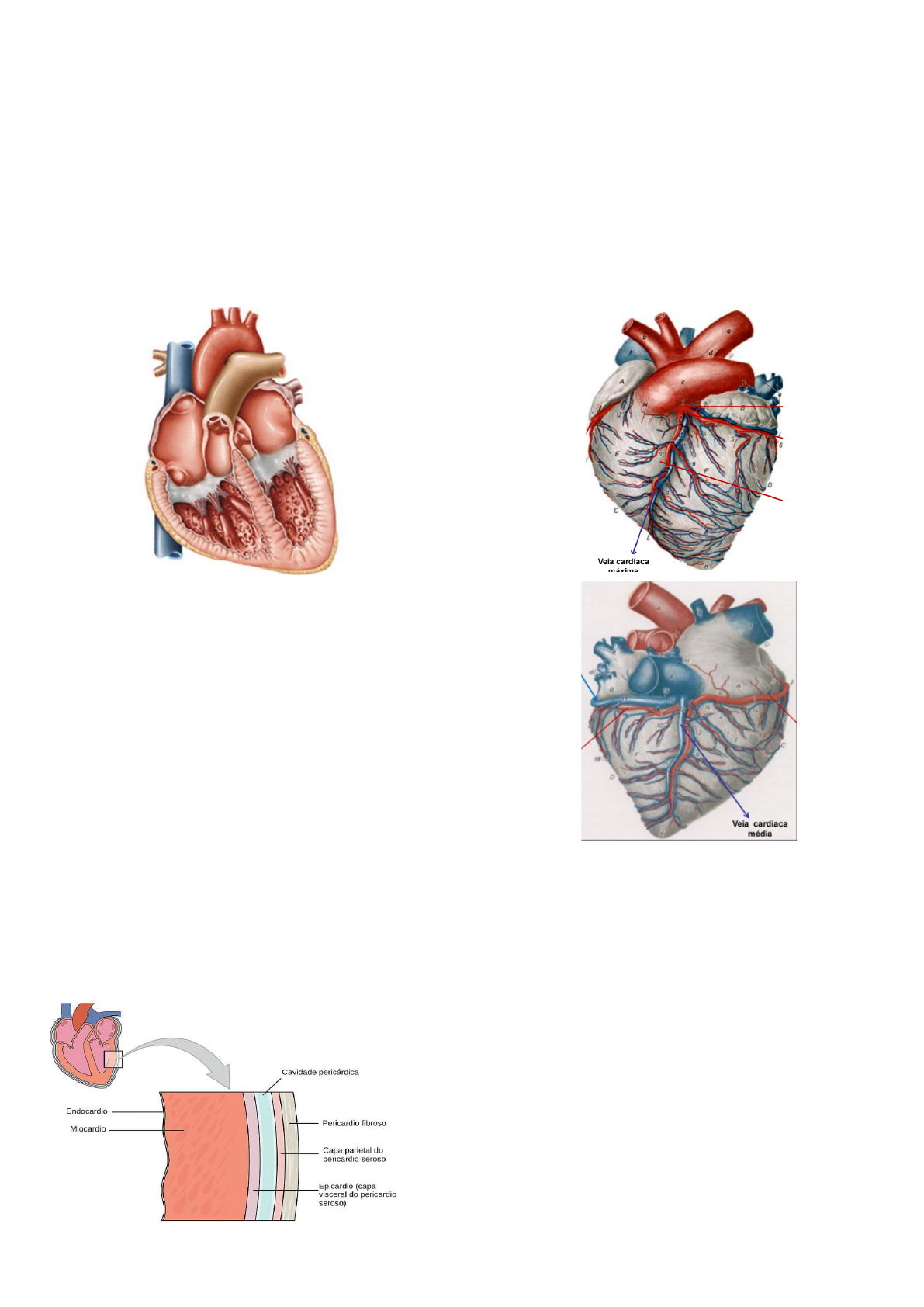 SISTEMA CARDIOVASCULAR O coração é uma bomba central com quatro cavidades e possui uma base e um ápice. Localizado na caixa torácica, mediastino, levemente para a esquerda variando com a espécie. Carnívoro - 3ª ~ 7ª costela. Equino - 2° ~ 6° espaço intercostal. Ruminante - 3ª ~ 6ª costela. Suínos - 2ª ~ 5ª costela. AE- Chegada das veias pulmonares. Ventrículo é mais espesso para liberar o sangue. Valva bicúspide - valva atrioventricular esq. Valva tricúspide - valva atrioventricular dir. As cordas tendíneas estão presas no músculo papilar e se fixam nas valvas que auxiliam na abertura e fechamento das valvas. A trabécula septomarginal é responsável pela condução de impulso elétrico. As trabéculas cárneas auxiliam no turbilhonamento sanguíneo. ARQUITETURA CARDÍACA Camada interna: endocárdio. Meio: miocárdio. Camada superficial: pericárdio. SACO PERICÁRDICO Tem a função de proteger e evitar atrito de com um órgão . VASCULARIZAÇÃO DO CORAÇÃO Artéria coronária saem direto da aorta, sendo uma direita e outra esquerda. ela sai e ramifica, uma que desce e outra que circula o coração. Um ramo descendente e um ramo circunflexo. SISTEMA DE CONDUÇÃO DO RITMO CARDÍACO Assegura que as câmaras cardíacas contraem de maneira adequada. - Eventos elétricos - Nó sinoatrial (Átrio direito) "marcapasso fisiológico” - Contração atrial (sístole atrial) - Nó atrioventricular (septo interatrial) - Fascículos atrioventriculares (feixe de His) → septo - Ramos subendocárdicos (céls de Purkinje) → parede dos ventrículos (sístole ventricular). SISTEMA DISTRIBUIDOR PESCOÇO E CABEÇA Aorta cranial - tronco braquiocefálico - artéria carótida comum - pescoço e cabeça MEMBROS TORÁCICOS Aorta cranial - artéria subclávia - membros torácicos. PULMÕES E ESÔFAGO Aorta caudal - artéria braquiaoesofágica - pulmões e esôfago. DIAFRAGMA EQUINO Aorta caudal - artéria frênica cranial - diafragma. DIAFRAGMA EXCETO EQUINOS Aorta abdominal - a. frênica caudal - diafragma. ESTÔMAGO, FÍGADO E BAÇO Aorta abdominal - a. celíaca - estômago, fígado e baço. INTESTINO DELGADO E PÂNCREAS Aorta abdominal - a. mesentérica cranial - intestino delgado e pâncreas. RINS Aorta abdominal - a. renal - rins. TESTÍCULOS OU OVÁRIOS Aorta abdominal - a. gonadal - testículos ou ovários. INTESTINO GROSSO Aorta abdominal - a. mesentérica caudal - intestino grosso. PELVE E MEMBROS INFERIORES Aorta abdominal - artérias ilíacas - pelve e membros inferiores. - a. ilíaca interna - vascularização do glúteo e órgãos da pelve - a. ilíaca externa - vascularização dos membros pélvicos. SISTEMA COLETOR SISTEMA COLETOR Veia cava cranial - recolhe parte cranial do corpo. Veia cava caudal - recolhe parte caudal do corpo. PESCOÇO E CABEÇA Carnívoros e suínos: v. jugular - v. subclávia - v. cava cranial. Equinos e ruminantes: v. jugular - v. bijugular - v. cava cranial. MEMBRO TORÁCICO V. digitais - metacarpais - mediana - braquial - axilar - subclávia - cefálica - cava cranial. MEMBRO PÉLVICO V. digitais - metatarsais - tibial cranial - - poplíteas - safenas - femoral - ilíaca - externa - ilíaca comum - cava caudal VASOS SANGUÍNEOS A Túnica média é mais espessa nas artérias. As valvas das veias auxiliam para o fluxo sanguíneo e não haver retorno. FUNÇÃO Carregar o sangue do coração aos tecidos corpóreos. Promover a troca de nutrientes, hormônios, gases e recolher catabólitos. Carreia o sangue de volta ao coração. Auxilia a regulação da pressão sanguínea e do suprimento sanguíneo. ESTRUTURA DO CAPILAR Conectam artérias e veias. CIRCULAÇÃO PORTA HEPÁTICA ACONTECE NO FÍGADO As veias que retornam do intestino grosso, delgado, pâncreas, estômago e baço, se confluem para o fígado pela veia porta. É um desvio para o sangue desses órgãos irem para o fígado para metabolizar, filtrar e depois voltar para a veia hepática e depois para a veia cava caudal. CIRCULAÇÃO PULMONAR O sangue do VD passa pela valva pulmonar através das artérias pulmonares e leva até o pulmão, então ocorre o processo de hematose. O sangue oxigenado retorna pelas veias pulmonares chegando ao AE. Do AE o sangue passa pela valva bicúspide chegando ao VE. GRANDE CIRCULAÇÃO O sangue vem do VE passa pela valva semilunar da aorta, pela aorta cranial e caudal, então distribui para todo o corpo tendo ramificações, trocas gasosas, nutrientes… Do corpo retorna pelas confluências da veias até chegar na veia cava cranial ou caudal. Essas veias cavas chegam no AD, do AD o sangue passa pela valva tricúspide chegando no VD. CIRCULAÇÃO GERAL O sangue vem do VE passa pela valva semilunar da aorta, pela aorta cranial e caudal, então distribui para todo o corpo tendo ramificações, trocas gasosas, nutrientes… Do corpo retorna pelas confluências da veias até chegar na veia cava cranial ou caudal. Essas veias cavas chegam no AD, do AD o sangue passa pela valva tricúspide chegando no VD. O sangue do VD passa pela valva pulmonar através das artérias pulmonares e leva até o pulmão, então ocorre o processo de hematose. O sangue oxigenado retorna pelas veias pulmonares chegando ao AE. Do AE o sangue passa pela valva bicúspide chegando ao VE. CIRCULAÇÃO FETAL A veia umbilical sai da placenta e entra no feto com nutrientes e O2, vai para o fígado e uma parte é desviada pelo ducto venoso que vai para o coração. Depois de passar pelo fígado, o sangue que está pobre em O2 e nutrientes vai para a veia cava inferior se misturando com sangue rico em nutrientes e O2. O sangue chega no AD, uma parte passa pela válvula tricúspide e chega no VD e outra passa pelo forame oval e vai para o AE. O sangue que foi para o VD, uma parte vai para o pulmão e outra se desvia da artéria pulmonar para o ducto arterioso. O sangue do VE vai para a aorta que recebe o sangue do ducto arterioso e é distribuído para todo o corpo. Então a artéria umbilical re