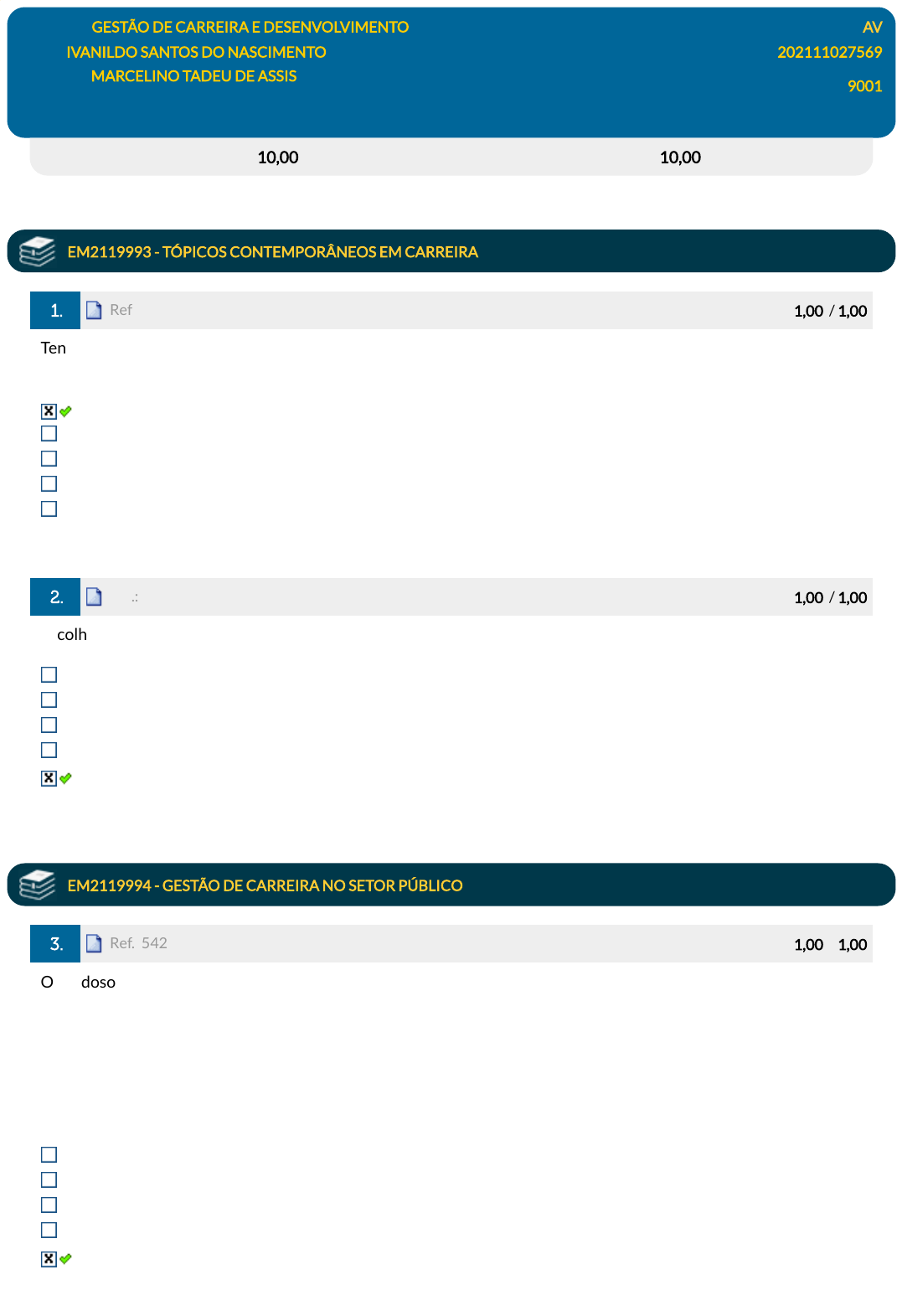 Disciplina: GESTÃO DE CARREIRA E DESENVOLVIMENTO AV