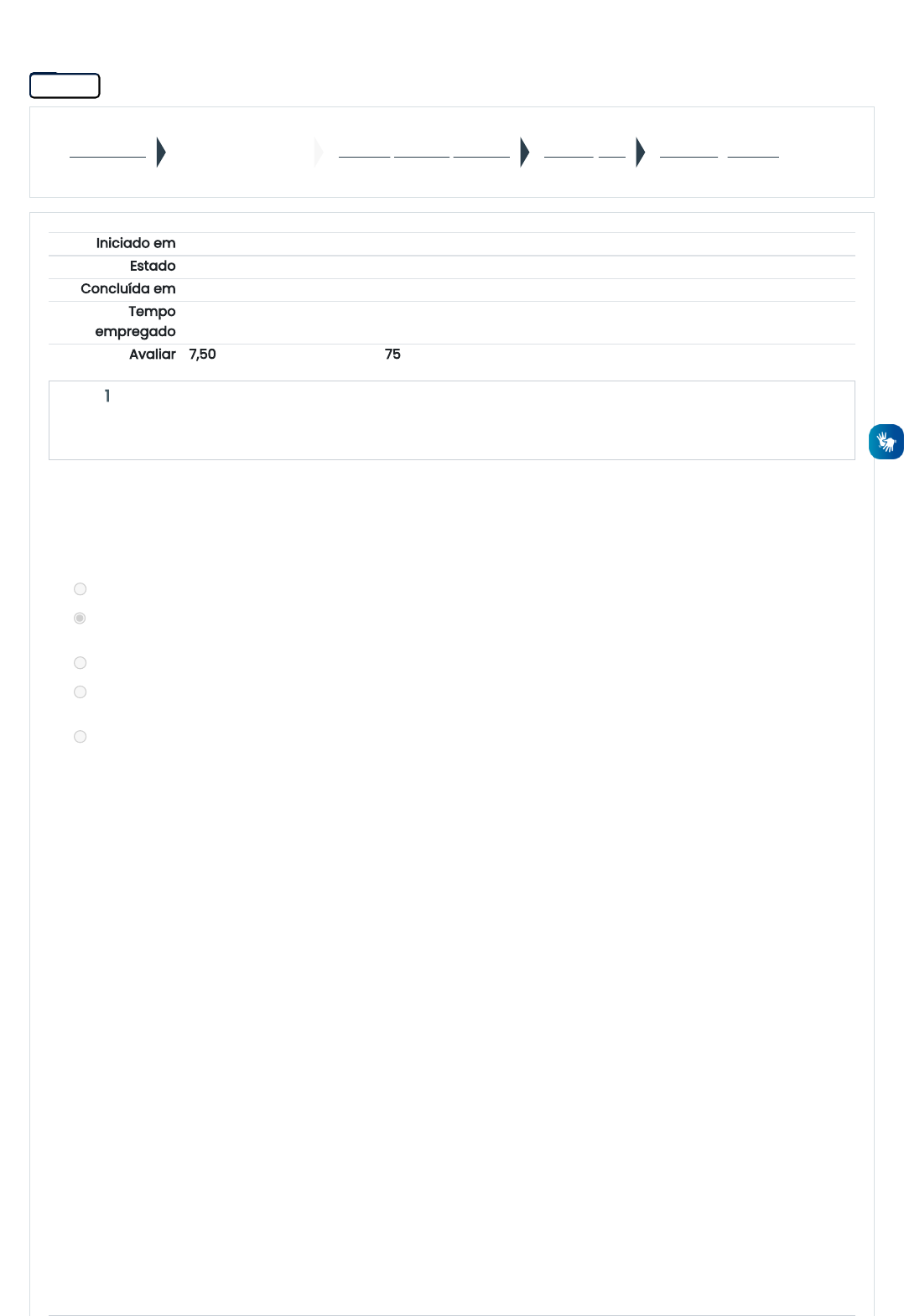 Minha área Minhas disciplinas Gestão por Competência AVALIAÇÕES Prova Regimental Iniciado em terça, 7 Jun 2022, 19:12 Estado Finalizada Concluída em terça, 7 Jun 2022, 19:43 Tempo empregado 31 minutos 56 segundos Avaliar 7,50 de um máximo de 10,00(75%) Questão 1 Correto Atingiu 1,25 de 1,25 Assinale a ÚNICA opção correta: Como discutido, o marketing possui todos os requisitos para ser considerado uma supra funcionalidade, uma vez interferir em todas as outras funcionalidades da empresa. Assim: a. Tem especial preocupação com o nível operacional, onde se concretiza o produto ou serviço; b. Interfere de forma direta e indireta sobre finanças, pessoas, produção e sobre a própria funcionalidade de MKT. c. A essência das preocupações do MKT é a disseminação de pontos consistentes sobre o produto/serviço; d. Em momentos iniciais, tem especial preocupação com o nível tático, ou seja, com os instrumentos de levantamentos a serem utilizados na pesquisa de mercado; e. O marketing, em seu aspecto interno, preocupa-se com os ambientes onde as organizações estão inseridas; A resposta correta é: Interfere de forma direta e indireta sobre finanças, pessoas, produção e sobre a própria funcionalidade de MKT. Voltar https://edu.grupoceuma.com.br/my/ https://edu.grupoceuma.com.br/course/view.php?id=132 https://edu.grupoceuma.com.br/course/view.php?id=132§ion=6 https://edu.grupoceuma.com.br/mod/quiz/view.php?id=3052 Questão 2 Incorreto Atingiu 0,00 de 1,25 Assinale a opção que contém a adequada relação entre fatores: Conceituação/Afirmação A partir da consolidação da Missão, os caminhos estão abertos para a (r~estruturação organizacional com a adequação das competências de cada área funcional, que por sua vez, dimensiona o perfil de competência para as atividades específicas da área. Asserção Há um efeito cascata. A partir da missão, concebe-se a estrutura e suas competências. Após as competências funcionais e, por fim, a atração/realocação de pessoas que preencham os requisitos das competências. Razão Mesmo pertencente a um subprocesso – Gestão por Competência – obedece aos mesmos princípios de visão sistêmica tão importante para a organização. Ao estabelecer a relação entre esses fatores, infere-se que: I. Conceituação/Afirmação e Razão, estão situados no âmbito estratégico do planejamento; II. Conceituação/Afirmação, Asserção e razão demonstram aspectos do ambiente interno da empresa; III. Que a adequada alocação do colaborador depende de conhecimentos tácitos e explícitos; IV. Dada a diversidade de fatores, a definição dos desenhos de cargos exige uma estrutura matricial; V. Os fatores Conceituação/Afirmação, Asserção e Razão apresentam coerência no sentido, mas inexiste relação direta entre eles. As afirmativas que apresentam coerência na relação Conceituação/Afirmação x Asserção x Razão é: a. II-IV-V b. I-II-III-IV-V c. I-II-III-IV d. I-II-III-V e. I-III-V A resposta correta é: I-II-III-IV Questão 3 Correto Atingiu 1,25 de 1,25 Assinale a opção que contém todas as assertivas corretas: Há ainda a tendência em se considerar como Stakeholders elementos que se situam no ambiente externo à organização e empresa. No entanto: I. O conceito faz referência a estruturas sociais, outras empresas ou entidades governamentais. II. O conceito de StakeHolder faz referência a uma pessoa, grupo ou entidade que apresenta interesse nas ações e no desempenho de uma organização e cujas decisões ou atuação podem afetar, direta ou indiretamente, essa mesma organização. III. São várias as formas de classificar os diferentes stakeholders, e a mais usual é a classificação em interna e externa. IV. No âmbito interno, estão pessoas ou entidades mais próximas da organização e incluem os seus proprietários, os trabalhadores e os gestores. V. Os stakeholders externos são os clientes, fornecedores, credores, Estado, entre outros. a. I-II-III-IV-V b. II-III-IV-V c. III-IV-V d. I-II-III-IV e. I-II-III-V A resposta correta é: II-III-IV-V Questão 4 Incorreto Atingiu 0,00 de 1,25 Assinale a opção que contém a adequada relação entre fatores: Conceituação/Afirmação O desenho das competências é resultado da definição dos objetivos da empresa. Sua Missão, qual mercado, a que tipo/estado da economia a empresa está submetida, qual a tipologia da cultura que estará presente no ambiente social, qual o ambiente legal entre outros. Não há como menosprezar a importância do desenho de competências. Asserção Essa importância deve ser entendida não só em nível Institucional/ Organizacional, mas no individual. A Competência distingue o bom do mau produto. Competência resulta no alcance de objetivos organizacionais. Razão Pois o alcance de objetivos organizacionais propicia, em contra ponto, o alcance de objetivos individuais, por meio da produtividade, criatividade e sustentabilidade. Colaboradores devem inteirar-se sobre o negócio e sua adequação ao meio socioeconômico a que se pretende suprir uma necessidade. No entendimento dos negócios, o próprio colaborador pode observar suas forças, fraquezas, oportunidades e ameaças. Ao estabelecer a relação entre esses fatores, infere-se que: I- Conceituação/Afirmação, Asserção e Razão, estão situados no âmbito estratégico; II- Empresas exigem diferentes competências uma vez possuírem vasto campo de observação e análise; III- Que a sobrevivência do colaborador, depende da sobrevivência da empresa; IV- Dada a diversidade de fatores, a definição dos desenhos de cargos exige uma estrutura matricial; V- Conceituação, Asserção e Razão estão corretamente dispostos e conceituados, mas não existe relação direta entre eles. As afirmativas que apresentam coerência na relação Conceituação/Afirmação x Asserção x Razão é: a. II-IV-V b. I-II-III-V c. I-II-III-IV d. I-II-III-IV-V e. I-