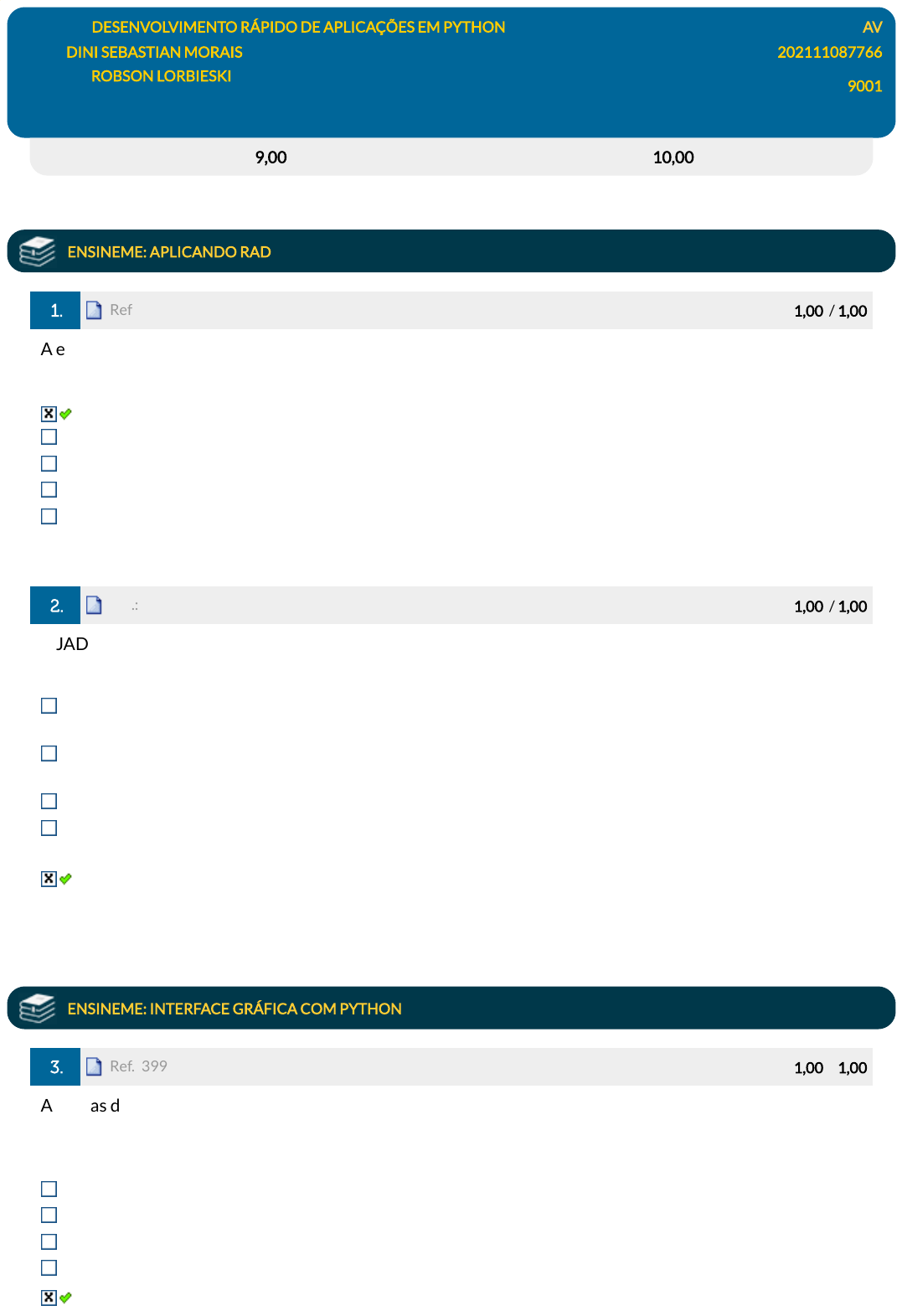 Disciplina: DESENVOLVIMENTO RÁPIDO DE APLICAÇÕES EM PYTHON AV