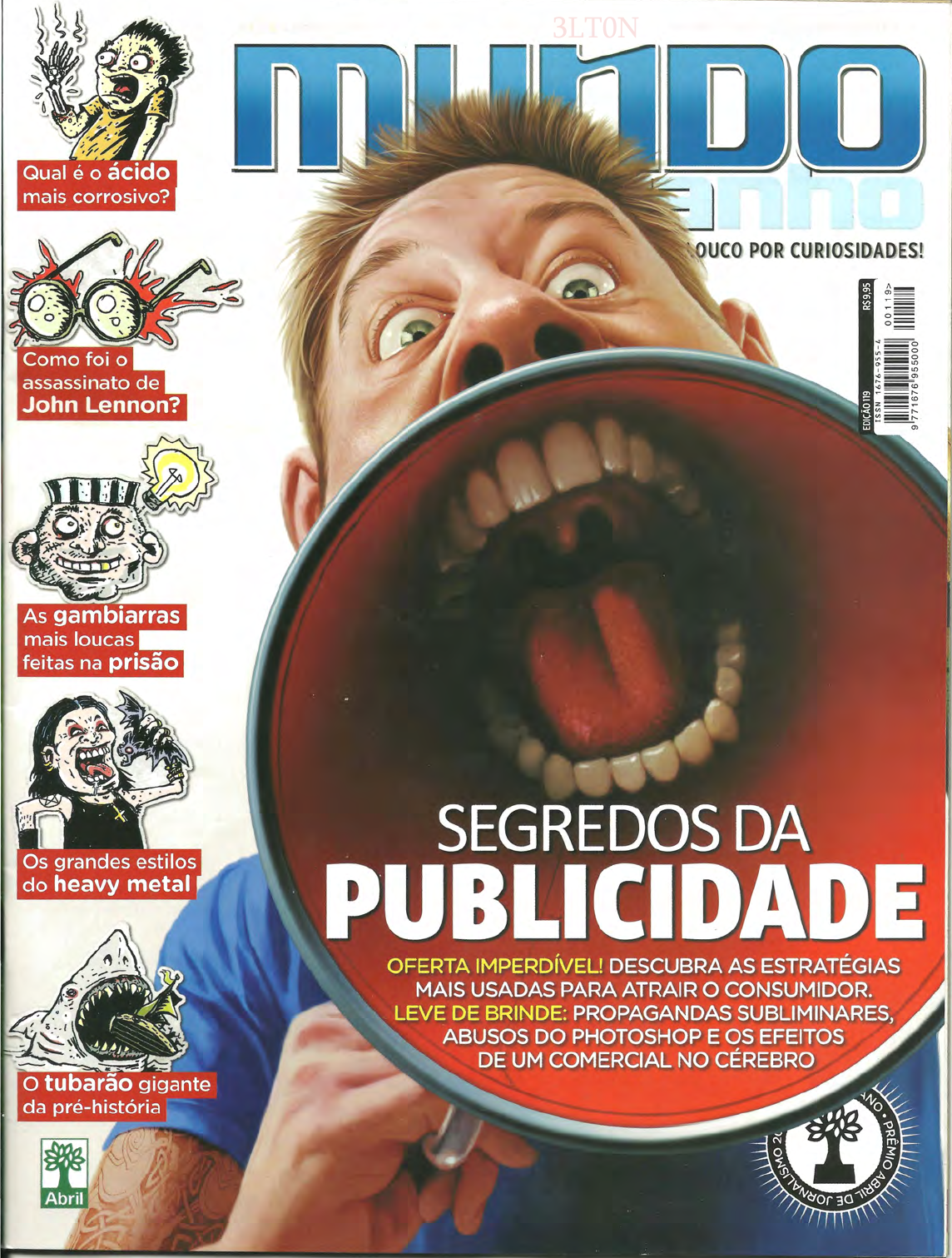 DEZEMBRO 2011 www.mundoestranho.com.br 3LT0N SJSJ www.mundoestranho.com.br Pa P ' A i n (; Ricardo ? ; J c : ': : e :s t fJ: ! r c : : www.mundoestranho.com.br (Presidente), Heio Brand, EDITORA Abril Fundador: VIcroR CIVITA (1907·1990) Editor: Roberto Civita Conselho Editorial: Roberto Civita (Presidente), Thomaz Souto Corrêa (Vice-Presidente), Elda Müller, Fábio Colletti Barbosa Giancarlo Civita, Jairo Mendes Leal, José Roberto Guzzo, Victor Civita Presidente Executivo Abril Mídia: lairo Mendes Leal Diretor de Assinaturas: Fernando Costa Diretor Digital: Manoel Lemos Diretor Financeiro e Administrativo: Fábio d' Avila Carvalho Diretara Geral de Publicidade: Thais Chede Soares Diretor Geral de Publicidade Adjunto: Rogerto Gabriel Comprido Diretara de Recursos Humanos: Paula Traldi · Diretor de Serviços Editoriais: Alfredo Ogawa Diretora Superintendente: Brenrla Fucuta Diretara de Núcleo: Alda Palma munDO es"tranhu Diretora de Redação: Patricia Hargreaves Editores: Marcel NadaleeTIago Jokura (texto); Fabricio Miranda (arte) Designers:Babi Brasileiro, Bernardo Borge':i e Diego Sanrnes Estagiários: LuizRomero (texto), Paula Buslamante (design) Atendimentoao lei- ' tor: Adriana Mencghello cn: Alvaro Zoo! (supclVisor), André Hauly, Erika Nakamura, Edvània Silva, Juarez Macedo, Leandro Mardnari, Zeca França, Leo Ferreira, Regina Sano Colaboraram nesta edição: Giselle Hirata (texto), Paulo Kaiser (revisão) Coordenadora Administrativa: Giselda Gala Assistente de reda ção: Ivete Lobato INTERNET NÚCLEO JOVEM Editor: Frederico Di Giacomo Editor-assistente: Kleyson BarbosaRepórteres: Mariana Nadai, Otavio Cohen, Luiza Sahd Designer: Daniel Lazaroni Webmaster: BrunoXavier Estagiários: Ana Prado (texto), Guilhenne Dearo(texto) e lAlcas Otsuka(webmaster) SERViÇOS EDITORIAIS Apoio Editorial: Carlos Grasselti (Arte), Luiz Iria (Infografia) Dedoc e Abril Press: Grace de Souza Pesquisa e Inteligência de Mercado: Andrea Costa Treinamento Editorial: Edward Pimenta PUBUClDAOE CENTRAUZAOA Diretores: Marcia Soter, MarianeOrtiz, Robson Monte, Executivosde Negócio: Ana Paula Teixeira, Ana Paula Viegas. Caio Souza, Camila Folhas. Camilla Deli, Carla Andrade, Cidinha Castro, Claudia Galdino, Cleide Gomes, Cristiano Persona, Daniela Serafim, Eliane Pinho, Emiliano Hansenn, Fabio Santos.}ary Guimarães, KarineThomaz, Marccllo Almeida, Marcelo Cavalheiro, Mareio Bezerra, Marcus Vinicius, Maria Lucia Strotbek, Nilo BaSlos, Regina Maurano, Renata Miolli, Rodrigo Toledo, Selma Costa,Susana Vieira, Tati Mendes PUBUODADE DIGITAL Diretor: André Almeida I �re;f:� ��rre� ol d aC:a C:i tt :éa I ::e�IO : I :r:!XCi ::C ;' David Padula, EJaine ColJaço, Gabriel Souto, Fabíola Granja, Flavia Kannebley, Guilhenne Bruno de lAIca, Guilhenne Oliveira, Herbert Fernandes, Juliana Vicedomini, Laura Assis, Luciana Menezes, Rafael de Camargo Moreira, Renata Carvalho, Renata Simões PUBLIC IDADE REGIONAL Diretores: Marcos Peregrina Gomez, Paulo Renato Simões Gerentes: Andrea Veiga, Cristiano Rygaard, Edson Melo, Francisco Barbeiro Nela, Ivan RizentaL João Paulo Pizarro, Mauro Sannazzaro, Ricardo Mariani, Sonia Paula, Vania PassolongoExecutivos de Negócio: Adriano Freire, Ailze Cunha, BeatrizOttino, Carolina uro, Caroline Platilha, Celia Pyramo, Clea Chies, Daniel Empinotti, Henri Marques, Halo Raimun'ão, José Castilho, J05i })o':!J: a ru aUe�: , : i o Gr:c �� a a S: o e :'rs JOVEM Diretor de Publicidade: Alberto Simões de Faria Gerentes: Fernando Sabadin, Sandra Fernandes Executivos de Negócio: Alessandra Calissi, Alice Ventura, Ana Carolina Kanj, Analúcia Bertola, Eduardo Chedid, Flavia Magalhães, João Eduardo Dias, Juliana Compagnoni, Leila Raso, Luis Caldas. Luis Femando iJJpes, Mara Marques, Reinaldo Murino, Shirlene Pinheiro, Thaira Ferro, Vera Reis Assistentes: Uliana Moura, MoniseBarbosa DESENVOLVIMENTO COMEROAL Diretor: Jacques Baisi Ricardo INTEGRAÇÃOCOMEROAl Diretora: Sandra Sampaio MARKrnNG E CIROJLAçAOD iretora de Marketing: Louise Falciros Gerente de Marketing: Angelica Garcia Gerente de Núcleo: Edson Botturd Gerente Marketing Leitor: Dennis Costa Analista: Thays Panizza Estagiária: Carolina Padilha Gerente Marketing Publicitário: Cezar Almeida Analista: Carolina Silva, Paulo Victor Gouvêa Estagiaria: Maria Fernanda Zanuto Gerente de Eventos: Mônica Romano Agostinho Analistas: Adriana Paolini, Barbara Mamno, Mariana Perri Estagiária: Mayra Sanei Gerente de Circulação Avulsas: Magali Superbi Gerente de Circulação Assinaturas: Gina Trancoso PtANEJAMENTO, CONTROLEE O PERAÇÕES Diretor: André Vasconcelos Gerente: Renata Antunes Consultor: Winandy Processos: Fabiano Valim, Aline DosiASSINATURA SA tendimento ao Cliente: Clayton Dick RECURSOS HUMANOS Consultora: Rachel Silva Redação e Correspondência: Av. das Nações Unidas, 7221, 14° andar, Pinheiros, São Paulo, CEP 05425-902, leI. (11) 3037-2000, Pubticidade São Paulo e informações sobre representantes de publicidade no Brasil e no Exterior: www.publiabril.com.br PUBLICAÇÕES DA EDITORA ABRIL: Alfa, Almanaque Abri!, Ana Maria, Arquitetura & Construção, Aventuras na História, Boa Forma, Bons Fluidos, Bravo!, Capricho, Casa Claudia, Claudia, Contigo!, Delícias da Caiu, Dicas Info, EHe, Estilo, Exame, Exame PME, Gloss, Guia do Estudante, Guias Quatro Rodas, Inro, Laia, Loveleen, Máxima, Manequim, Men's Health, Minha Casa, Minha Novela, e :i R�� t o Á :!' Veja São Paulo, Vejas Regionais. Viagem e Turismo, V ida Simples, V ip, Viva Mais!, Você RH, Você SIA, Women's Hcalth Fundação Victor Civita: Nova Escola. Gestão Escolar MUNDO ESTRANHO ED. 119 (ISSN: 1676-9554), ano 10, n" 13, é uma publicação da Editora Abril S.A. Edições anteriores: Venda exclusiva em bancas, pelo preço de capa vigente. Solicite seu exemplar na banca mais próxima de você. Distribuída cm todo o país pela Dinap S.A. Distribuidora Nacional de Publicações, São Paulo. MUNDO ESTRANHO não admite publicidade redac