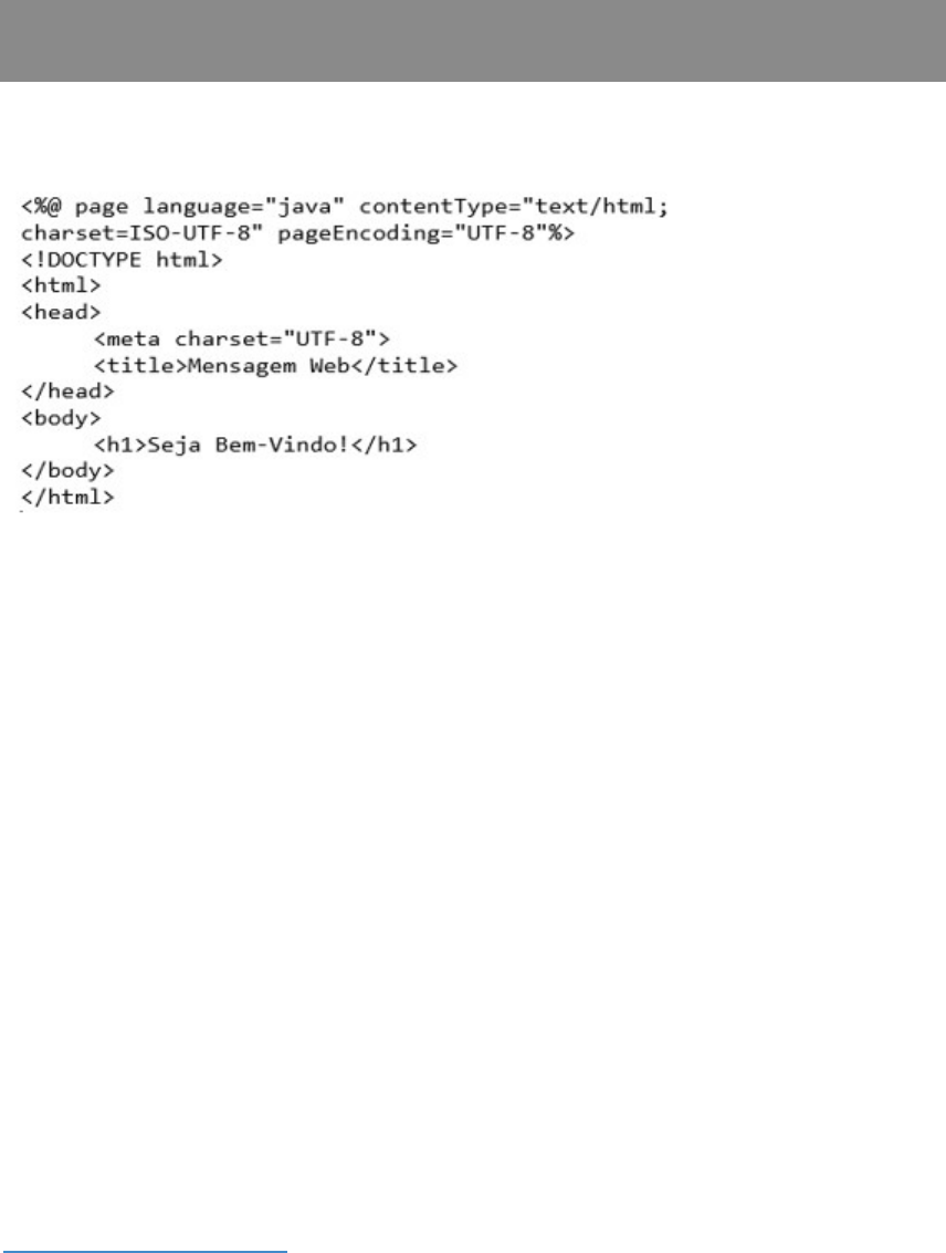 Prova Online Liberada com Senha Disciplina: 101726 - DESENVOLVIMENTO DE SOFTWARE PARA WEB Abaixo estão as questões e as alternativas que você selecionou: QUESTÃO 1 O que será exibido pelo código a seguir? a ) Será exibido uma página em branco indicando que ocorreu um erro. b ) Mensagem Web c ) O título da página será Seja Bem-Vindo! e será exibido o texto Mensagem Web d ) O título da página será Mensagem Web e será exibido o texto Seja Bem-Vindo! e ) Não é possível executar este código, porque temos comandos Java em um documento HTML. Ver justificativa da resposta QUESTÃO 2 Em relação ao padrão DAO (Data Access Object), quais das afirmações abaixo estão corretas? I. O padrão DAO separa a lógica de negócios da lógica da persistência de dados e encapsula a camada de acesso a dados. II. As classes DAO são responsáveis pelo controle com a Camada View. III. As classes DAO são responsáveis pelas operações CRUD. IV. O padrão DAO separa a lógica de negócio da lógica de apresentação. V. As classes DAO implementam os métodos utilitários para auxiliarem o desenvolvimento do sistema, como: (a) find(); (b) findById(); (c) findByName(); entre outros. a ) I, III e V. b ) Somente a afirmação II. c ) Somente a afirmação I. d ) I, II e V. e ) II, IV e V. Ver justificativa da resposta QUESTÃO 3 Em relação ao modelo do banco de dados, quais das afirmações abaixo estão corretas? I. O modelo do banco de dados deve ser otimizado e a modelagem não reflete exatamente a regra de negócio. II. A regra de negócio do sistema e suas restrições determinam a lógica da programação do sistema, impactando no modelo de banco de dados. III. Os requisitos funcionais obrigatórios do sistema são campos obrigatórios no modelo de banco de dados e os demais atributos podem ter valores ausentes. IV. A modelagem do banco de dados reflete a regra de negócio e suas restrições. V. O processo de herança entre duas classes pode ser implementado criando uma tabela para a superclasse e outra para a subclasse. Assinale a alternativa que apresenta as afirmativas corretas: a ) Somente a alternativa I. b ) I, III e V. c ) I, II, III e IV. d ) II, III, IV e V. e ) I, IV e V. Ver justificativa da resposta QUESTÃO 4 Qual é a regra utilizada pelo Spring Security para criar as permissões? a ) A regra PERMISSAO. b ) A regra NOME_DA_PERMISSAO_ROLE. c ) A regra ROLE_NOME_DA_PERMISSAO. d ) A regra NOME_DA_PERMISSAO. e ) A regra PAPEL_NOME_DA_PERMISSAO. Ver justificativa da resposta QUESTÃO 5 A estrutura de um Dynamic Web Project é mostrada abaixo. Qual é a responsabilidade da Camada Util? a ) Implementar as classes do front-end. b ) Implementar as classes utilitárias de apoio ao desenvolvimento. c ) Implementar funcionalidades de apoio à regra de negócio. d ) Implementar as classes de controle. e ) Implementar as classes de exceção. Ver justificativa da resposta QUESTÃO 6 Um arquivo de estilo do CSS é utilizado para estruturar e estilizar uma página HTML. Em uma aplicação web utilizando JSF, quais são os procedimentos necessários para criar e utilizar o arquivo de estilo? a ) b ) c ) d ) e ) Ver justificativa da resposta QUESTÃO 7 A instrução SQL select max(id_cliente) from cliente realiza qual operação? a ) Uma operação de consulta e seleciona o campo id_cliente da tabela cliente. b ) Uma operação de projeção na coluna id_cliente na tabela cliente e seleciona o último registro inserido na tabela. c ) Uma operação de atualização dos campos da tabela cliente com o id_cliente fornecido. d ) Uma operação de projeção na coluna id_cliente na tabela cliente e seleciona o primeiro registro inserido na tabela. e ) Uma operação de consulta e seleciona todos os campos da tabela com o id_cliente fornecido. Ver justificativa da resposta QUESTÃO 8 Considere a representação de um sistema cliente-servidor mostrado a seguir: Sobre essa representação, é correto afirmar que: a ) esse modelo de sistema apresenta inconsistência, uma vez que, para que todos os usuários do sistema tenham a mesma versão do programa, é necessário realizar atualizações individuais. b ) o sistema cliente-servidor é um modelo de aplicação utilizado no início da programação e não é mais aplicado nos sistemas atuais. c ) para o desenvolvimento do sistema representado na figura, utilizamos o framework EJB (Enterprise Java Bean, Componente Corporativo do Java, em português) para o desenvolvimento do front-end e o framework JSF (JavaServer Faces) para o desenvolvimento do back-end. d ) a implementação de um sistema com a arquitetura mostrada na figura encontra problemas, uma vez que as linguagens de programação como a linguagem Java não oferecem ferramentas necessárias para o desenvolvimento web. e ) temos dois programas que devem ser elaborados: o que é executado em um servidor e o que é executado pelo cliente. A comunicação entre o programa executado pelo cliente e o executado no servidor é realizada pela web. Ver justificativa da resposta QUESTÃO 9 a ) b ) c ) d ) e ) Ver justificativa da resposta QUESTÃO 10 Em relação ao servidor Tomcat, assinale a alternativa correta. a ) O servidor Tomcat pode ser integrado no Eclipse permitindo que o servidor seja executado e operado dentro do Eclipse. b ) O Tomcat não pode ser executado como um servidor local, somente como um servidor remoto. c ) A dificuldade para utilizar o Tomcat como um servidor local é que a porta para receber requisição HTTP do seu endereço localhost 127.0.0.1 não pode ser alterada e nem configurada. d ) O Eclipse não trabalha com o servidor Tomcat, o que impossibilita a sua integração. e ) O servidor Tomcat não pode ser integrado no Eclipse, sendo necessário executar o container em comando de linha ou pela sua página de administrador. Ver justificativa da resposta QUESTÃO 11 O Dynamic Web Project do Eclipse é utilizado para o desenvolvimento Web devido a que fator? a ) Não é
