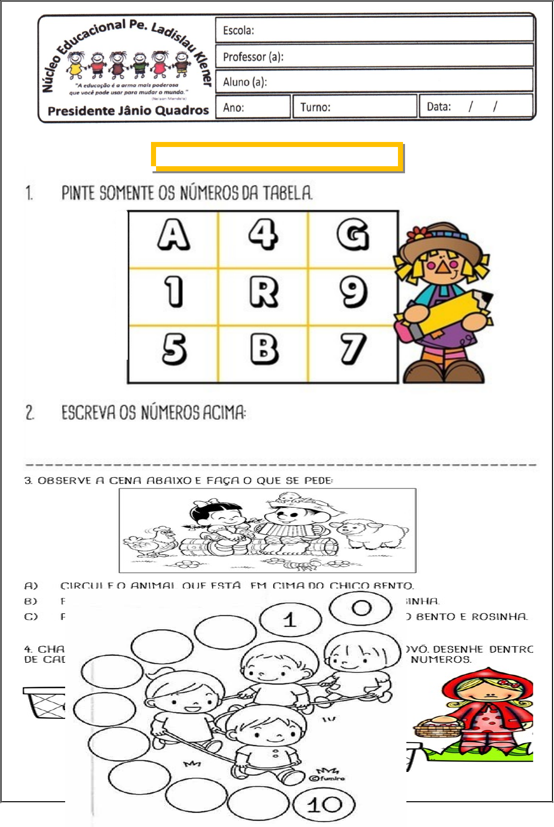 ( ATIVIDADE DIAGNÓSTICA MATEMÁTICA ) 05)COMPLETE A SEQUÊNCIA NUMÉRICA ABAIXO 06)CONTE OS ELEMENTOS ABAIXO E PINTE O NUMERAL CORRESPONDENTE
