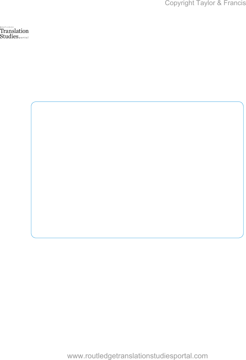 CHAPTER 1 Main issues of translation studies Key texts Holmes, James S. (1988b/2004) ‘The name and nature of translation studies’, in Lawrence Venuti (ed.) (2004), The Translation Studies Reader , 2nd edition, pp. 180–92. Jakobson, Roman (1959/2004) ‘On linguistic aspects of translation’, in Lawrence Venuti (ed.) (2004), The Translation Studies Reader , 2nd edition, pp. 138–43. Snell-Hornby, Mary (2006) The Turns of Translation Studies , Amsterdam and Philadelphia: John Benjamins, Chapter 1 . van Doorslaer, Luc (2007) ‘Risking conceptual maps’, in Yves Gambier and Luc van Doorslaer (eds) The Metalanguage of Translation , special issue of Target 19.2: 217–33. Key concepts ■ Definitions of translating and interpreting. ■ The practice of translating is long established, but the discipline of translation studies is new. ■ In academic circles, translation was previously relegated to just a language-learning activity. ■ A split has persisted between translation practice and theory. ■ The study of (usually literary) translation began through comparative literature, translation ‘workshops’ and contrastive analysis. ■ James S. Holmes’s ‘The name and nature of translation studies’ is considered to be the ‘founding statement’ of a new discipline. ■ Translation studies has expanded hugely, and is now often considered an interdiscipline. Copyright Taylor & Francis www.routledgetranslationstudiesportal.com Nota adhesiva seções 1.2, 1.3 e 1.4 INTRODUCING TRANSLATION STUDIES8 1.1 The concept of translation The main aim of this book is to introduce the reader to major concepts and models of translation studies. Because the research being undertaken in this field is now so extensive, the material selected is necessarily representative and illustrative of the major trends. For reasons of space and consistency of approach, the focus is on written translation rather than oral translation (the latter is commonly known as interpreting or interpretation ), although the overlaps make a clear distinction impossible (cf. Gile 2004). 1 The English term translation , first attested in around 1340, 2 derives either from Old French translation or more directly from the Latin translatio (‘trans- porting’), itself coming from the participle of the verb transferre (‘to carry over’). In the field of languages, translation today has several meanings: (1) the general subject field or phenomenon (‘I studied translation at university’) (2) the product – that is, the text that has been translated (‘they published the Arabic translation of the report’) (3) the process of producing the translation, otherwise known as translating (‘translation service’). The process of translation between two different written languages involves the changing of an original written text (the source text or ST ) in the original verbal language (the source language or SL ) into a written text (the target text or TT ) in a different verbal language (the target language or TL ): Source text (ST) Target text (TT) in source language (SL) in target language (TL) Thus, when translating a product manual from Chinese into English, the ST is Chinese and the TT is English. This type corresponds to ‘interlingual translation’ and is one of the three categories of translation described by the Russo-American structuralist Roman Jakobson (1896–1982) in his seminal paper ‘On linguistic aspects of translation’. Jakobson’s categories are as follows: (1) intralingual translation, or ‘rewording’ – ‘an interpretation of verbal signs by means of other signs of the same language’ Copyright Taylor & Francis www.routledgetranslationstudiesportal.com MAIN ISSUES 9 (2) interlingual translation, or ‘translation proper’ – ‘an interpretation of verbal signs by means of some other language’ (3) intersemiotic translation, or ‘transmutation’ – ‘an interpretation of verbal signs by means of signs of non-verbal sign systems’. (Jakobson 1959/2004: 139) These definitions draw on semiotics , the general science of communication through signs and sign systems, of which language is but one (Cobley 2001, Malmkjær 2011). Its use is significant here because translation is not always limited to verbal languages. Intersemiotic translation , for example, occurs when a written text is translated into a different mode, such as music, film or painting. Examples would be Jeff Wayne’s famous 1978 musical version of H. G. Wells’s science-fiction novel The War of the Worlds (1898), which was then adapted for the stage in 2006, or Gurinder Chadha’s 2004 Bollywood Bride and Prejudice adaptation of Jane Austen’s Pride and Prejudice . Intralingual translation would occur when we produce a summary or otherwise rewrite a text in the same language, say a children’s version of an encyclopedia. It also occurs when we rephrase an expression in the same language. In the following example, revenue nearly tripled is a kind of intralingual translation of the first part of the sentence, a fact that is highlighted by the trigger expression in other words . In the decade before 1989 revenue averaged around [NZ]$1 billion a year while in the decade after it averaged nearly [NZ]$3 billion a year – in other words, revenue nearly tripled. 3 It is interlingual translation , between two different verbal sign systems, that has been the traditional focus of translation studies. However, as we shall see as the book progresses, notably in Chapters 8 to 10 , the very notion of ‘translation proper’ and of the stability of source and target has been challenged. The question of what we mean by ‘translation’, and how it differs from ‘adaptation’, ‘version’, ‘transcreation’ (the creative adaptation of video games and advertising in parti- cular, see section 11.1.8), ‘localization’ (the linguistic and cultural adaptation of a text for a new locale, see section 11.2) and so on, is a very r