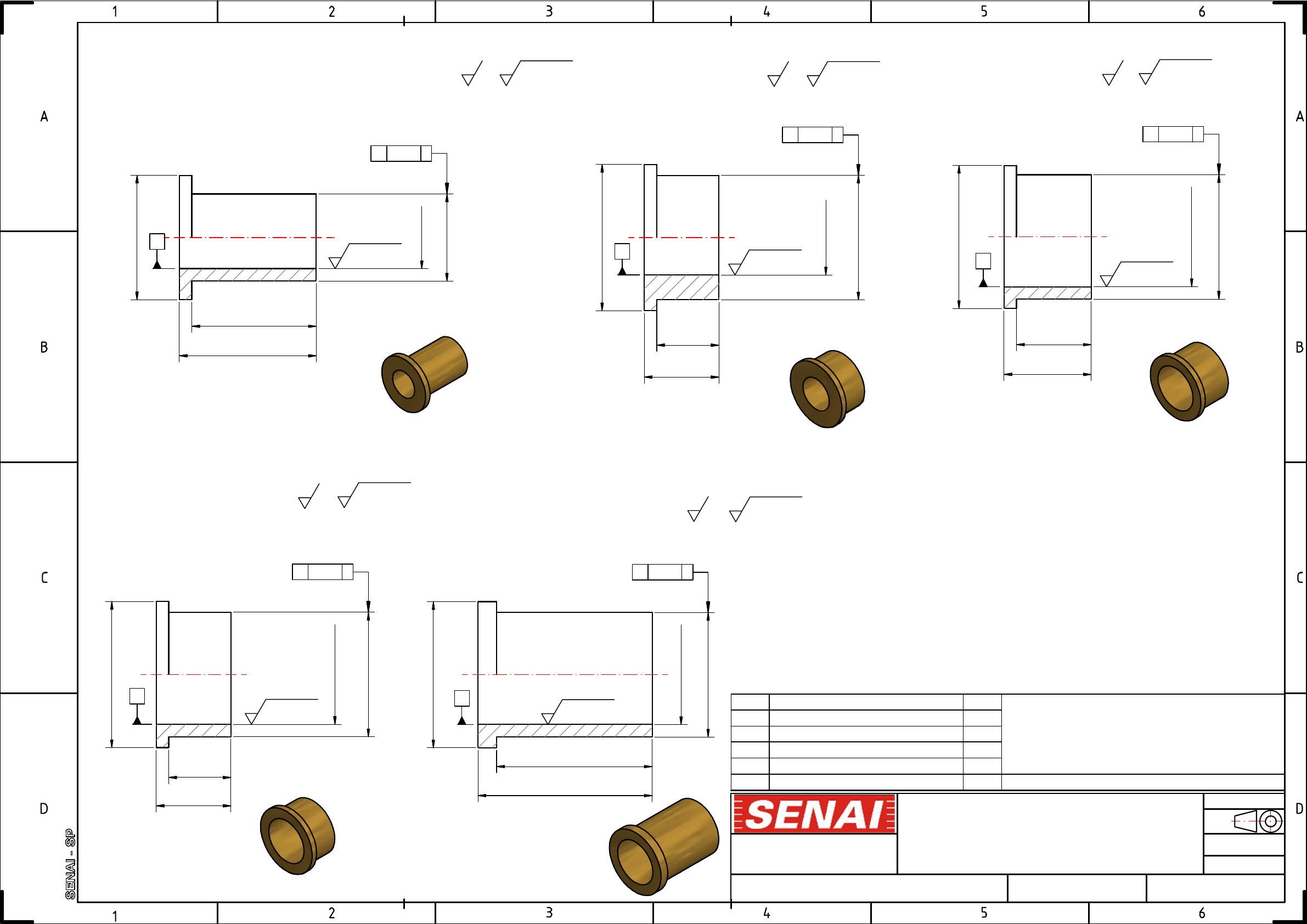 2Bucha das colunas T21 E 1Bucha para fuso long.T21 D 1Bucha do mancal traseiroT21 C 1Bucha para ponta do fuso long.T21 B 1Bucha para ponta do fuso transv.T21 A Quant.Denomina es e Obseva esPe a Formato A3 ( 297 x 420 ) Buchas da mesa T TULO: REVIS O - DATA DA REVIS O: DATA: ESCALA: PROJE O: UNIDADE: CURSO: T21 Mec nico de Usinagem 04/11/2015 mm 2:1 TAREFA REGISTRO: 07/02/2018 Material e Dimens es Bronze TM-23 Redondo 1" x 170mm 10 H 7 14 m 7 20 20 22 - 0,2 0,1- A Alargado 1,6 T21 A ( )3,2 Alargado 1,6 16 H 7 20 p 6 23 ,5 10 12 A Alargado 1,6 T21 D ( ) T21 B ( ) 3,2 Alargado 1,6 3,2 Alargado 1,6 Opera o: - Calibrar furo com alargador no torno 20 p 6 12 H 7 A Alargado 1,6 10 12 - 0,2 0,1- 23 ,5 T21 C ( ) T21 E ( ) 12 14 20 p 6 16 H 7 Alargado 1,6A 23 A Alargado1,6 3,2 Alargado 1,6 3,2 Alargado 1,6 23 ,5 20 p 6 16 H 7 25 28 NOTA: - Toler ncia n o especificada NBR ISO 2768-f 0,04 A 0,04 A 0,04 A 0,04 A0,04 A A o ABNT 1010/20 Lam. Red. 1"x 170mm1Eixo roscado entre pontas ( P/ P13 pe a B)T22 Material e Dimens esQuant.Denomina es e Obseva esPe a Formato A4 ( 210 x 297 ) Eixo roscado entre pontas T TULO: REVIS O - DATA DA REVIS O: DATA: ESCALA: PROJE O: UNIDADE: CURSO: T22 Mec nico de Usinagem 29/10/2015 mm 1:1 TAREFA REGISTRO: 13/09/2017 Opera es: - Tornear superf cie cil ndrica externa entre pontas - Abrir rosca triangular externa T22 3,2 NOTA: - Toler ncia n o especificada NBR ISO 2768-f - Chanfros n o especificados: 1x45 NBR 12288 A 2/4,25 NBR 12288 A 2/4,25 20 5 0,1 40 40 5 0,1 25 17 19 ,2 W 7/ 8" x1 1 LH 17 2 2 M x2 ,5 18 ,9 17 ,5 1x45 1x45 165 X ( 5 : 1 ) A o ABNT 1010/20 Lam. 2" x 70mm1Luva com rosca (p/ Tarefa T31 )T23 Material e Dimens esQuant.Denomina es e Obseva esPe a AP X Formato A4 ( 210 x 297 ) Luva roscada T TULO: REVIS O - DATA DA REVIS O: DATA: ESCALA: PROJE O: UNIDADE: CURSO: T23 Mec nico de Usinagem 29/10/2015 mm 1:1 TAREFA REGISTRO: 06/12/2017 T23 3,2 Opera es: - Tornear rebaixo interno - Abrir rosca triangular interna NOTA: - Toler ncia n o especificada NBR ISO 2768-f 90 0, 4 30 5 0,1 60 10 2x45 W 7/ 8" x 11 LH 22 ,3 - 00, 1 + 28 48 0,1 B B Alum nio 2" x 16mm1Corpo da Engrenagem - (para Tarefa T36)T24C Alum nio 30 x 18mm1Corpo da Engrenagem - (para Tarefa P28)T24B Alum nio 2" x 16mm1Corpo da Engrenagem - (para Tarefa T27)T24A Material e Dimens esQuant.Denomina es e Observa esPe a AE AF AG Formato A3 ( 297 x 420 ) Corpo da Engrenagem T TULO: REVIS O - DATA DA REVIS O: DATA: ESCALA: PROJE O: UNIDADE: CURSO: T24 Mec nico de Usinagem 13/11/2015 mm 1:1 TAREFA REGISTRO: 13/09/2017 T24 C ( ) Alargado 1,63,2 NOTA: - Toler ncia n o especificada NBR ISO 2768-f 3,2 Alargado 1,6 3,2 Alargado 1,6T24 A ( ) T24 B ( ) 14 0,1 102 18 0, 1 25 ,4 - 0, 1 0 + 10 H 7 1x45 0,5x45 Alargado 1,6A2 6 0, 1 44 - 0, 1 0 + 12 H 7 101 12 0,1 1x45 0,5x45 Alargado 1,6A Opera o: - Tornear pe as em mandril 101 12 0,1 26 0, 1 46 ,6 7 - 0, 1 0 + 12 H 7 1x45 0,5x45 Alargado 1,6A 0,05 A 0,05 A 0,05 A A o ABNT 1010/1020 Lam. Ch. 1" x 2 1/4" x 105mm1Placa chanfrada (para tarefa C6 F)T25 Material e Dimens esQuant.Denomina es e Observa esPe a Formato A4 ( 210 x 297 ) Placa chanfrada T TULO: REVIS O - DATA DA REVIS O: DATA: ESCALA: PROJE O: UNIDADE: CURSO: T25 Mec nico de usinagem 01/11/2015 mm 1:1 TAREFA REGISTRO: 13/09/2017 T25 3,2 Opera o: - Fresar superf cies planas em ngulo inclinando o cabe ote NOTA: - Toler ncia n o especificada NBR ISO 2768-f 25 ,5 51 0, 1 23 0, 1 102 0,1 30 A B 0,05 A 0,05 A B 0,3 B A - A A o ABNT 1010/1020 Tref. Ch. 1/2" x 1" x 144mm2Reguas retificadasT26 B A o ABNT 1010/1020 Tref. Ch. 1" x 1/2" x 68mm2GarrasT26 A Material e Dimens esQuant.Denomina es e Observa esPe a A A Formato A4 ( 210 x 297 ) Garras e r guas retificadas T TULO: REVIS O - DATA DA REVIS O: DATA: ESCALA: PROJE O: UNIDADE: CURSO: T26 Mec nico de Usinagem 04/11/2015 mm 1:1 TAREFA REGISTRO: 06/12/2017 5 130 140 10 0, 04 12 2 4 0, 04 T26 A ( ) T26 B ( ) Opera es: - Balancear rebolo - Dressar rebolo - Retificar superf cie plana, paralela e perpendicular Retificado 0,3 0,8 3,2 20 65 25 Retificado 0,3 0,83,2 11 ,2 ESC. 1:2 B 0,04 B 0,03 A BNota: -Chanfros n o especificados: 1x45 em todo o contorno da pe a -Escareados n o especificados: 0,5x90 - Toler ncia n o especificada NBR ISO 2768-f 0,03 B B 10 10 0, 05 8 M6 Retificado 0,3 0,8 0,02 A A 10 10 13 12 8 ( 2x ) Retificado 0,3 0,8 6 (2x) 3, 2 3, 2 Alum nio (da tarefa C4 F A)1Volante do fuso longitudinalT27B Alum nio (da tarefa T24 - pe a T24-A)1Engrenagem de dentes retosT27A Material e Dimens esQuant.Denomina es e Observa esPe a A A Formato A4 ( 210 x 297 ) Engrenagem de dentes retos e Volante do fuso longitudinal T TULO: REVIS O - DATA DA REVIS O: DATA: ESCALA: PROJE O: UNIDADE: CURSO: T27 Mec nico de Usinagem 04/12/2015 mm 1:1 TAREFA REGISTRO: 13/09/2017 T27 A 3,2 34 38 R5 T27 B ( )3,2 10 Caneluras 7 Opera o: - Fresar dentes retos para engrenagens cil ndicas externas 4 Dados: z = 42 m = 1 A - A 10 1,5x30 44 - 0, 1 0 + NOTA: - Toler ncia n o especificada NBR ISO 2768-f 38 4,5 R5 10 Caneluras 7, 4 0, 2 34 0,3 furar na montagem para pino c nico 3 (1:50)