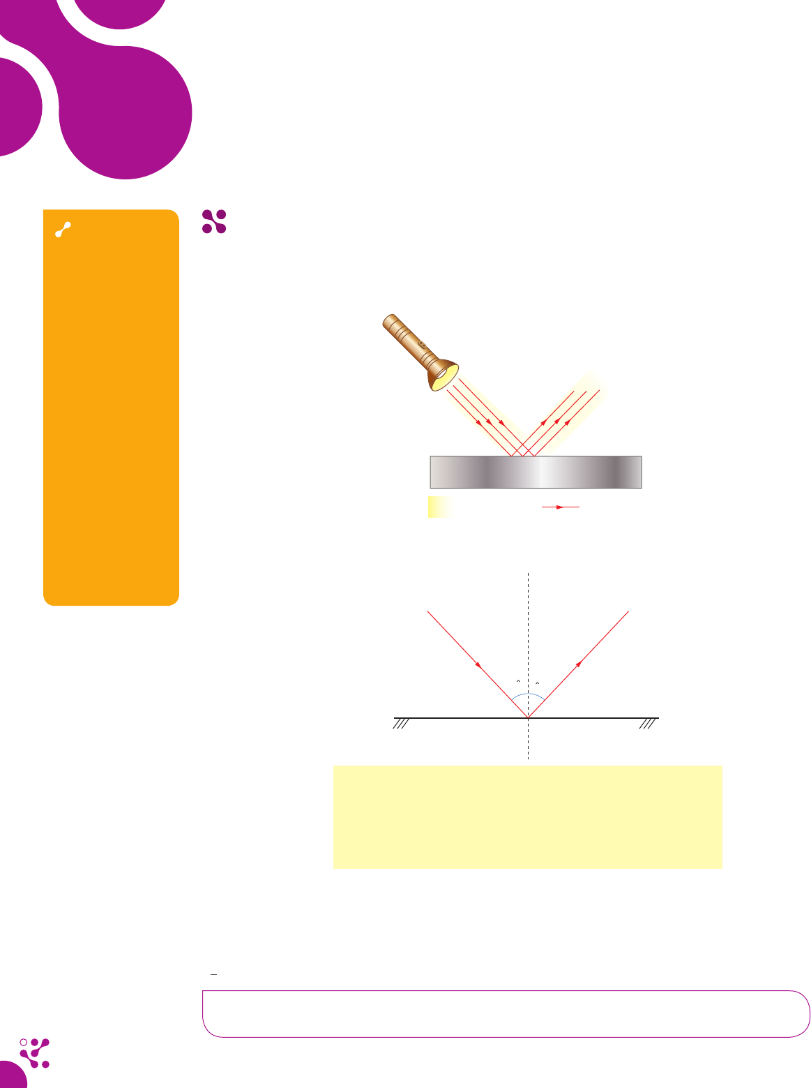 Unidade 2 Espelhos planos Objetivo(s) • Conhecer as leis da reflexão e suas propriedades, a fim de construir as imagens nos espelhos planos e esféricos. • Conhecer, em relação aos espelhos planos, as características da imagem formada e suas propriedades. • Reconhecer e calcular a velocidade da imagem na translação do espelho plano independentemente do referencial adotado. Reflexão da luz O fenômeno da reflexão ocorre quando a luz se propaga em um meio e, ao incidir sobre uma superfície de separação entre meios com propriedades distintas, retorna para o meio de propagação inicial, ou seja, os raios de luz voltam para o mesmo meio de onde vieram. Superfície polida Feixe de luz Raio de luz O esquema abaixo representa o fenômeno da reflexão da luz: a b i N 1 2 S r Em que: S é a superfície refletora que separa o meio 1 do meio 2; N é a reta normal (perpendicular) à superfície S, no ponto P; a é o raio incidente na superfície S; b é o raio refletido pela superfície S; î é o ângulo de incidência formado pelo raio incidente e a reta normal N; r̂ é o ângulo de reflexão formado pelo raio refletido e a reta normal N. Leis da reflexão Para que seja possível compreender melhor o fenômeno da reflexão e sua aplicação nos espelhos planos, é necessário conhecermos as leis da reflexão regular da luz, descritas a seguir. 1ª lei da reflexão da luz O raio incidente (a ), o raio refletido (b ) e a reta normal (N ) à superfície são coplanares, ou seja, estão todos no mesmo plano. 246 F ís ic a 5_MAXI_LA_EM2_1_CAD5_FIS_U2_246A258.indd 246 10/3/17 3:02 PM Observe a representação abaixo. a b N P S 2ª lei da reflexão da luz O ângulo de incidência ( î ) é igual ao ângulo de reflexão (r̂), ou seja, î 5 r̂. N P la n o d e r e fl e x ã o n ã o r e fl e ti d o P i ir r As leis enunciadas são válidas tanto para superfícies planas quanto para superfícies esféricas; logo: N P a b i r Espelho plano Dos vários sistemas ópticos que serão estudados, o espelho plano é o único que é sempre estigmático, ou seja, ele forma para cada ponto objeto um único ponto imagem correspondente, assim as imagens por ele formadas são perfeitamente simétricas. Na sequência, analisaremos mais detalhadamente as características das imagens formadas por espelhos planos. Anotações 247 F ís ic a 5_MAXI_LA_EM2_1_CAD5_FIS_U2_246A258.indd 247 10/3/17 3:02 PM Características da imagem de um objeto em um espelho plano Considere que de um ponto qualquer do objeto originam-se infinitos raios de luz que se propagam em linha reta (princípio da propagação retilínea da luz) até a superfície do espelho plano. Para determinar a posi- ção da imagem, basta escolher dois raios de luz – um saindo da extremidade superior do objeto e o outro da extremidade inferior do objeto – e aplicar as leis da reflexão. Observe a representação da imagem formada atrás do espelho no esquema abaixo. Imagem A D o i B d i d o Espelho plano B 1 C Objeto A imagem conjugada será virtual (posicionada atrás do espelho), pois é originada pelo prolongamento dos raios refletidos pelo objeto. É direita, pois possui mesma orientação que o objeto; e tem o mesmo tamanho, sendo simétrica em relação ao espelho. Podemos estabelecer então as seguintes relações: o 5 i e do 5 di em que o é a altura do objeto; i é a altura da imagem; do é a distância do objeto ao espelho; e di, a distância da imagem ao espelho. Imagem de um objeto puntiforme em um espelho plano Quando um objeto P é colocado em frente a um espelho plano, em concordância às leis da reflexão, os raios de luz incidente de P são refletidos pelo espelho. O prolongamento desses raios refletidos encontram-se no ponto P’, chamado de imagem de P. a 1 a 2 P N E b 1 b 2 b' 1 P' b' 2 i r Repare que a1 é o raio que incide perpendicularmente no espelho E ; b ‘1 é o prolongamento de b1; a2 é outro raio que parte do ponto P (ponto objeto) e incide com um ângulo î qualquer no espelho; b’2 é o prolongamento de b2; b1 é o raio refletido normalmente ao espelho; b2 é o raio refletido com ângulo r̂ (sendo î 5 r̂ ); e P’ é o ponto imagem. Imagem de um corpo extenso em um espelho plano Para que seja possível determinar a imagem de um corpo extenso, podemos utilizar a propriedade da simetria e, ponto por ponto, desenhar a respectiva imagem do objeto posicionado em frente ao espelho. Observe o esquema representado a seguir: Anotações 248 F ís ic a 5_MAXI_LA_EM2_1_CAD5_FIS_U2_246A258.indd 248 10/3/17 3:02 PM A imagem formada (A’, B’, C’...) por um corpo extenso se dá pela junção da imagem de infinitos pontos do objeto (A, B, C...) e ela se forma do outro lado do espelho e os respectivos pontos são simé- tricos, ou seja, 5 5FE F‘E e AE A‘E. Observe que a imagem formada no espelho plano, além de ser virtual, direita e do mesmo tamanho do objeto, é também enantiomorfa, ou seja, quando se trata de um corpo extenso, o es- pelho troca a direita pela esquerda e vice-versa. Campo visual de um espelho plano O campo visual é tido como a região do espaço físico na qual todos os objetos são vistos pelo observador. Assim, os objetos que estão fora dessa região não poderão ser observados. O campo visual depende do tama- nho do espelho, da distância do observador ao espelho e da localização do espelho em relação ao observador. Observe no esquema a seguir que o campo visual é delimitado pelos raios refletidos nas extremidades da superfície refletora do espelho plano, oriundos da incidência dos raios de luz que se propagam a partir do ponto em que está posicionado o observador. E Campo visual i r i r Tamanho do espelho para se ver de corpo inteiro Qual seria o tamanho mínimo de um espelho para que seja possível nos vermos de corpo inteiro? Muitos acham que, ao se afastar ou se aproximar de um espelho, é possível alterar o tamanho da imagem observada, mas, como já vimos, um espelho plano fo
