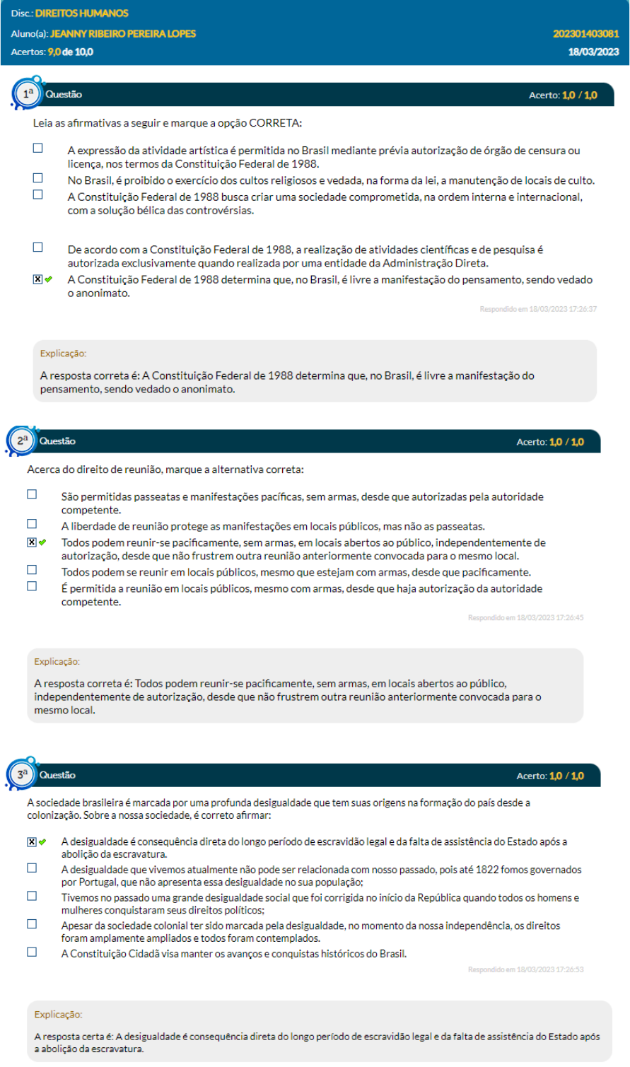 Sobre a Declaração Universal dos Direitos Humanos, é correto afirmar: Questão 8Resposta a. Inaugurou no plano internacional expressamente o princípio
